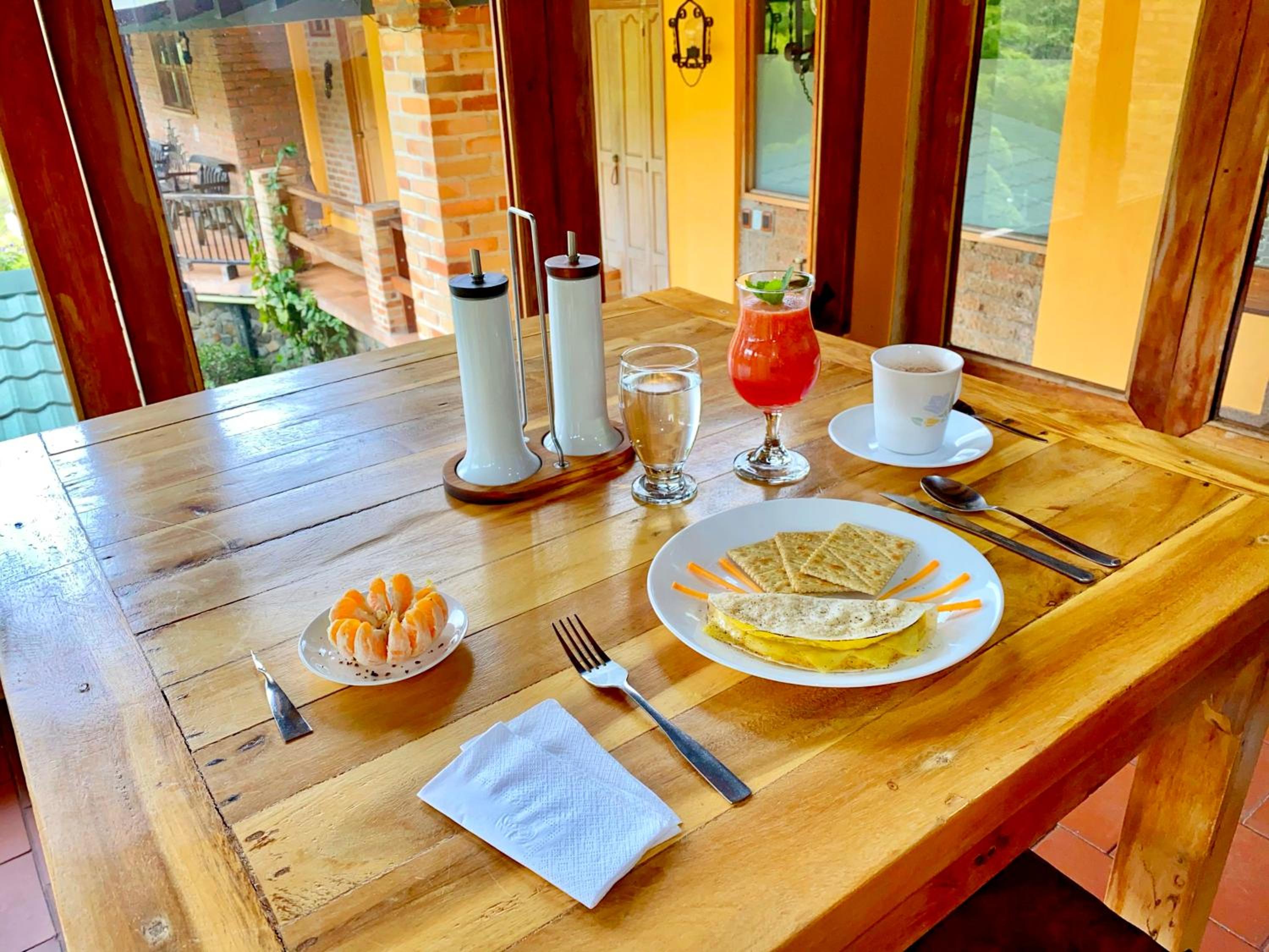 Quiet, lush, natural green setting. Jeff was very helpful in arranging transportation and making recommendations. Property was well kept. Rooms were nice sized. Water was hot in the shower. Breakfast was a nice omelet, white bread with home made fruit spread, natural juice, and instant coffee. Down the street, in “town”, a 10 minute walk on a safe but dirt road is an amazing restaurant. Unassuming from the outside, once you step through the round circle of lights on the side of the street, the back yard opens up to a lovely, unique, outdoor restaurant called La Martina. Great food, huge portions and very pleasant music. You have to experience it!
