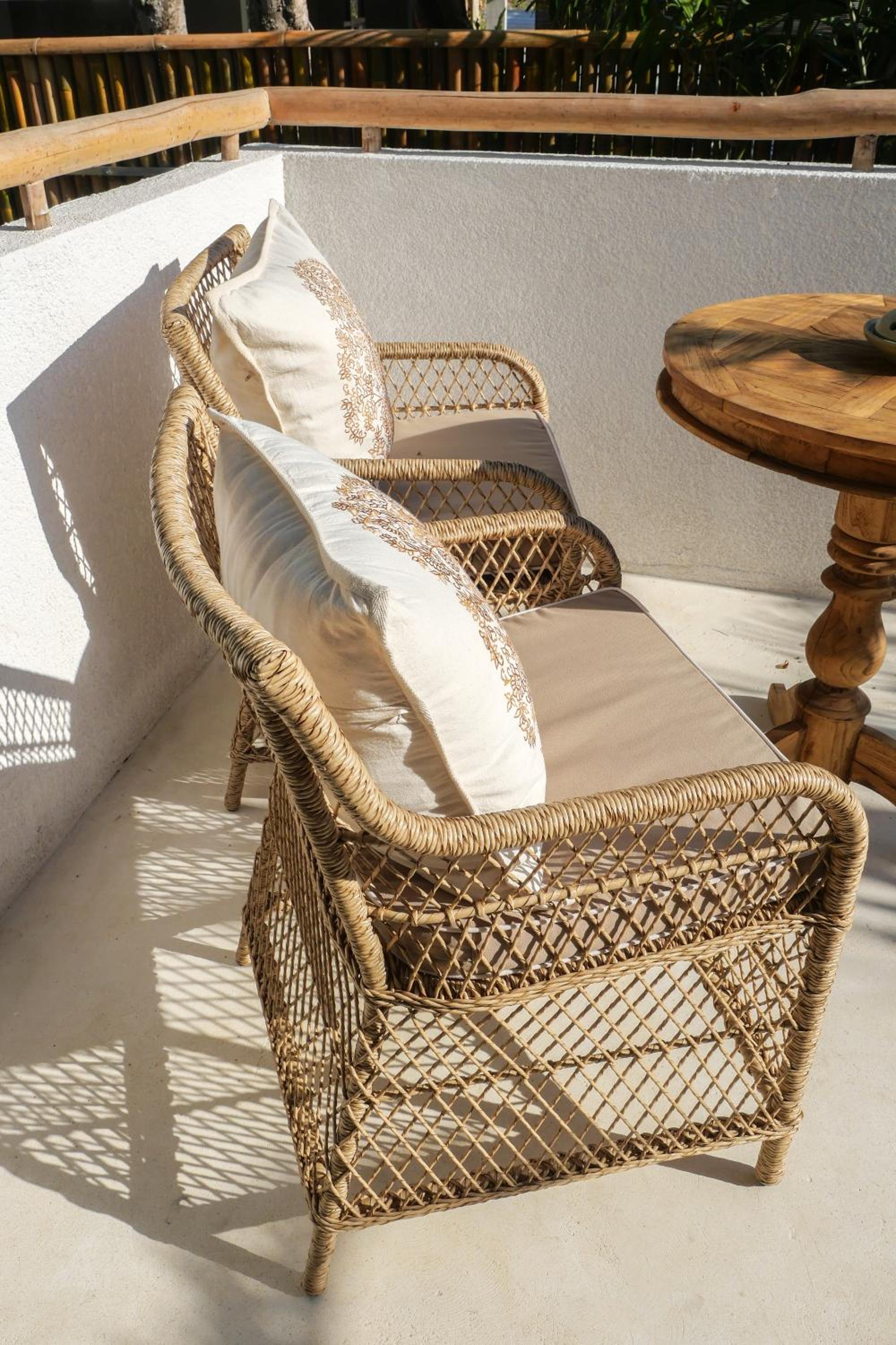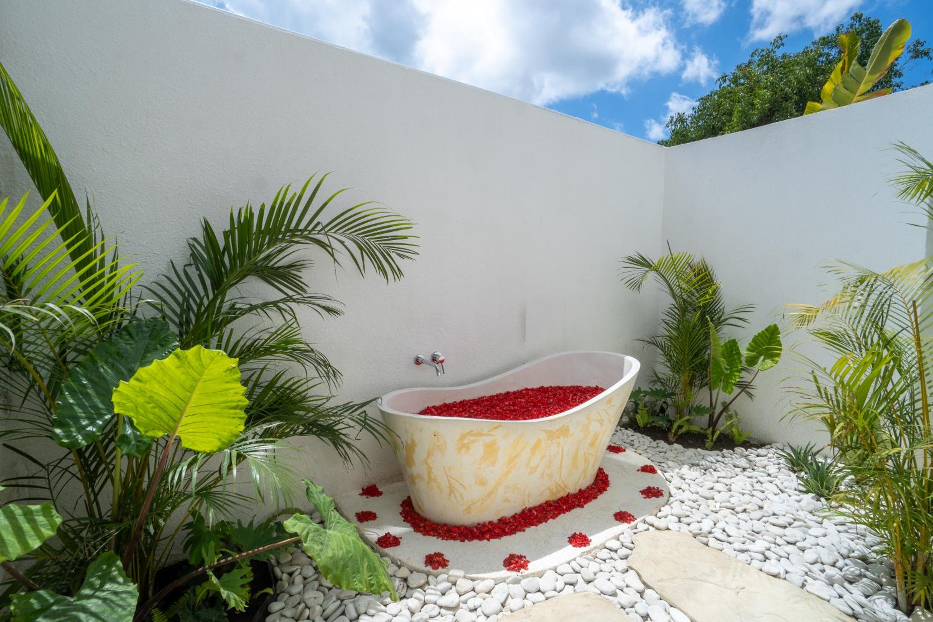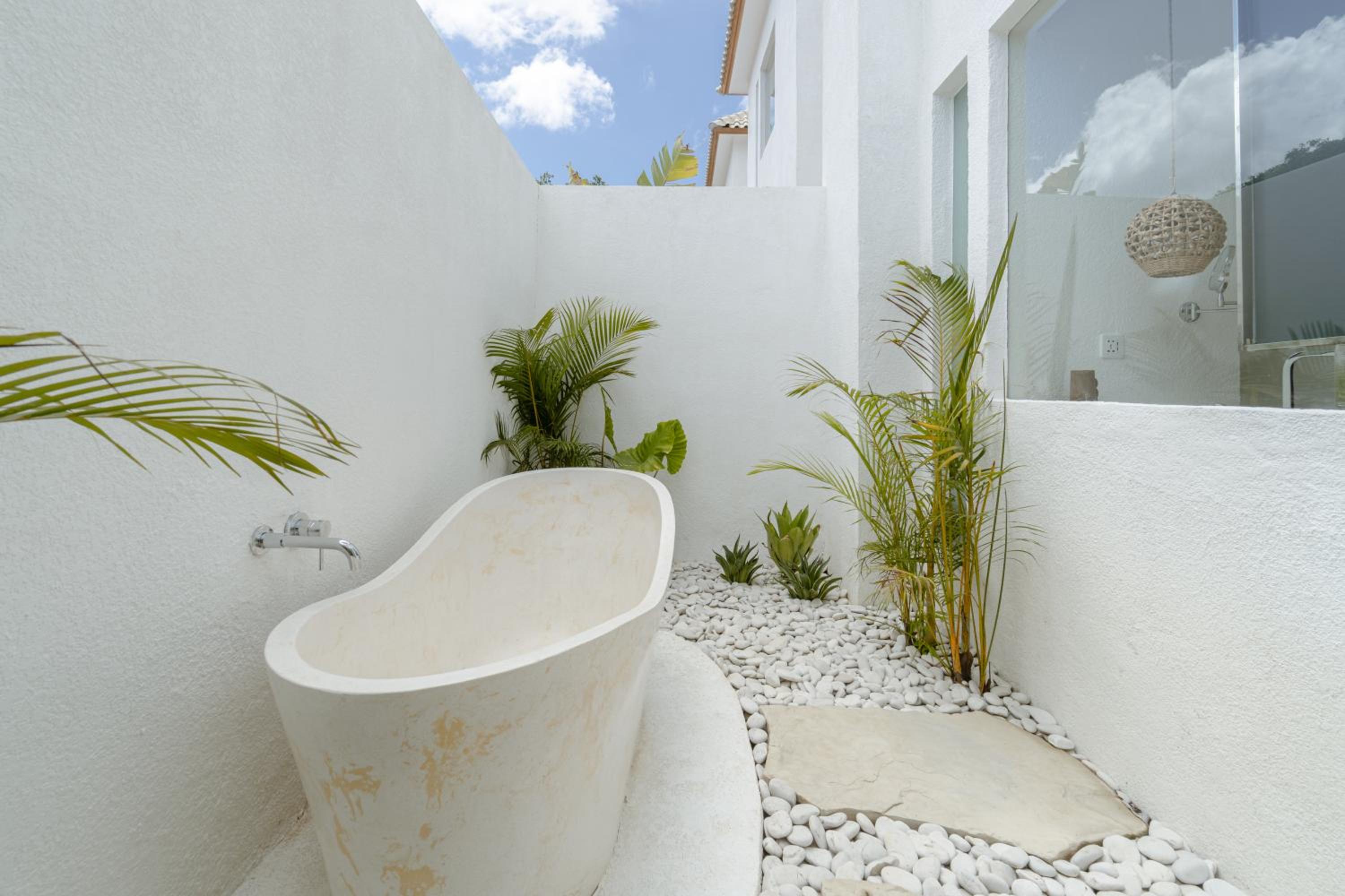 Unwind by the outdoor swimming pool, surrounded by lush gardens and a tranquil terrace. Enjoy peaceful moments in a serene setting, just a short walk from the beautiful Balangan Beach.