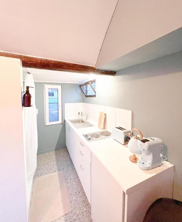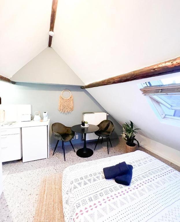 Dicht in de stad .. En ja ...hadden één bed,één douche en een wc.. voor de rest ça va als je vlug tevreden bent is het daar best te doen . Maar de trap is levensgevaarlijk..