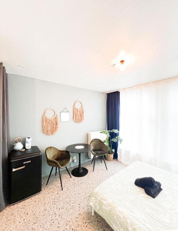 De kamer was niet schoon bij aankomst. De keuken was duidelijk niet schoongemaakt, er lag nog viezigheid. En er lagen haren in het bed. De foto's bij de advertentie komen niet allemaal overeen. Er staan foto's van een ander -ruimer- appartement tussen, dat is misleidend. Niet geschikt voor lange mensen (>180cm), je kunt je bed niet instappen en je past niet onder de douche.