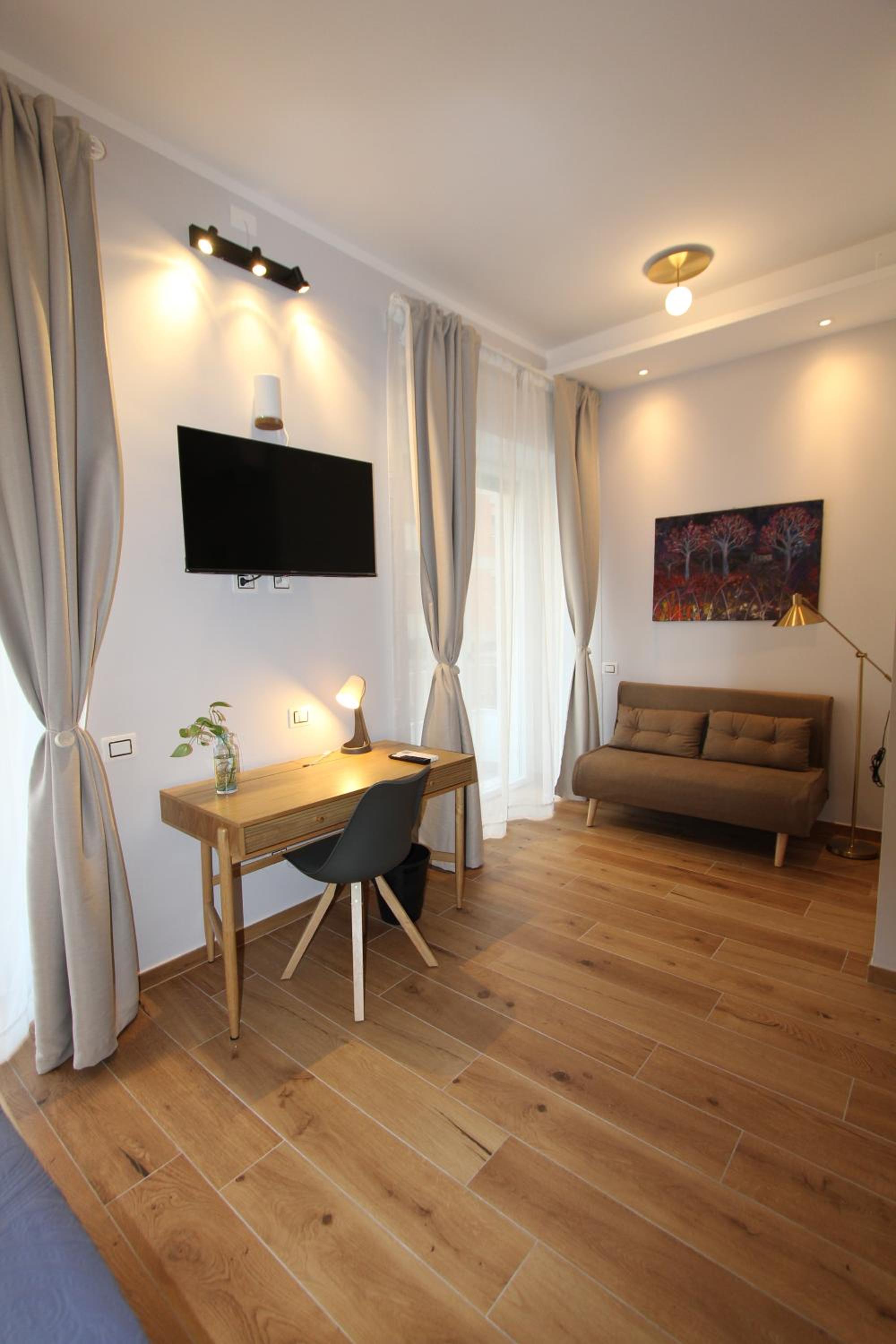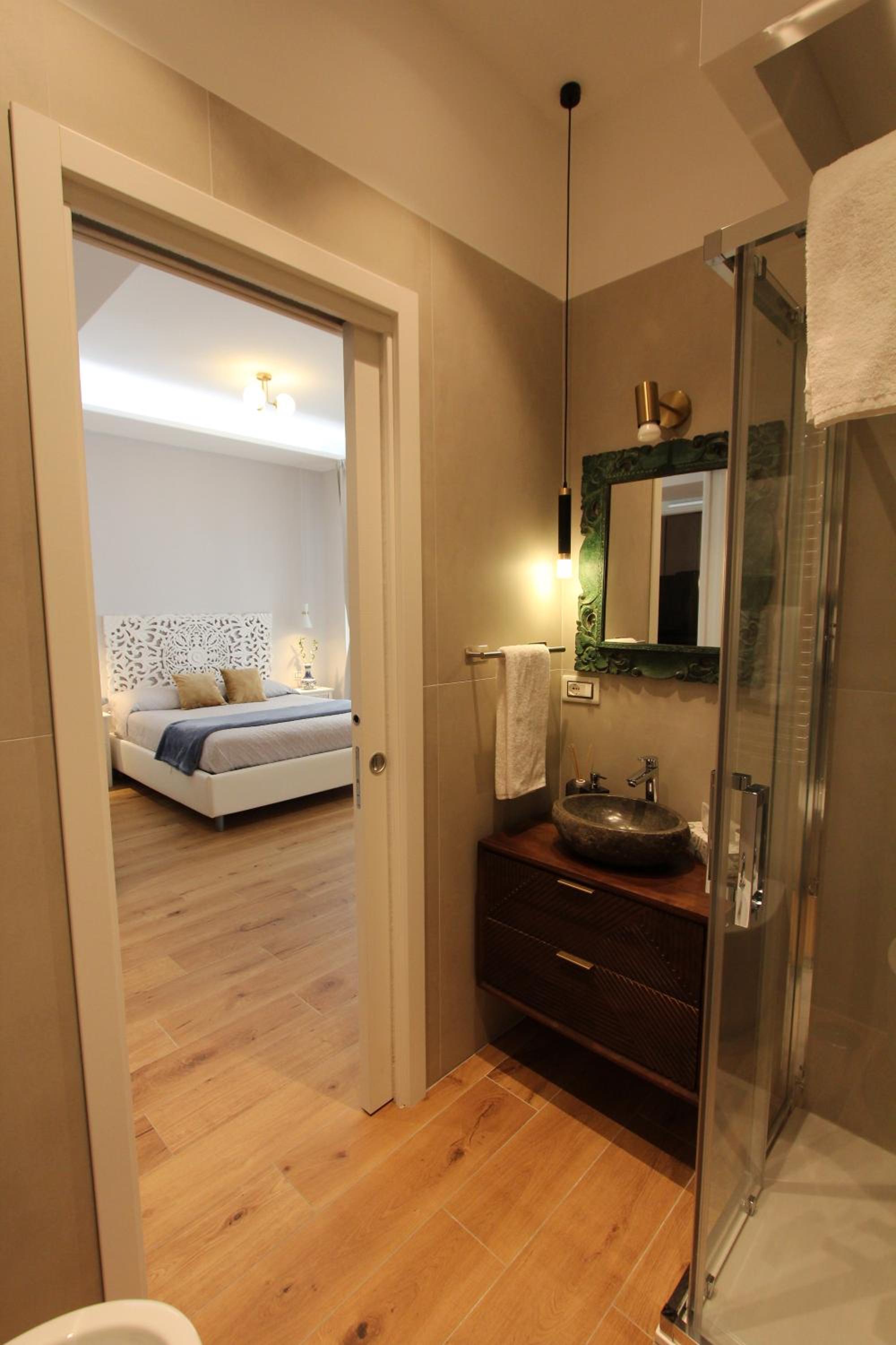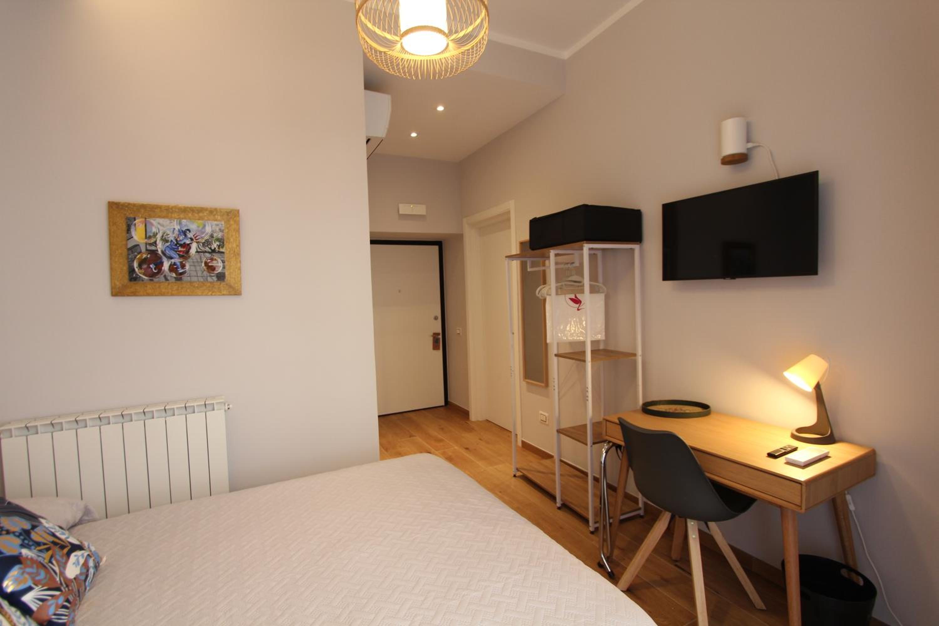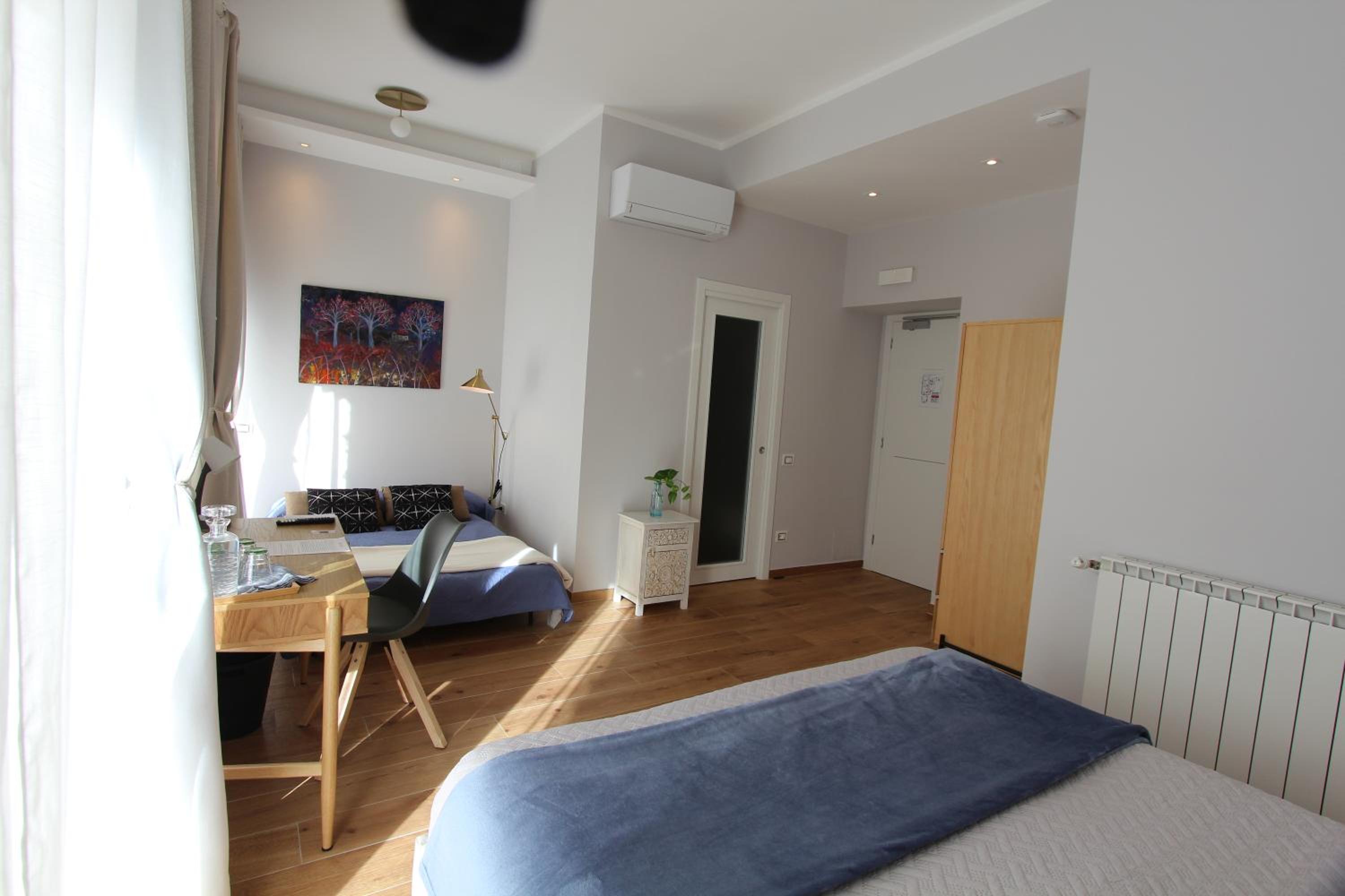 Beautifully decorated and very comfortable room. We had a balcony with side sea view and overlooking a lovely square. Our hosts were extremely helpful. Our hosts helped arrange a taxi directly to our cruise ship. Both the shared lounge area and our room are beautifully decorated and pristine.