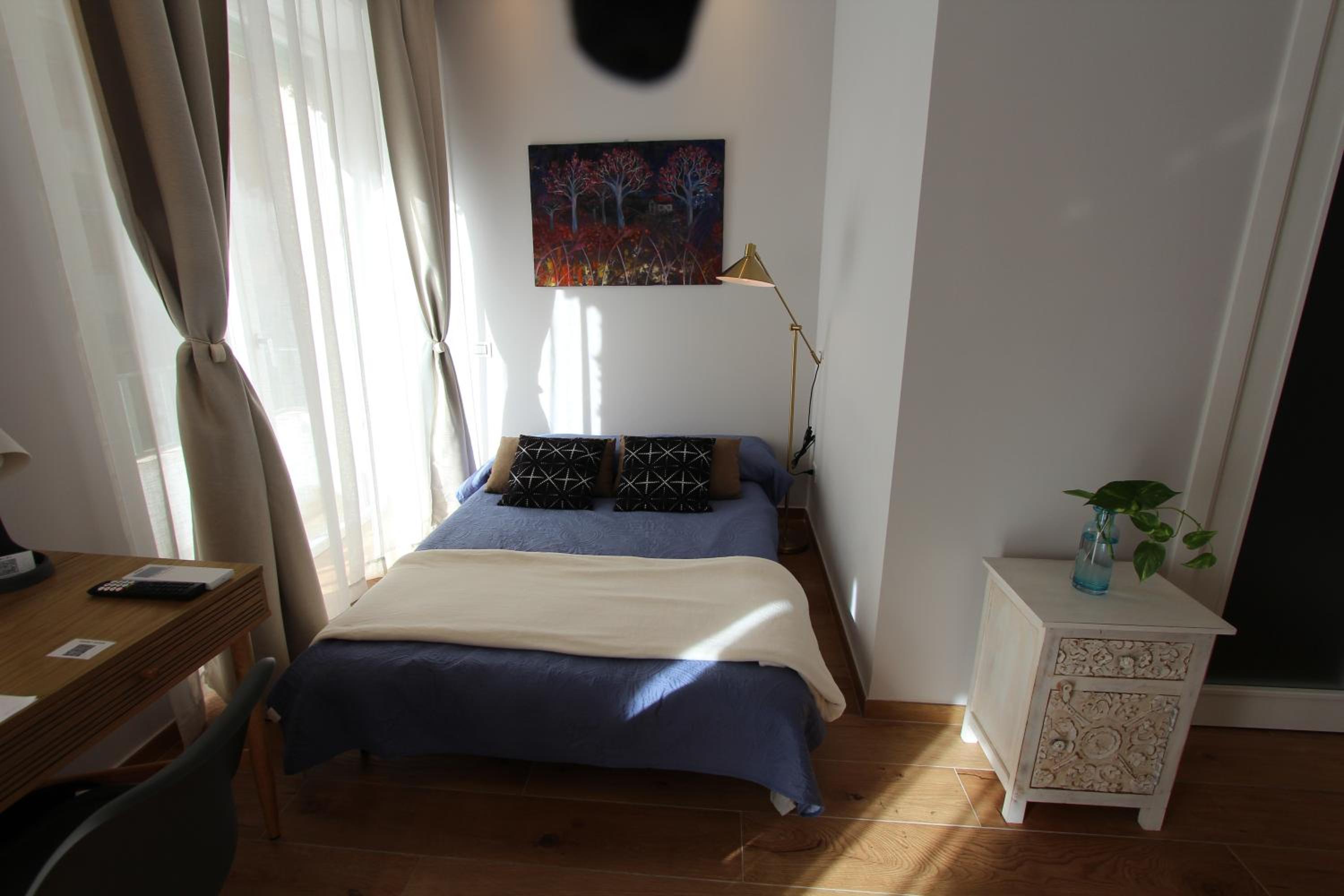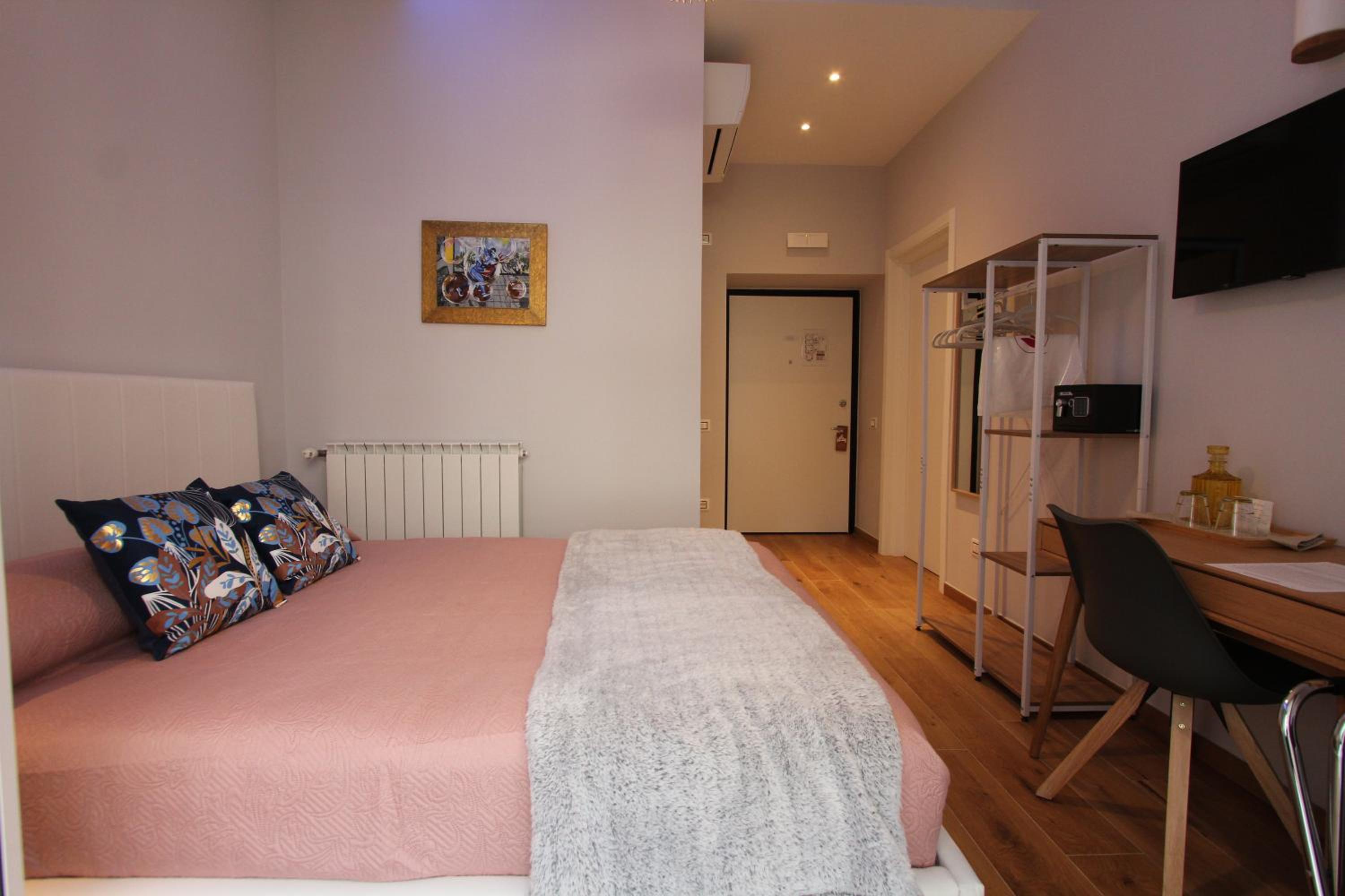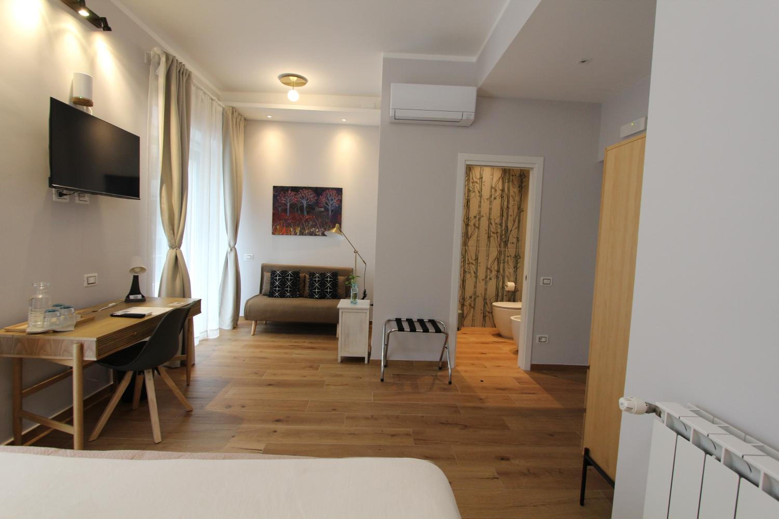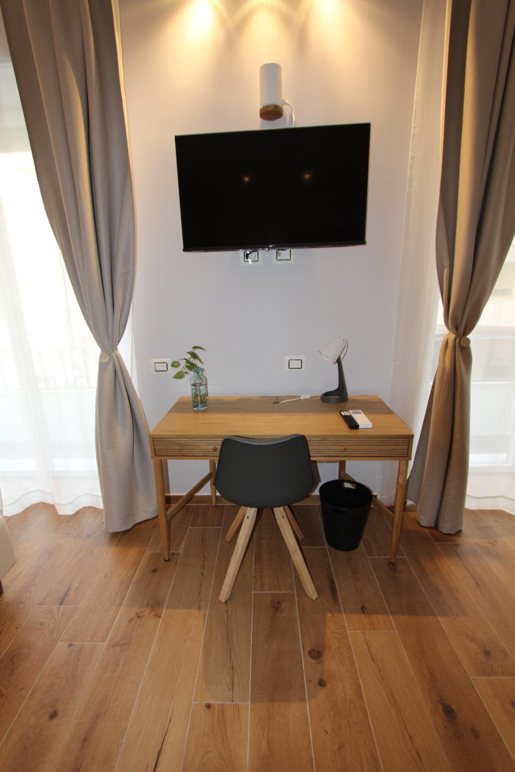 Beautifully decorated and very comfortable room. We had a balcony with side sea view and overlooking a lovely square. Our hosts were extremely helpful. Our hosts helped arrange a taxi directly to our cruise ship. Both the shared lounge area and our room are beautifully decorated and pristine.
