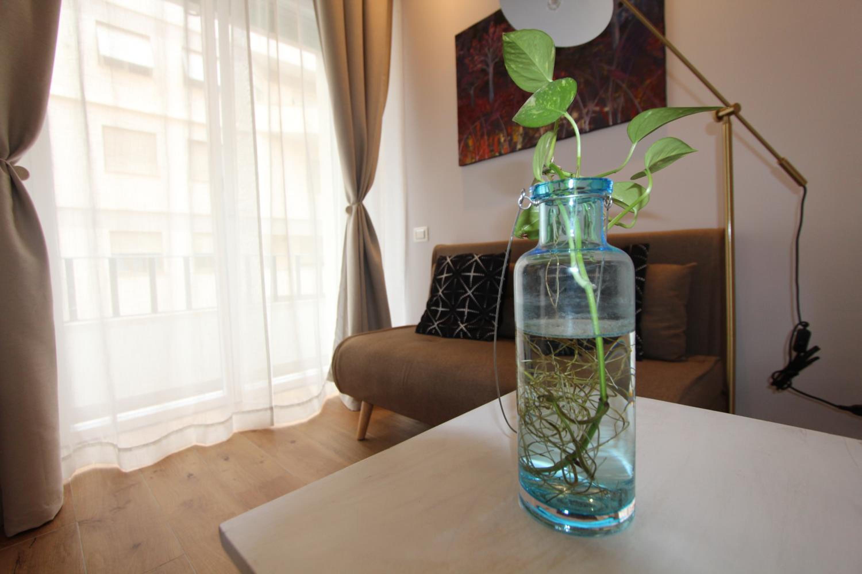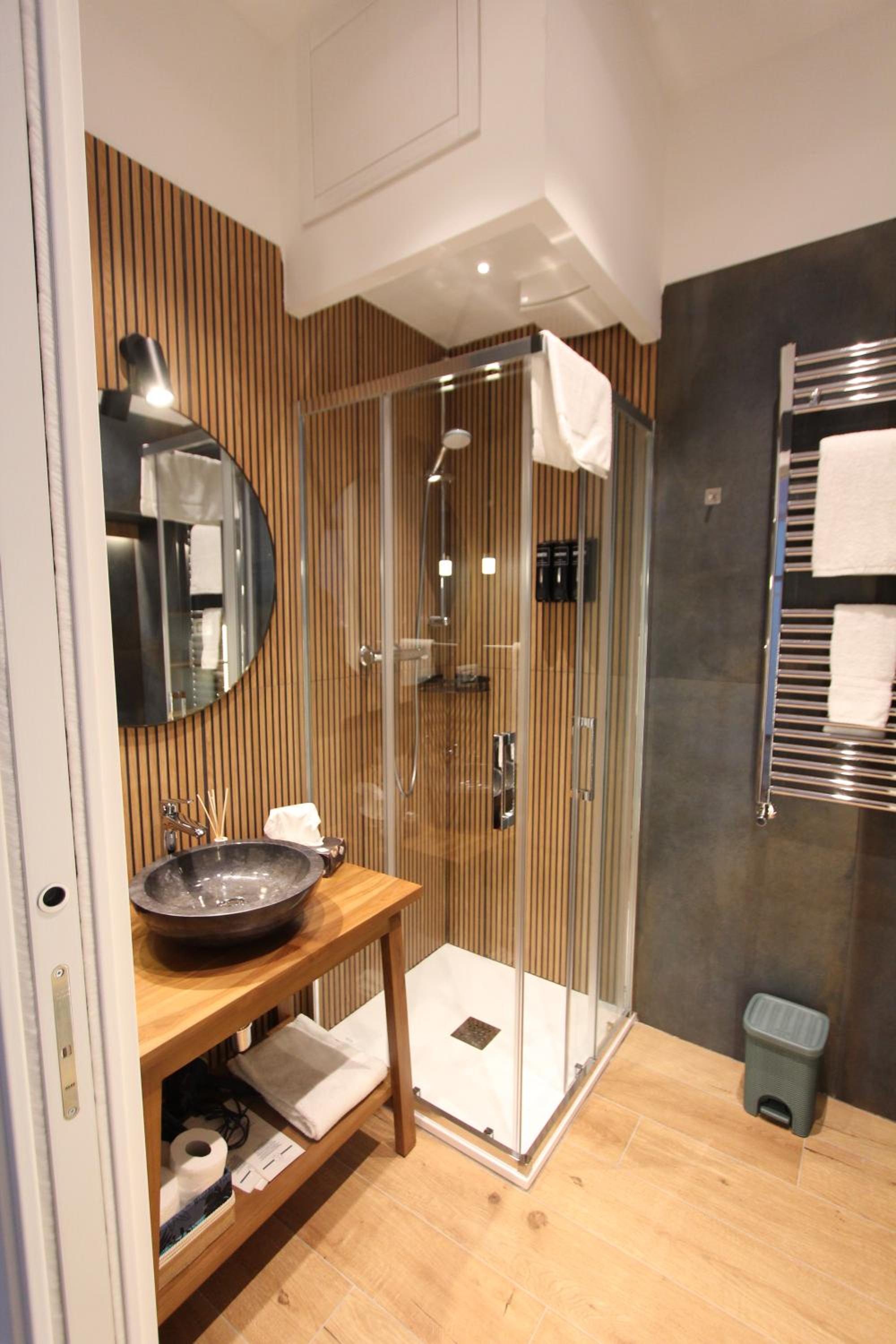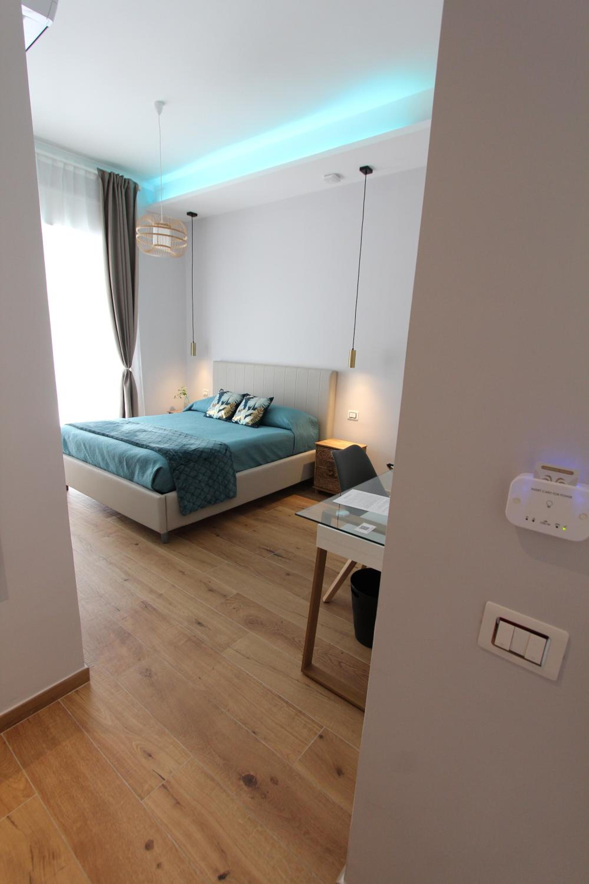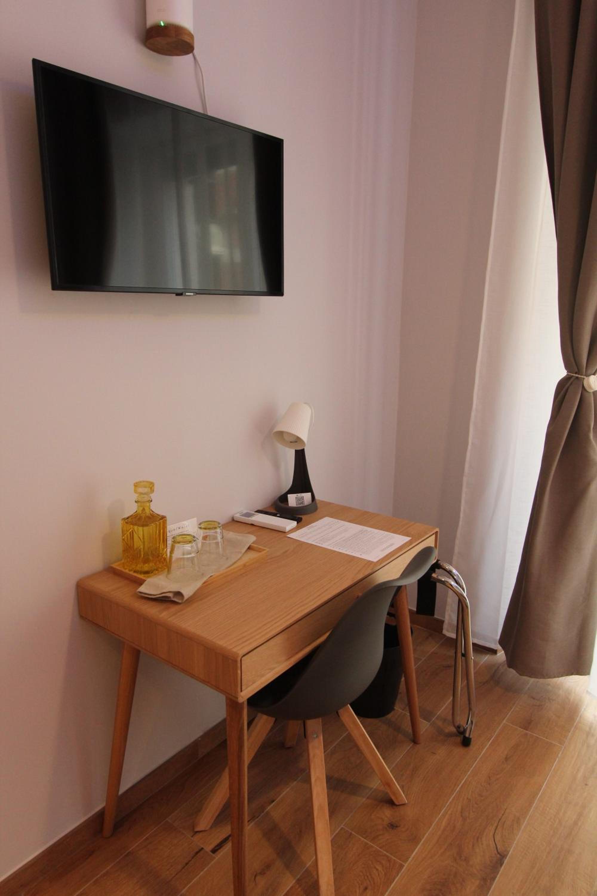 Beautifully decorated and very comfortable room. We had a balcony with side sea view and overlooking a lovely square. Our hosts were extremely helpful. Our hosts helped arrange a taxi directly to our cruise ship. Both the shared lounge area and our room are beautifully decorated and pristine.