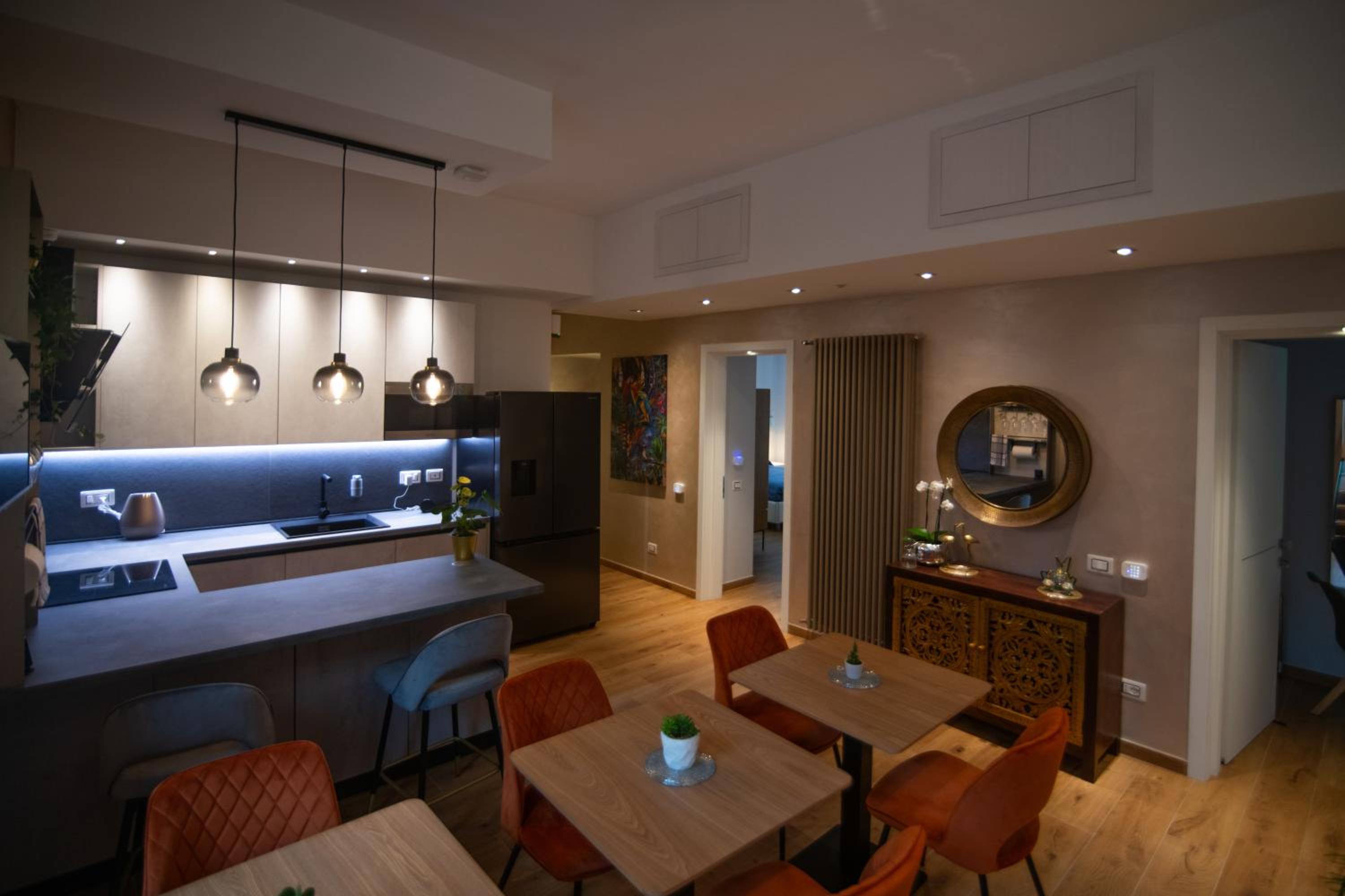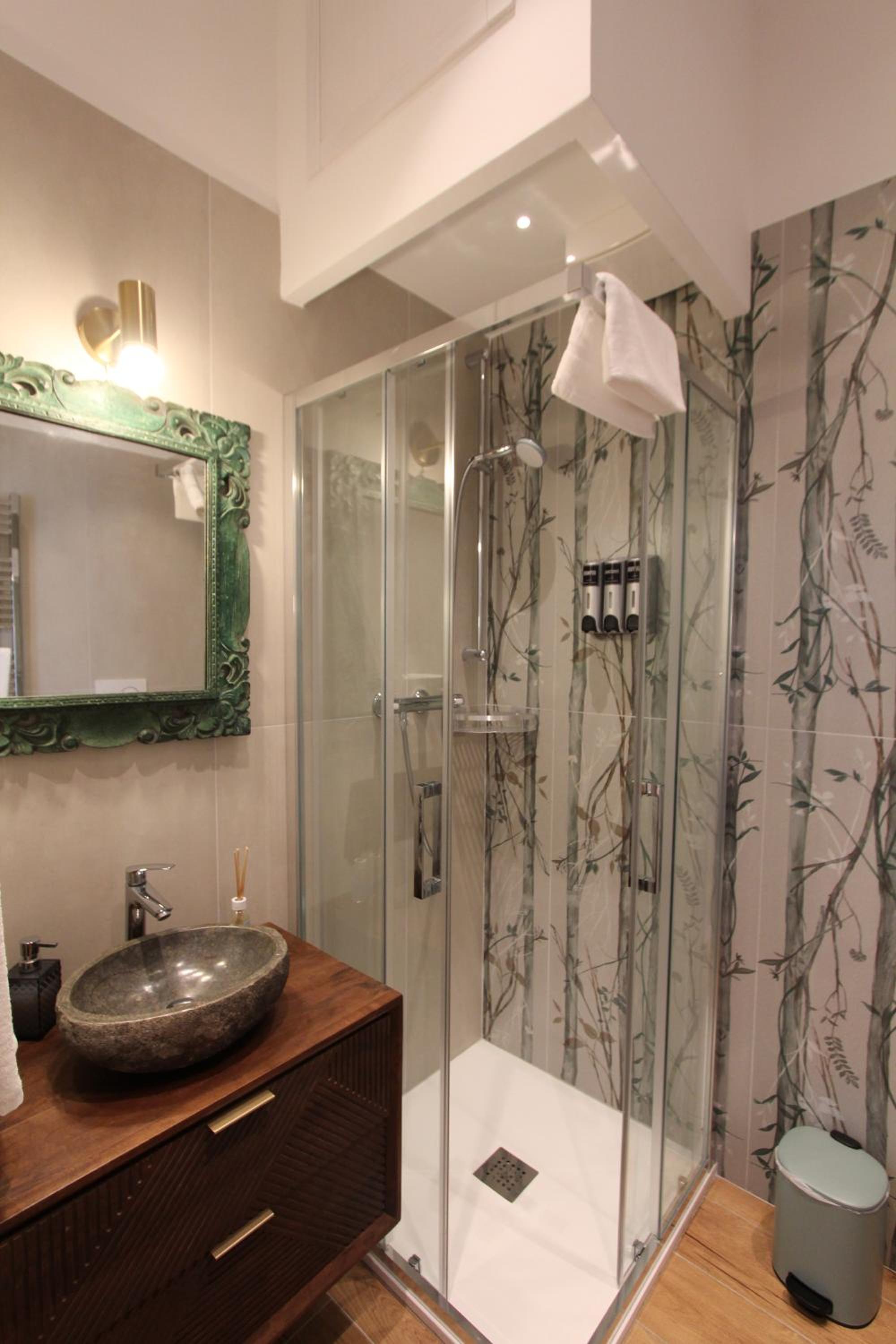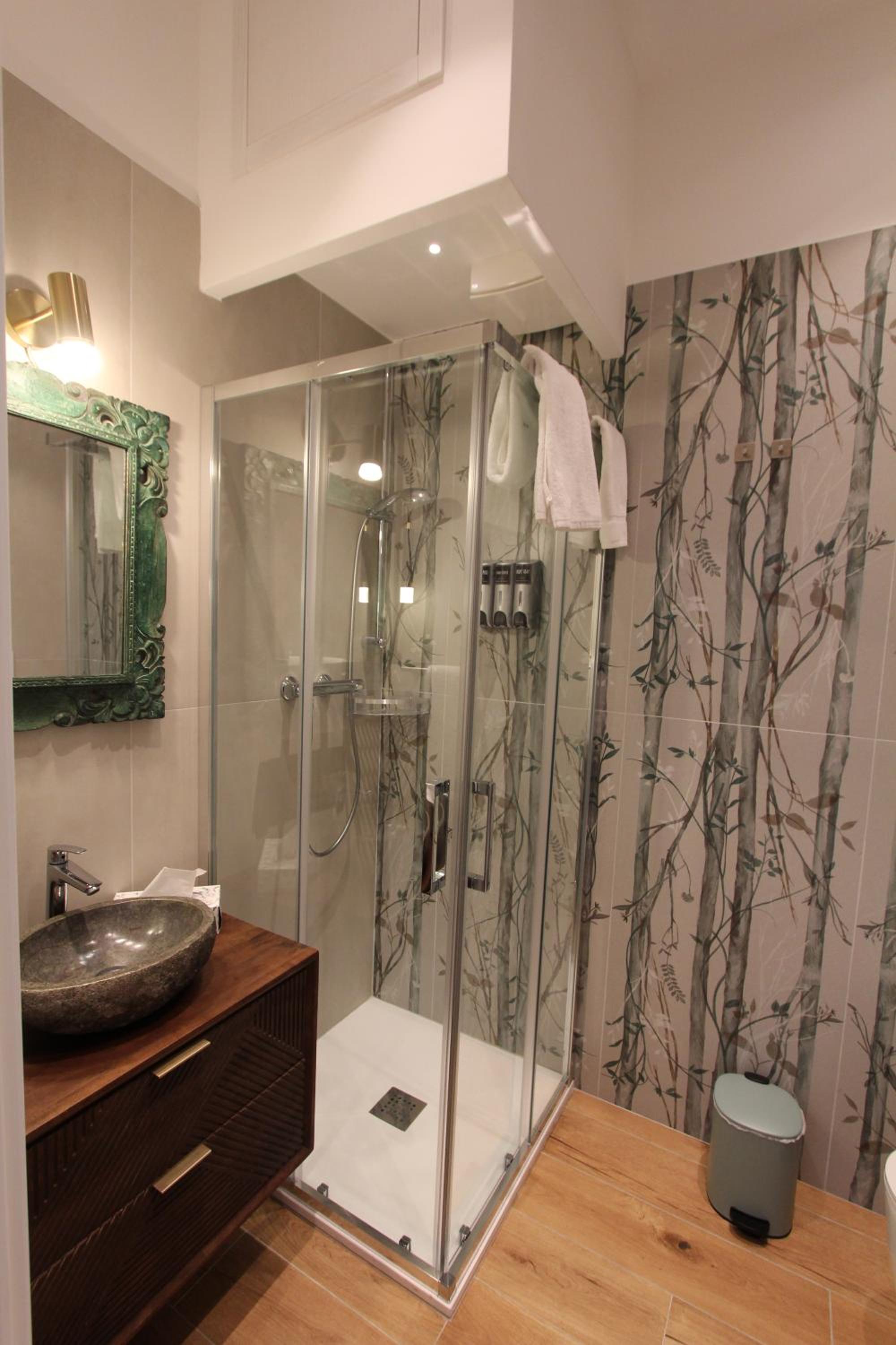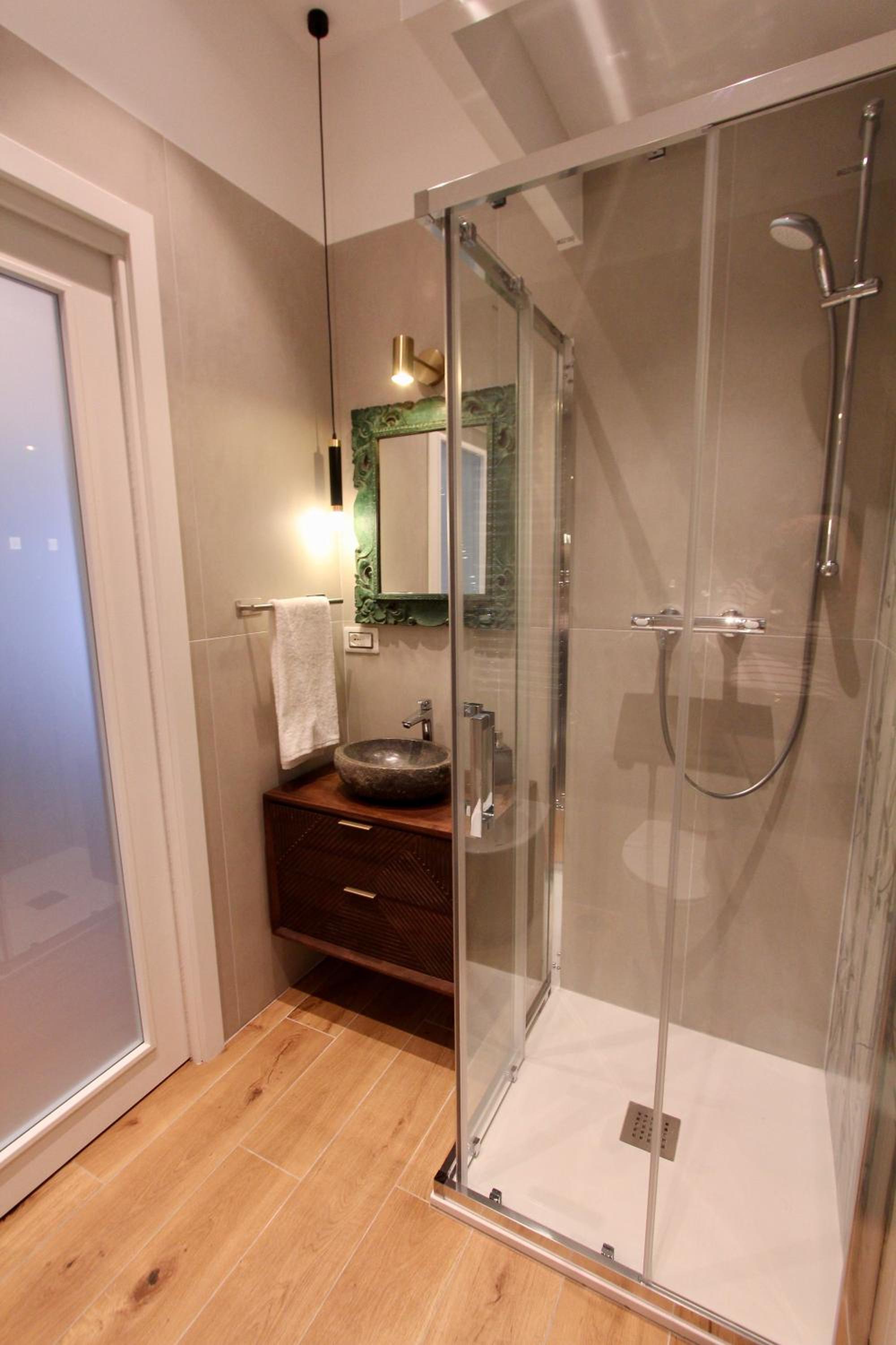 Beautifully decorated and very comfortable room. We had a balcony with side sea view and overlooking a lovely square. Our hosts were extremely helpful. Our hosts helped arrange a taxi directly to our cruise ship. Both the shared lounge area and our room are beautifully decorated and pristine.