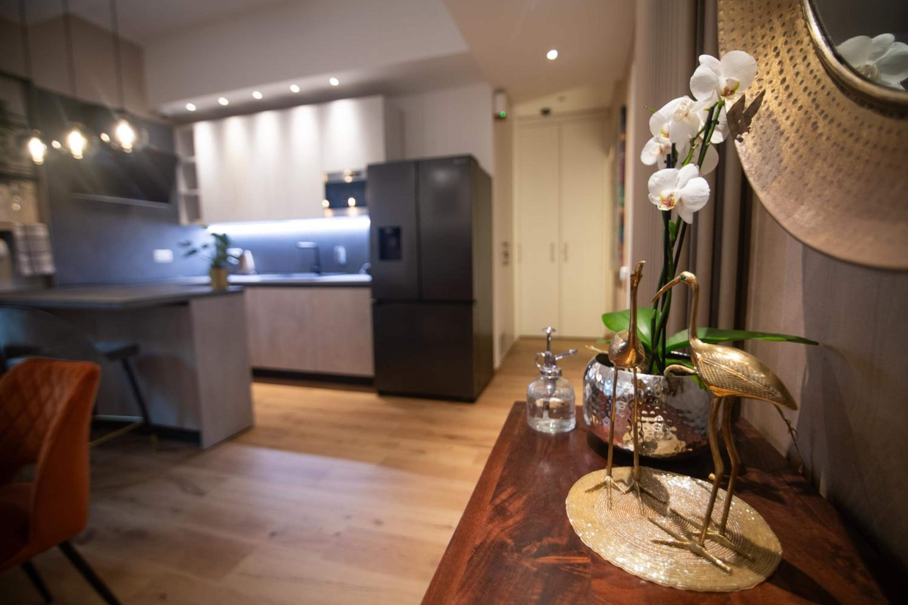 The apartment has 3 rooms, with key card, an amazing kitchen, a nice balcony with a lounge area.