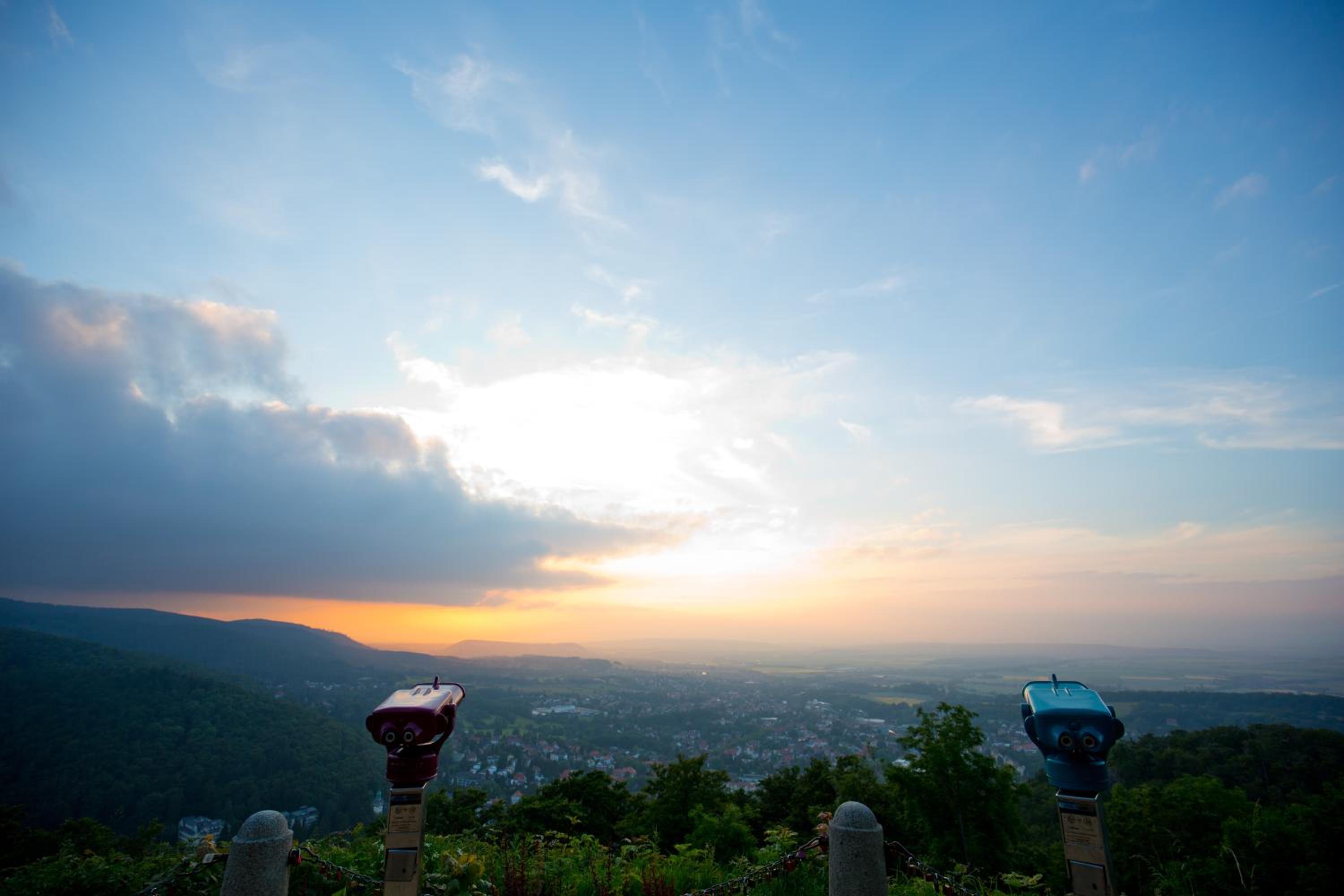 Breathtaking Panoramic Views: Experience stunning vistas overlooking the charming spa town of Bad Harzburg from Aussichtsreich Gast- und Logierhaus, perched on a scenic hill.