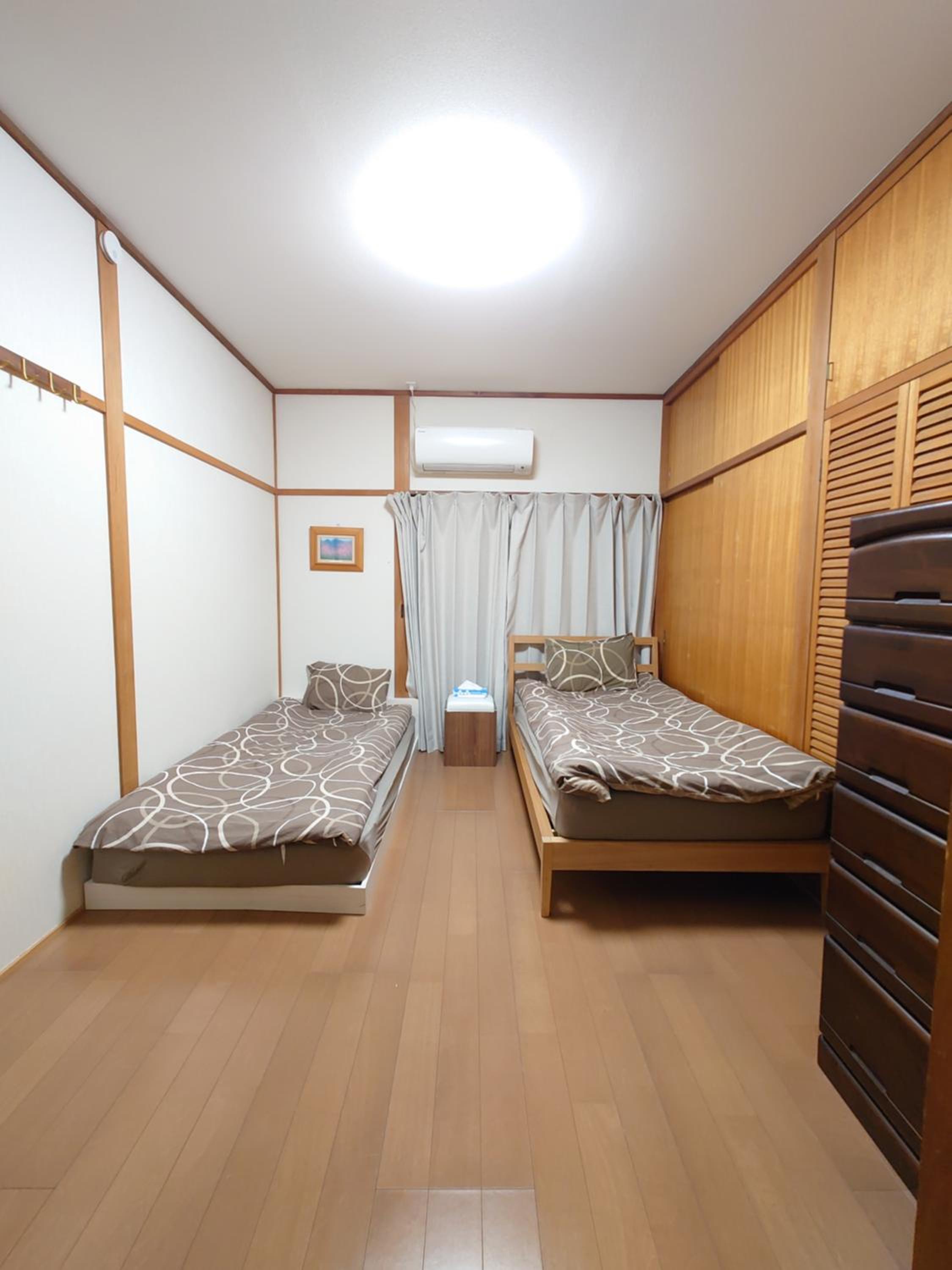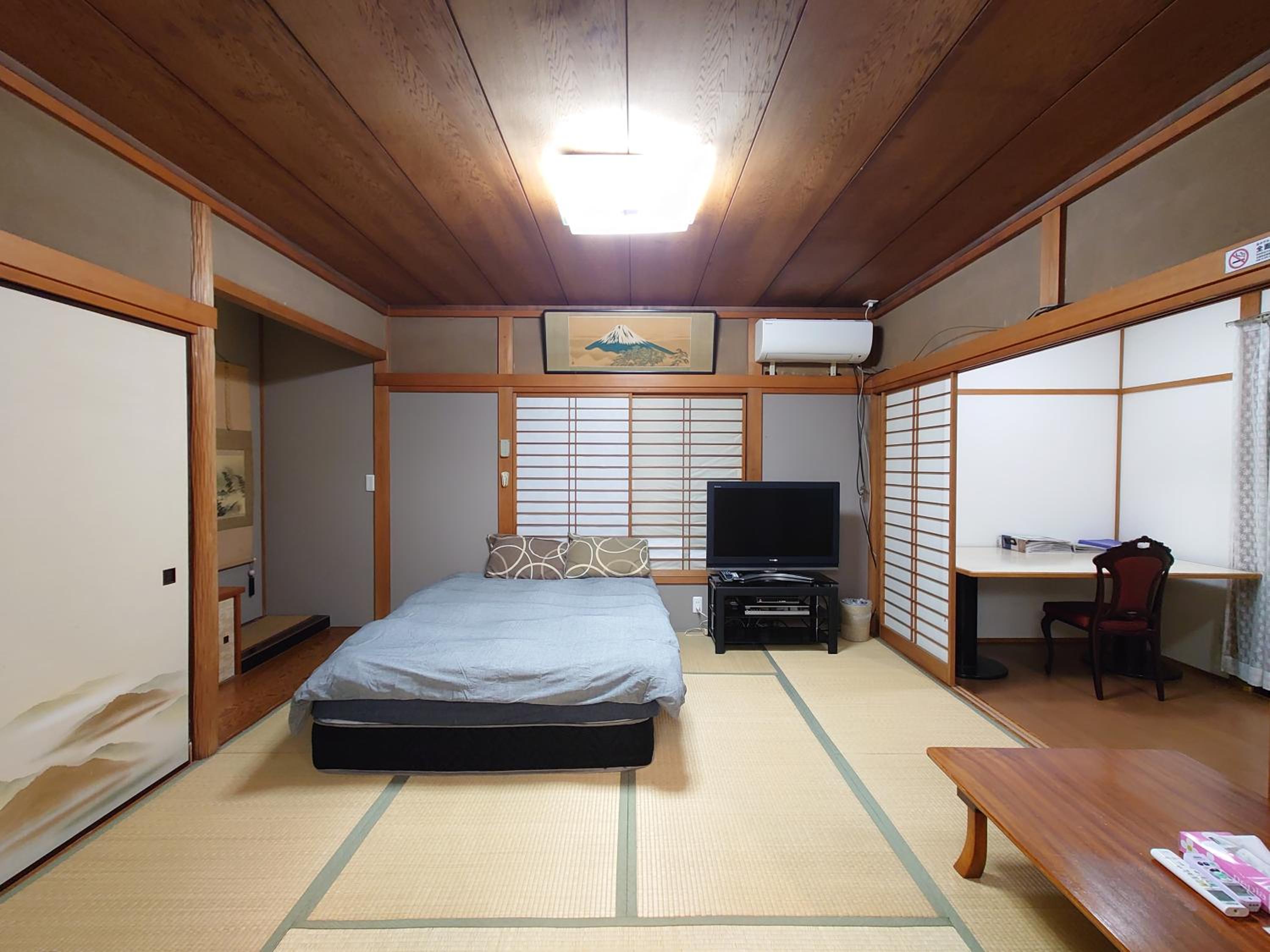 All bed sheets and duvet covers were dark-colored, old, and worn out. The beds were very uncomfortable. Kitchen equipment was totally inadequate for our group of seven people: only two coffee cups, four sake glasses, two frying pans, and one very small rice cooker. The only clean and well-maintained item in the kitchen was the refrigerator.
