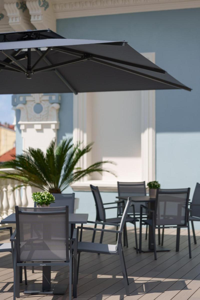 Experience the luxury of Vi Suites with its fitness centre, sun terrace, and hot tub overlooking the city. Enjoy the convenience of air-conditioned units with top-notch facilities like a coffee machine, dishwasher, and flat-screen TV. Some units even offer a balcony for you to relax with outdoor furniture.