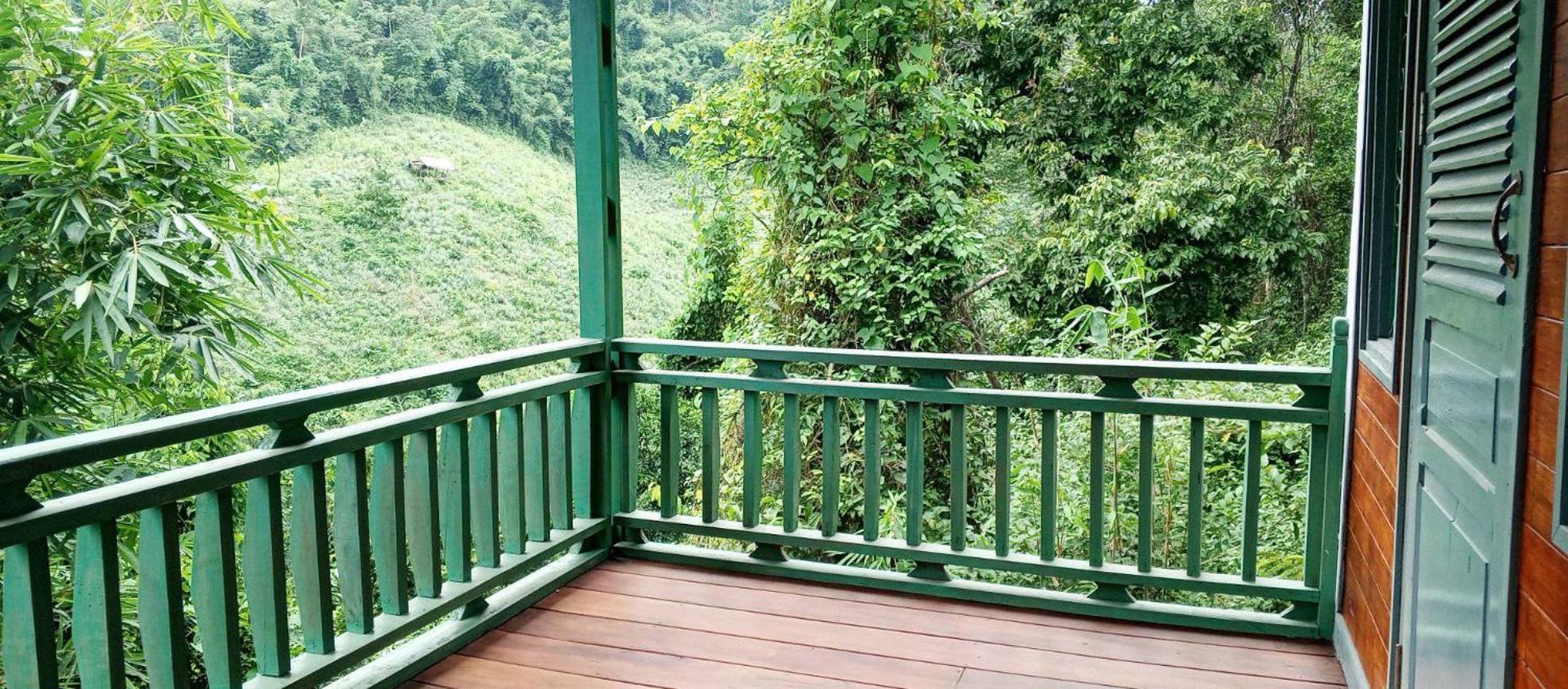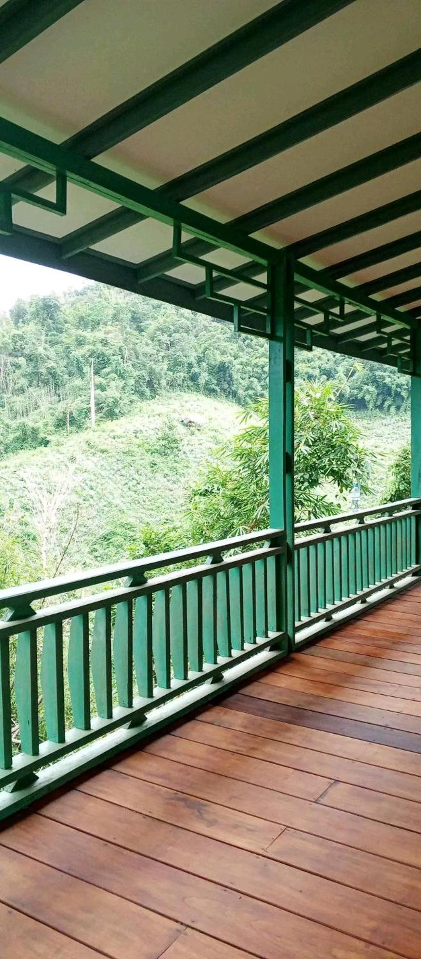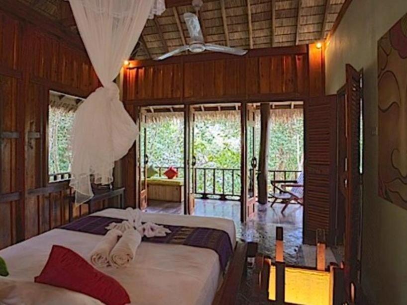 Recommend without hesitation. After a long flight or after a stay in the town, come here for an oasis of quiet, tranquility and peacefulness, surrounded by a spectacularly beautiful landscape of steep, heavily forested hills and a slow, slightly greenish Namkhan river in the valley below. Apart from the barely audible sound of one or two small boats a day, passing in the background, and a faint echo of the train whistle in the distance, it is completely silent here.