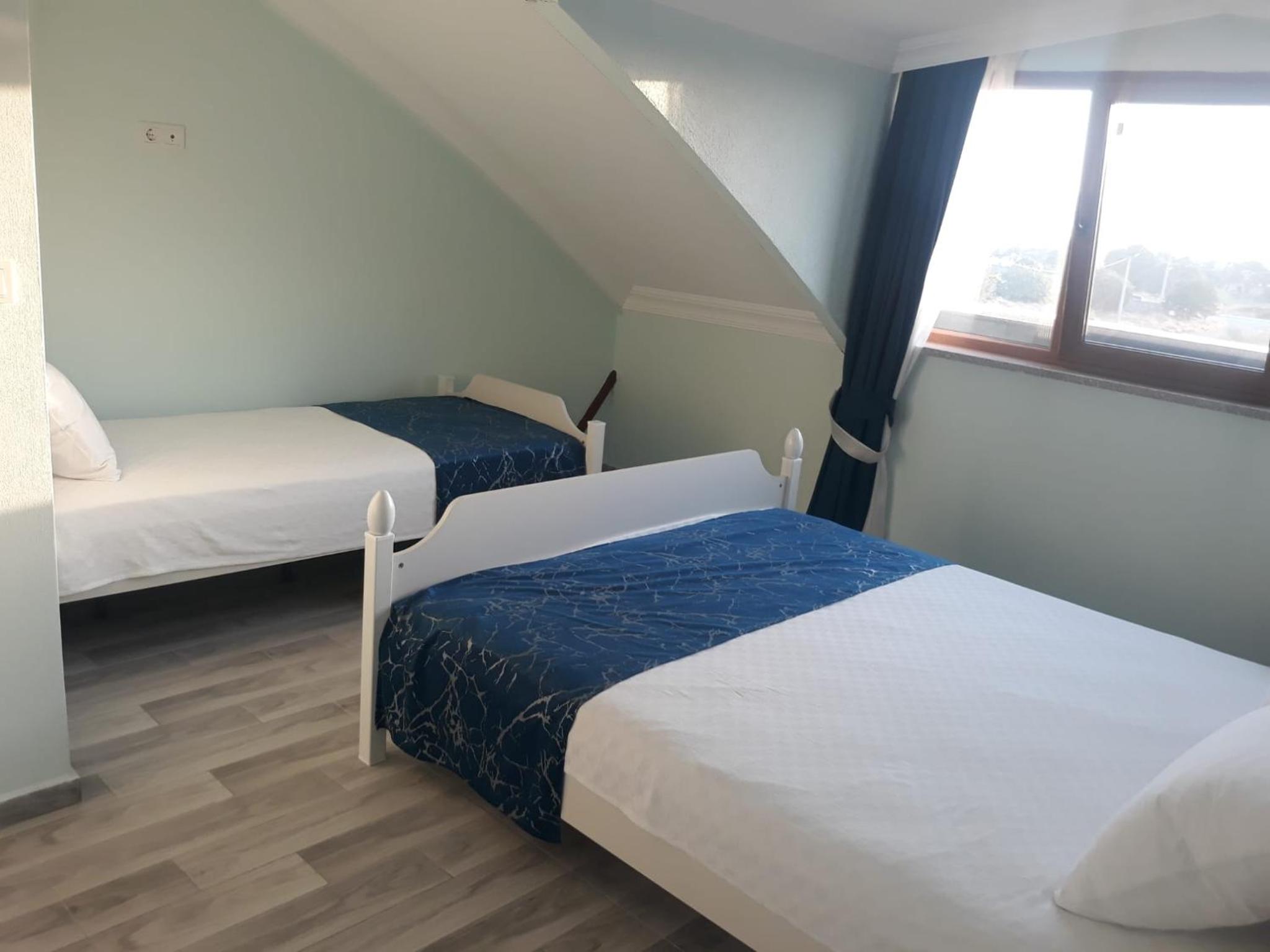 Daca vreti sa scapati de aglomeratia din Canakkale, atunci aceasta mica pensiune, situata cam la 40-50 de km de oras este ceea ce aveti nevoie...chiar si doar pentru o noapte de tranzit! Pensiunea este situata in Geyikli, in apropierea portului si a plajei...Pensiunea este aproape noua, nu foarte mare, cu cateva locuri de parcare in fata acesteia, zona este linistita ( dimineata era ireal de liniste!!!), proprietarii extrem de amabili ( chiar daca nu vorbesc engleza, ne -am inteles prin Google Translate). Camera a fost mica, dar intrucat nu am stat decat o noapte, nici nu ne-a trebuit altceva, curata, cu un mic balcon din care se vedea, partial, marea, dotata cu frigider ( cam zgomotos), a.c., tv.