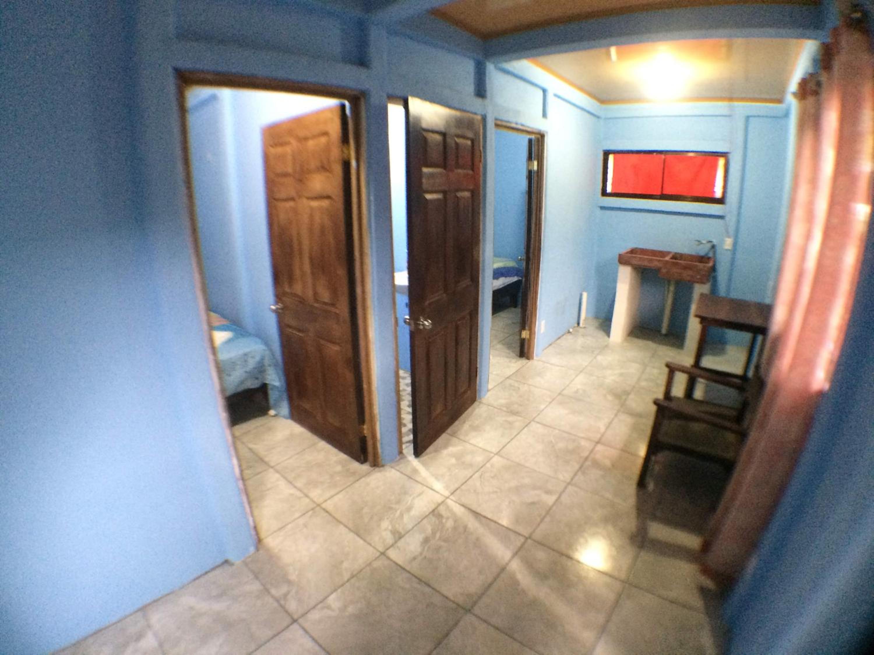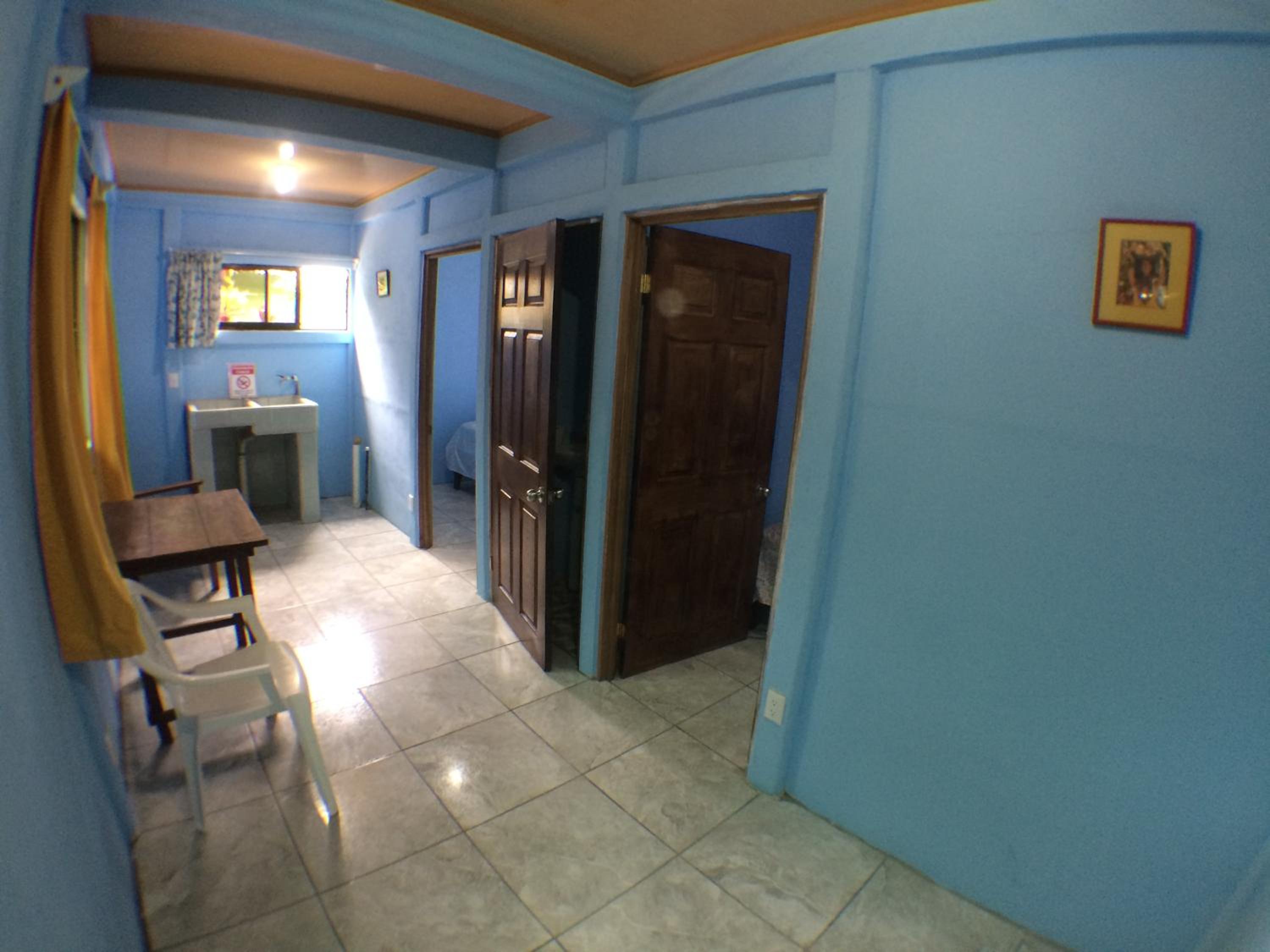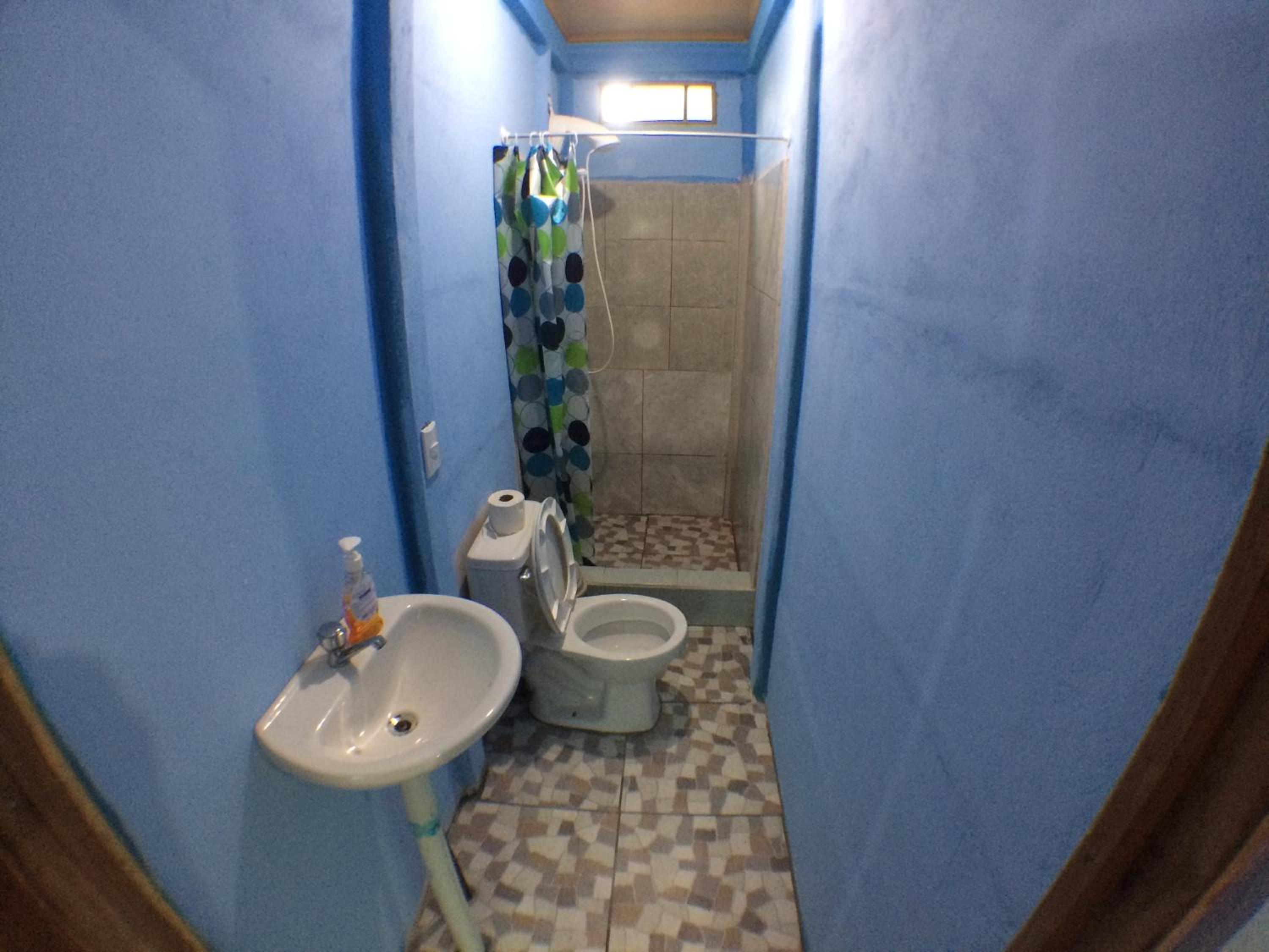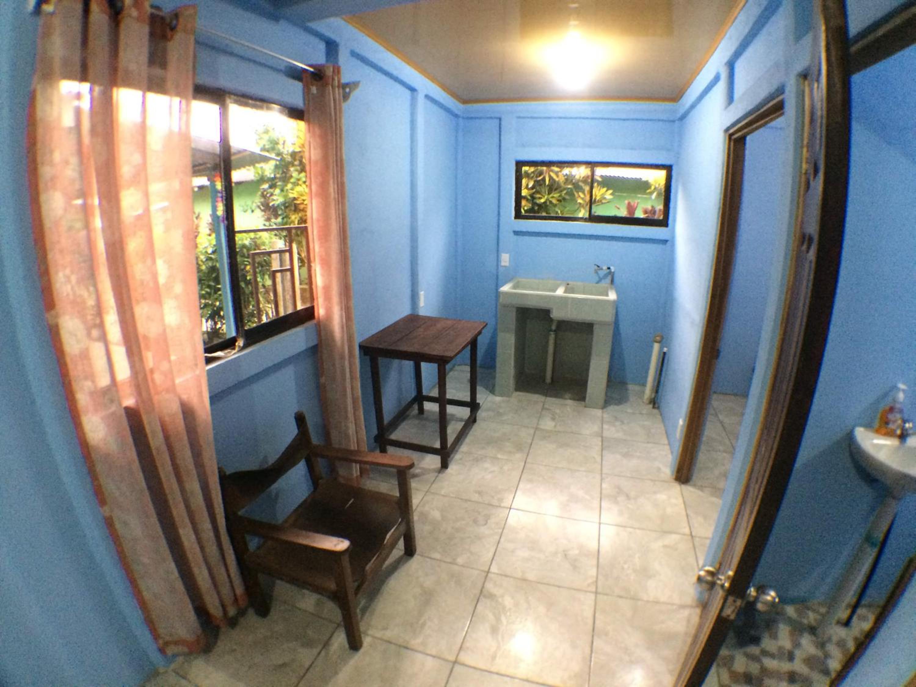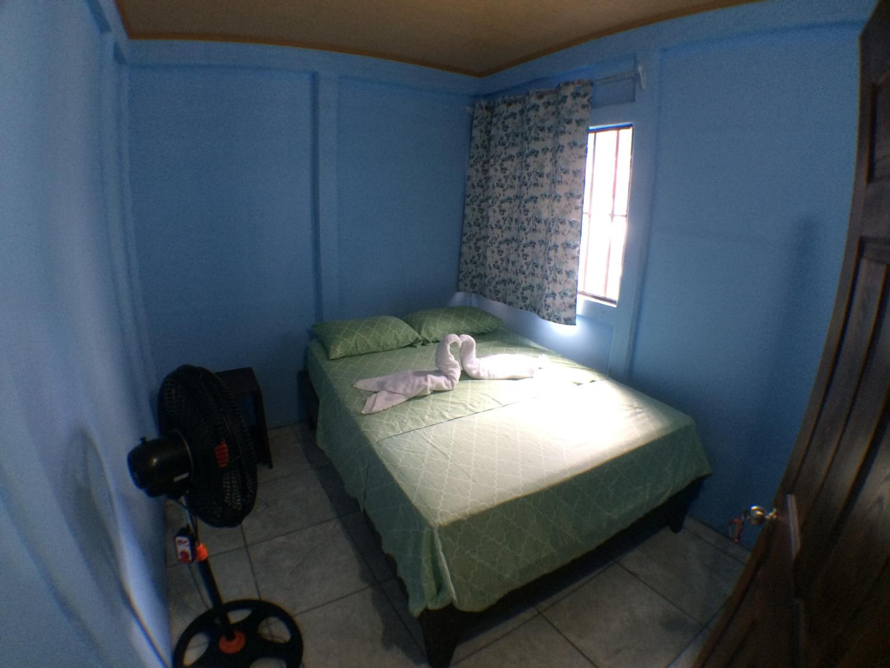 This is a basic hostel. We had our room which contained a bed a small table and a fan. There were two hooks on the wall. We shared a bathroom with the room next door. There were kitchen facilities but we did not use them. Tortuguero is very hot and sticky and we found it hard work. But we couldn't really afford the next step up to finding somewhere with Aircon. Bring enough clothes as nothing dries if you try to wash it.