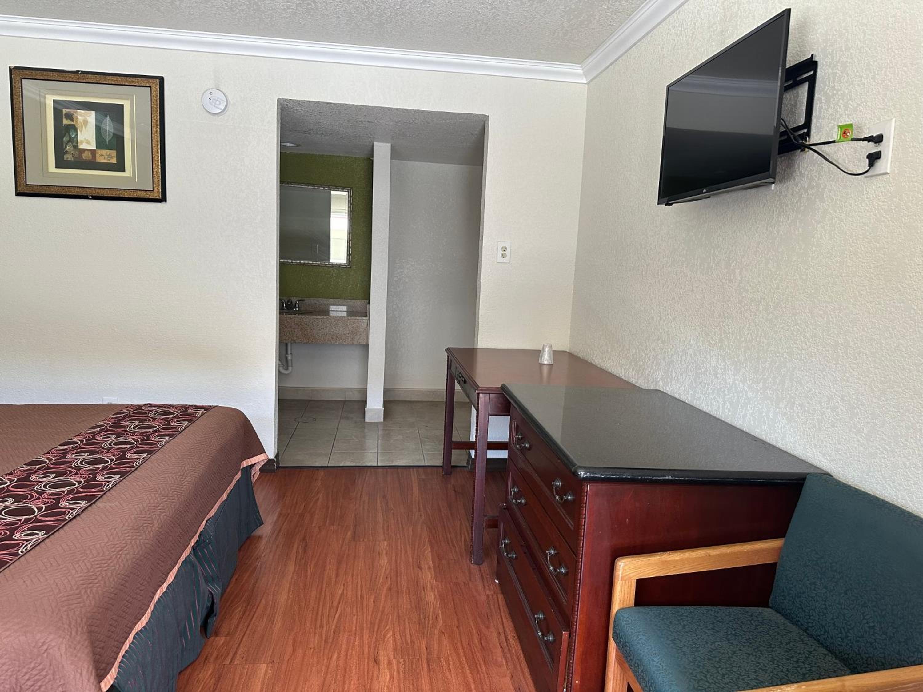 Nothing the room was filthy and dirty I didn't even want to sleep in the beds I didn't even think that they washed it and then as well as the office guy rude and disrespectful and we are watching the lady clean which I'm assuming is the wife and that's why the floors weren't done because she didn't have a vacuum she was trying to sweep it up curtains were filthy like food was just left on there nothing was wiped down the toilet was disgusting so I didn't even want to sleep in the bed I didn't sleep there that night