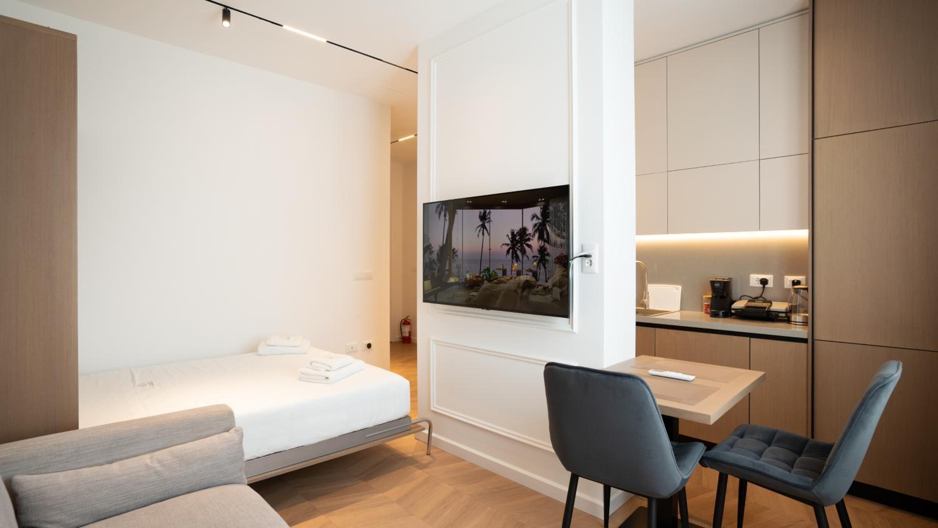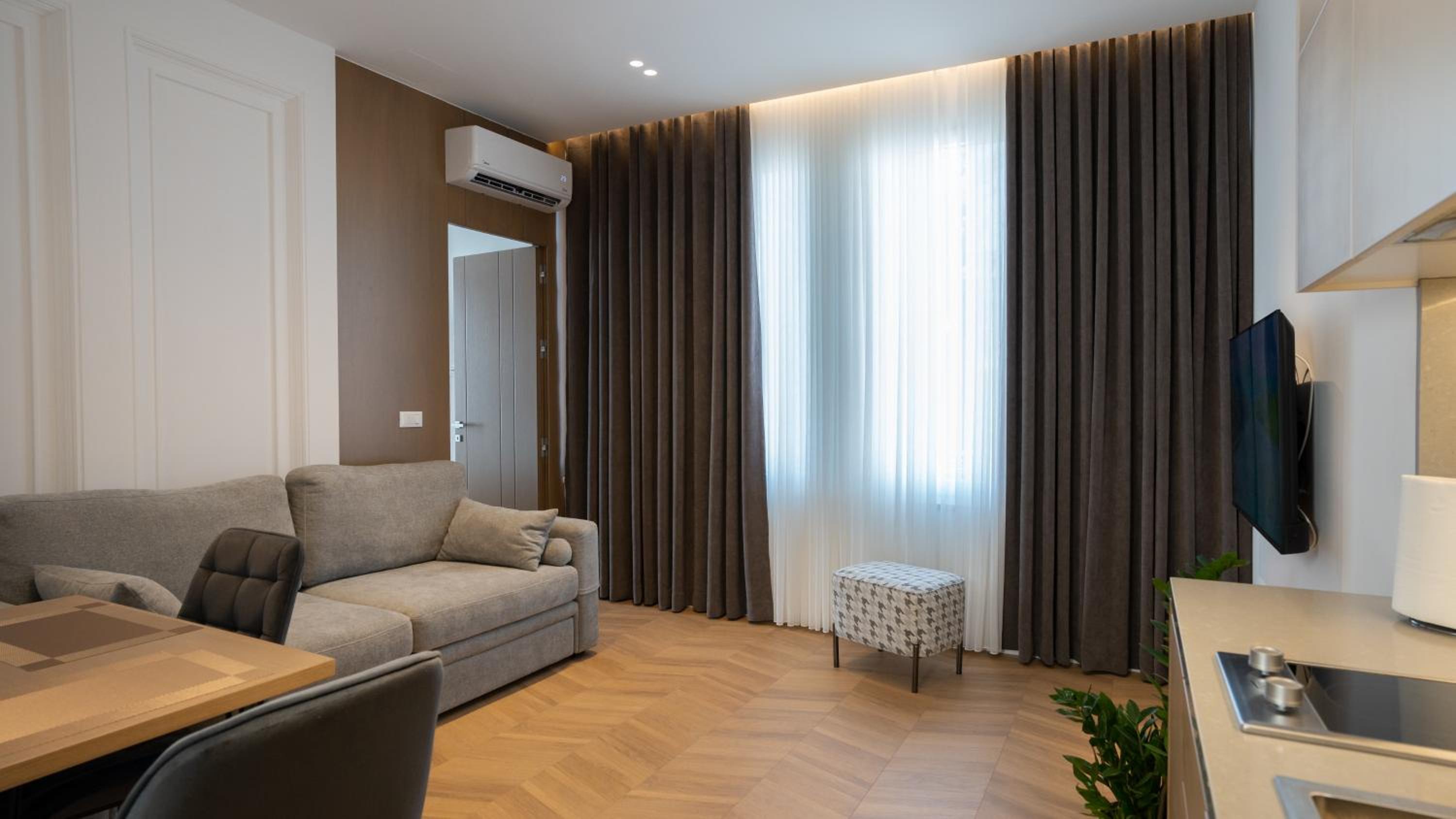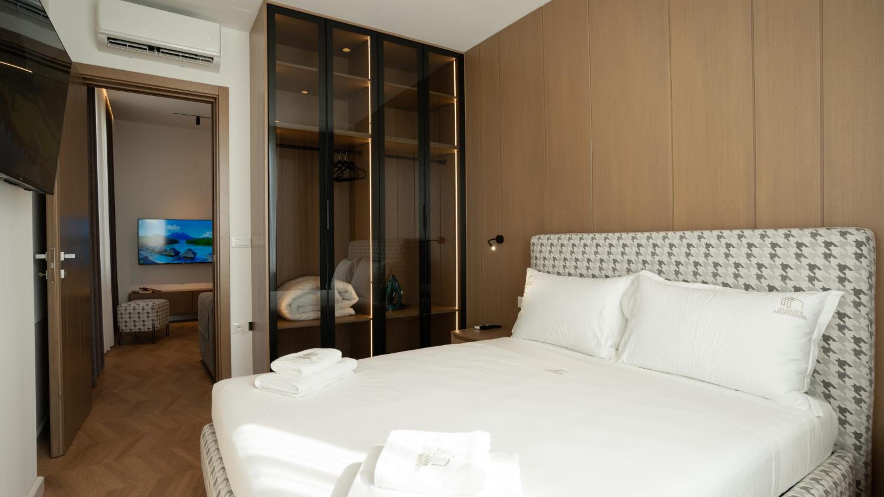 Albani's Apartment provides stylish rooms with contemporary amenities like fully equipped kitchens and flat-screen TVs. Enjoy free WiFi, private parking, and 24-hour security for a worry-free stay.
