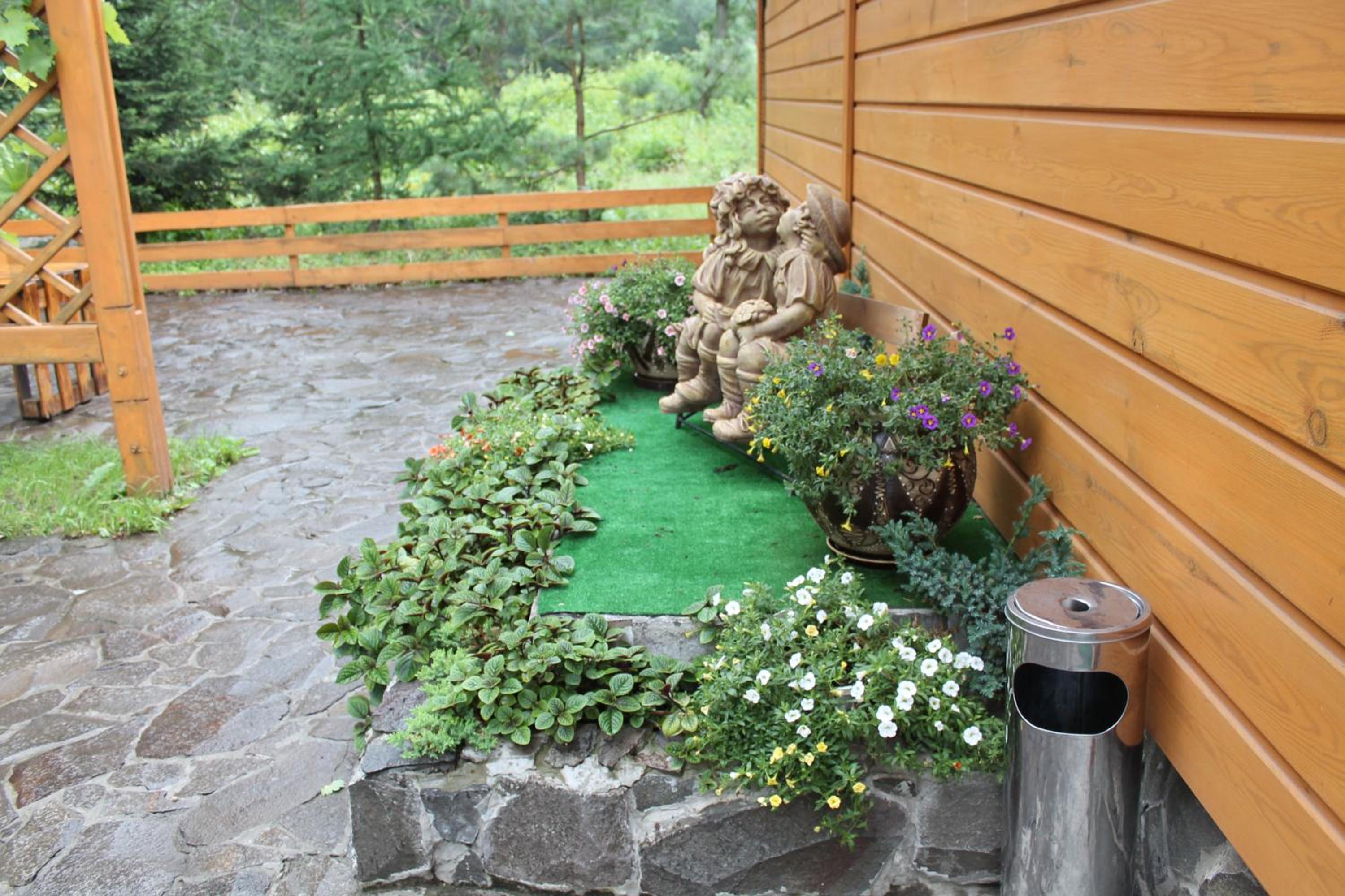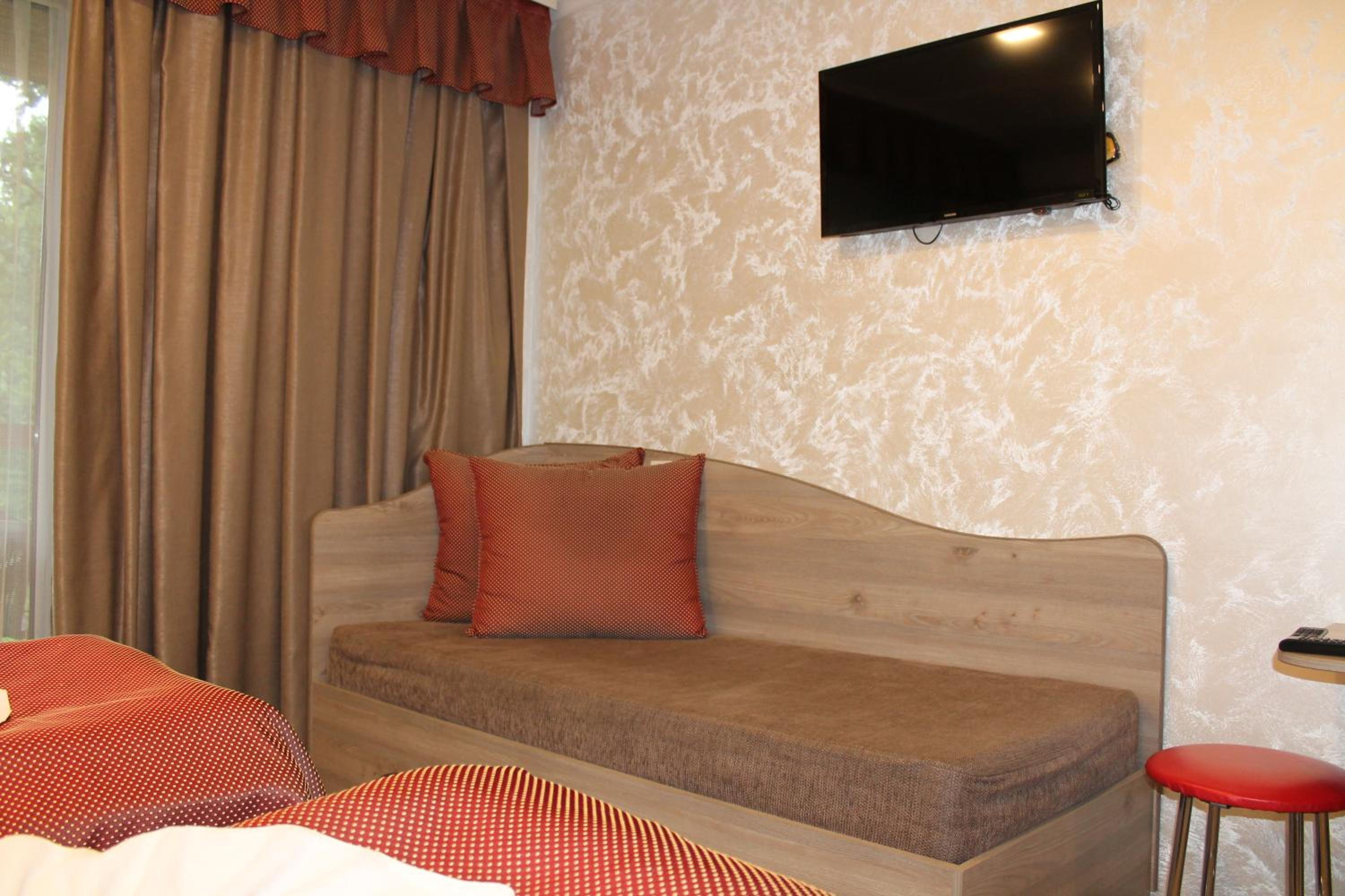 Готель розташований біля траси, але шуму машин не чутно, це зручно.
