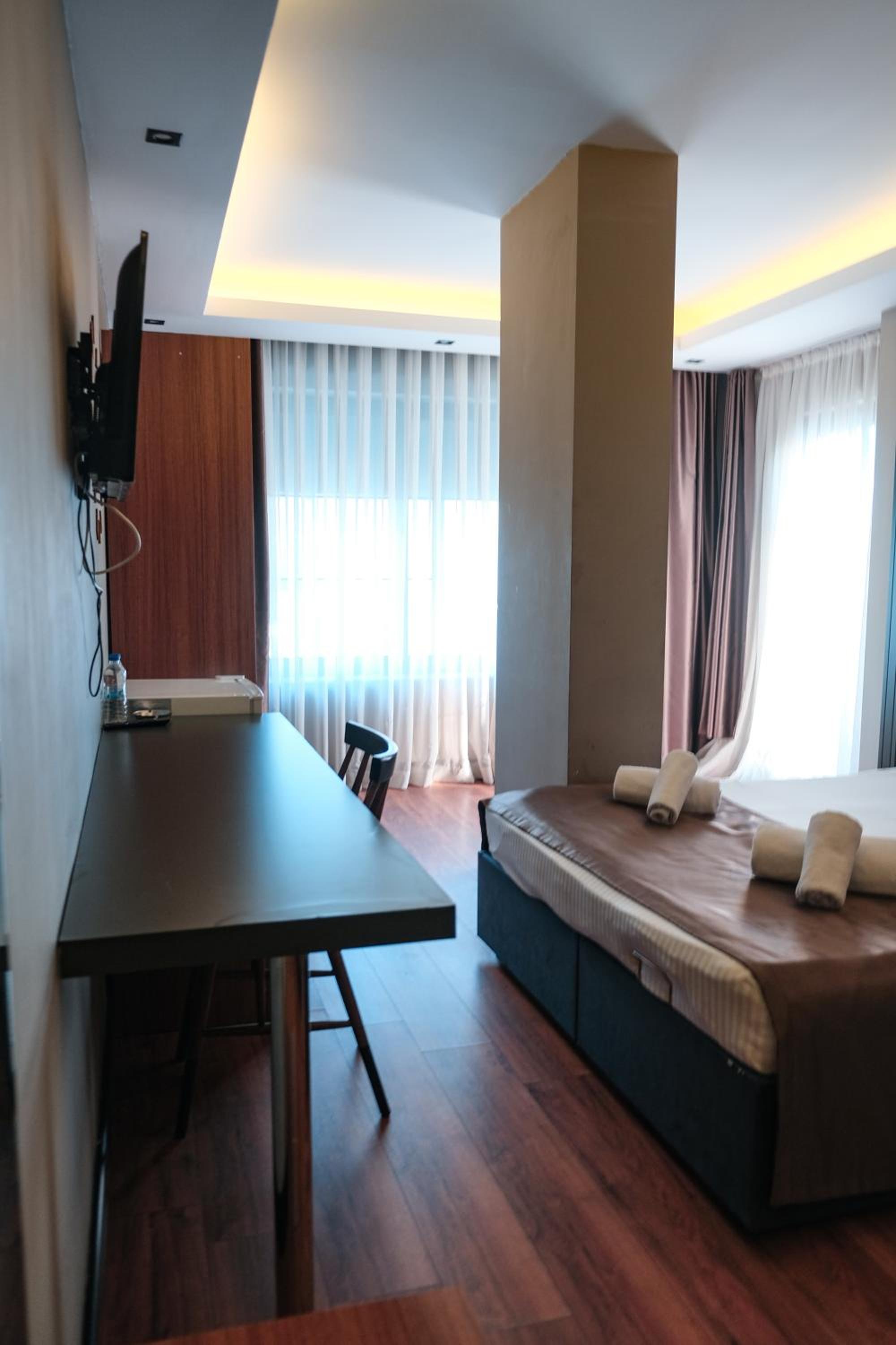 The hotel is in a really nice location. It is 50 meters from the sea. Surrounding restaurants, cafes, the beach are within walking distance and they also give discounts when you register as a hotel customer. Breakfast service is very nice. We thank you. The friendly attention of the hotel owners Mr. Oğuzhan and Ms. Çiğdem made us feel like we were at home. We leave with satisfaction