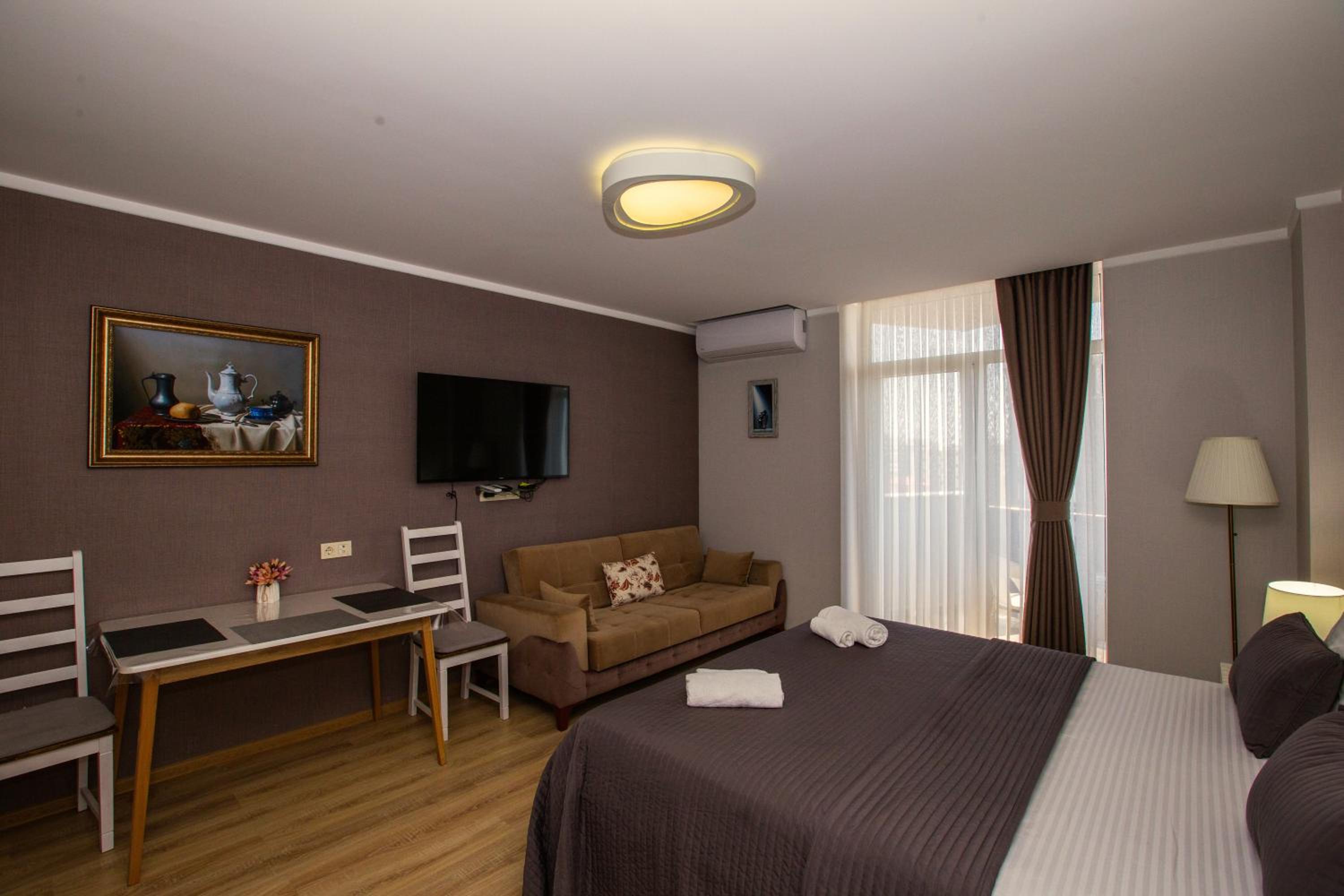 Мы отдыхали в начале февраля. Номер отапливается кондиционером. Кроме одеяла в шкафу нашли плед для уюта) Хозяин любезно предоставил нам бесплатный трансфер от железнодорожного вокзала Батуми. Удобное расположение отеля, так как рядом много продуктовых магазинов и большой ТЦ. Буквально напротив отеля набережная, вечером очень красивые музыкальные фонтаны. Цена соответствовала качеству услуг.