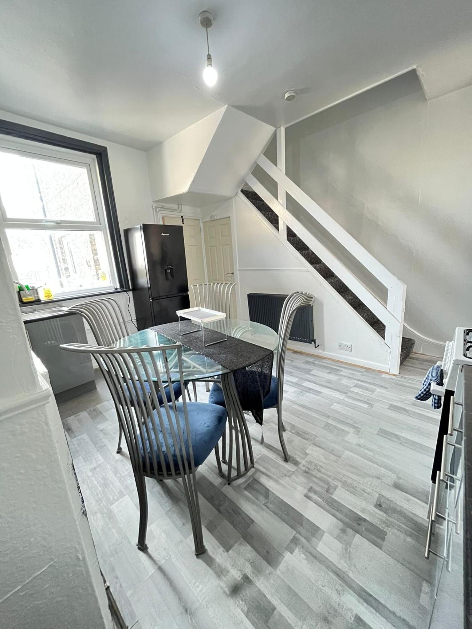 We couldnt even bring ourselves to stay at the property. Room had no lock. No security. Not that I'd want to be locked in there. One of the doors had been kicked in. Vendor would not answer the phone and declined my text messages. It was disgusting inside. Damp, mould on the wall by the bed. Bed was torn and bed covers looked like they had never been washed. Bathroom was dirty with used toothbrushes and razors at end of bath. Kitchen was filthy and I mean proper dirty. Washing up in sink and on the side, the hob was filthy I couldn't bring myself to look in the fridge. Dirty washing left on floor in unlocked stairs cupboard. The outside was overgrown with brambles and stinging nettles. The whole house resembled 'The Young Ones' house, sitcom from the 80's.