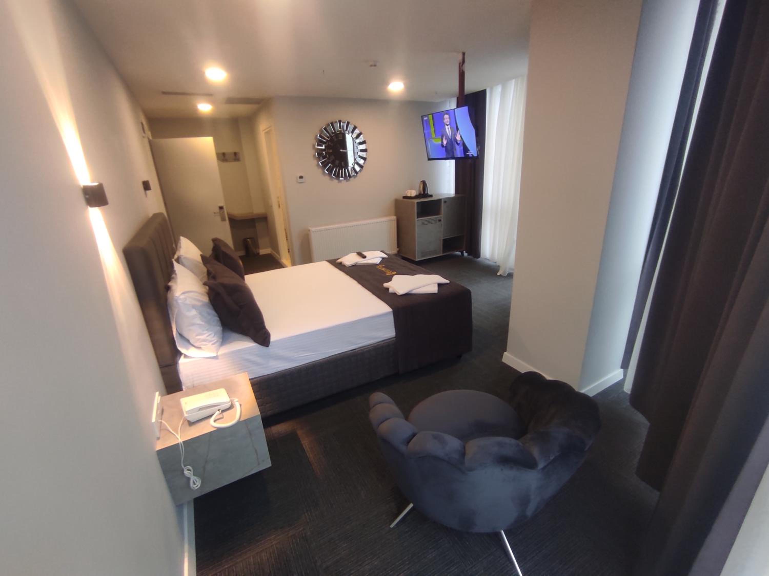 New hotel with elevator. Only 15mins away from Sabiha Gökçen Airport. Big, clean room with comfortable bed. Airconditioning was working properly.