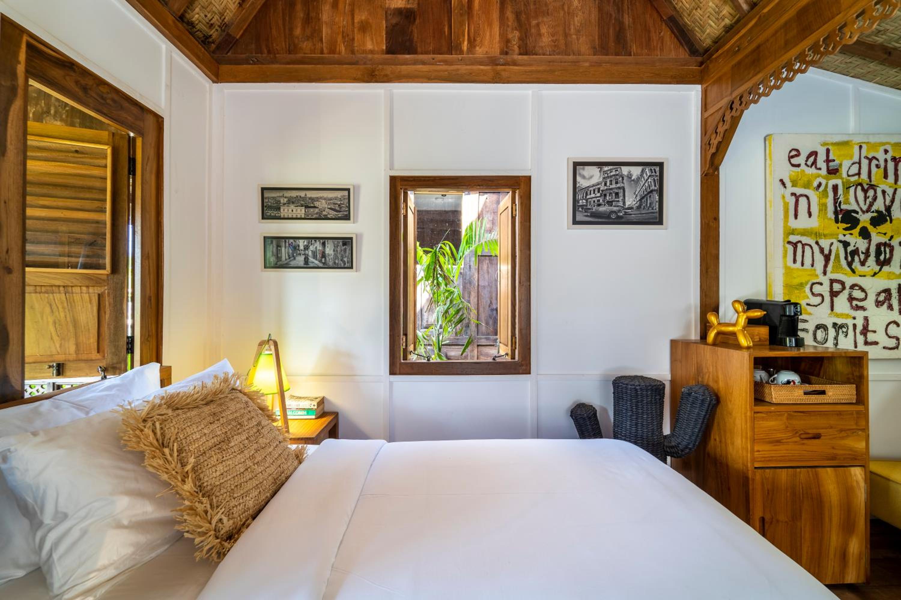Wayne has designed a place that he would like the stay in with lots of small touches that make your stay comfortable. The cabanas are restored original Java houses from the 60s and 70s. There is a gym which I used most days. The pool is small but delightful for a cooling dip. Our kitchen had coffee pods, lots of nice snacks and there were lots of recommendations for places to eat. We got delivery in as well as trying lots of good places to eat. the beach which is 5/10mins walk is stunning. Highly highly recommend this place to relax and enjoy the best of what Lombok has to offer.