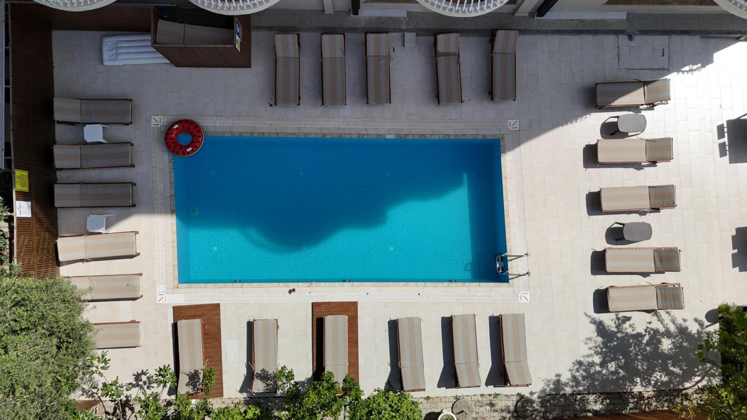 Basen głęboki i zimny, w raczej zacienionym miejscu, ale za to nie ma walki o leżaki.