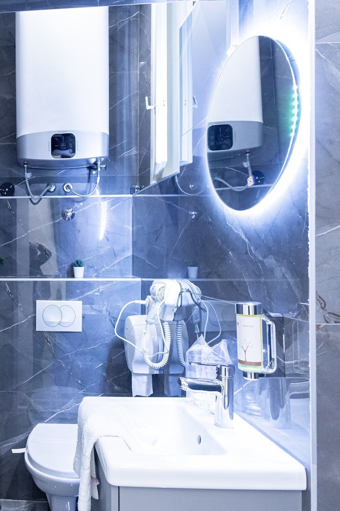 Clean but basic and relatively small room/bathroom. The carpet needed a good clean as it was heavily stained. No amenities in the room such as tea/coffee/water or toiletries except for soap. We had a problem with our air conditioning unit when we checked in which took a little while to resolve and it was 34c so this wasn’t ideal but the staff were helpful about this. The shower wasn’t always hot. The room was relatively quiet although not well soundproofed as we could hear other guests coming home through the main door and walking down the corridor. We paid extra for breakfast which was in a cafe across the road and there was a good selection, although it was only served with coffee so we had to pay extra for tea. Great location for walking to the old town and St Sava’s and St Mark’s. Staff were all friendly and helpful.
