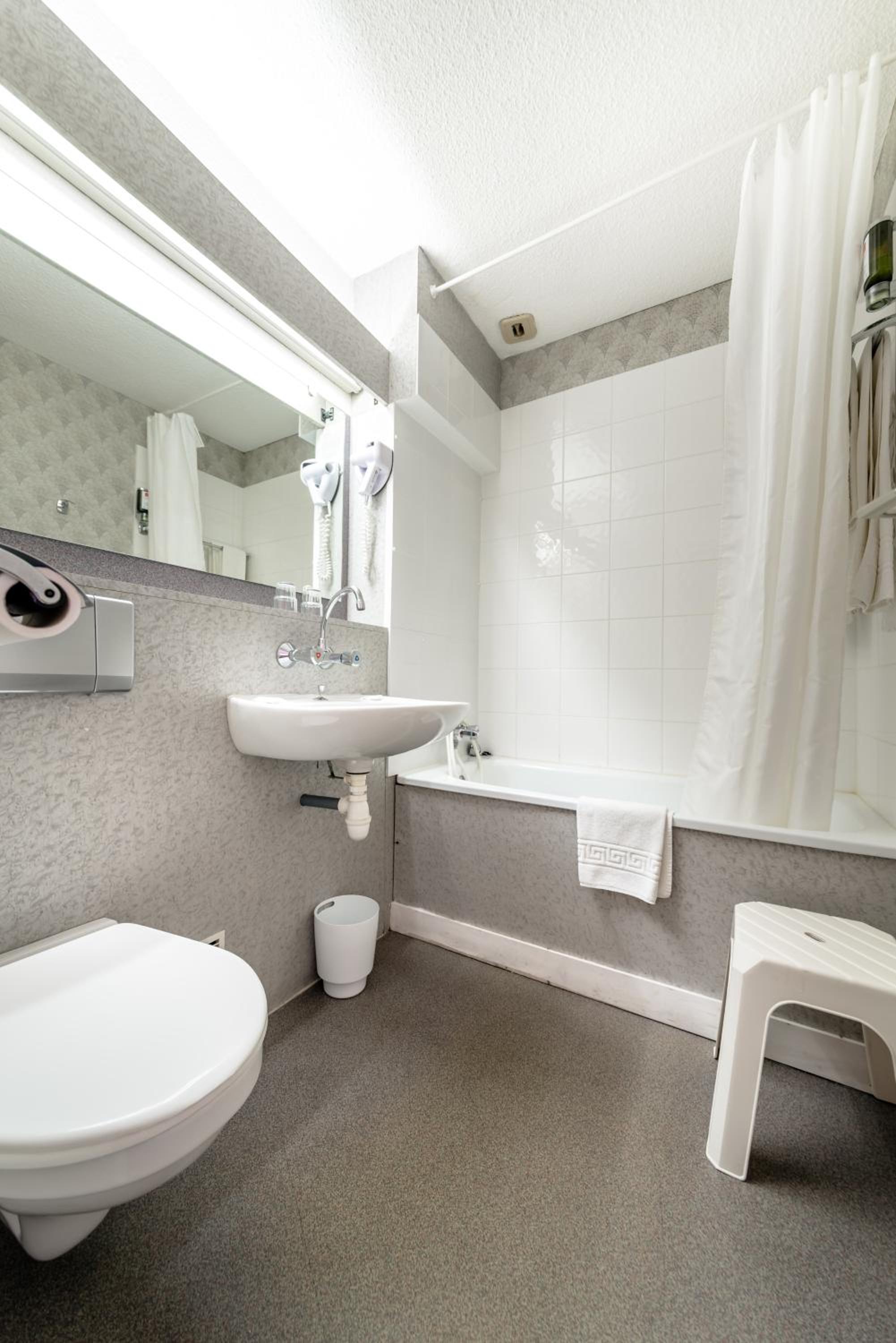 La chambre était sous les toits et il faisait assez chaud (pas de Clim naturellement). Ouvrir la fenêtre fut la solution mais la circulation même si pas très fréquente fut bruyante. Certaines personnes ont des voitures sportives et l’ont fait savoir. Donc assez mauvaise nuit. Prenez cote cour et non pas côté rue du moins l’été.