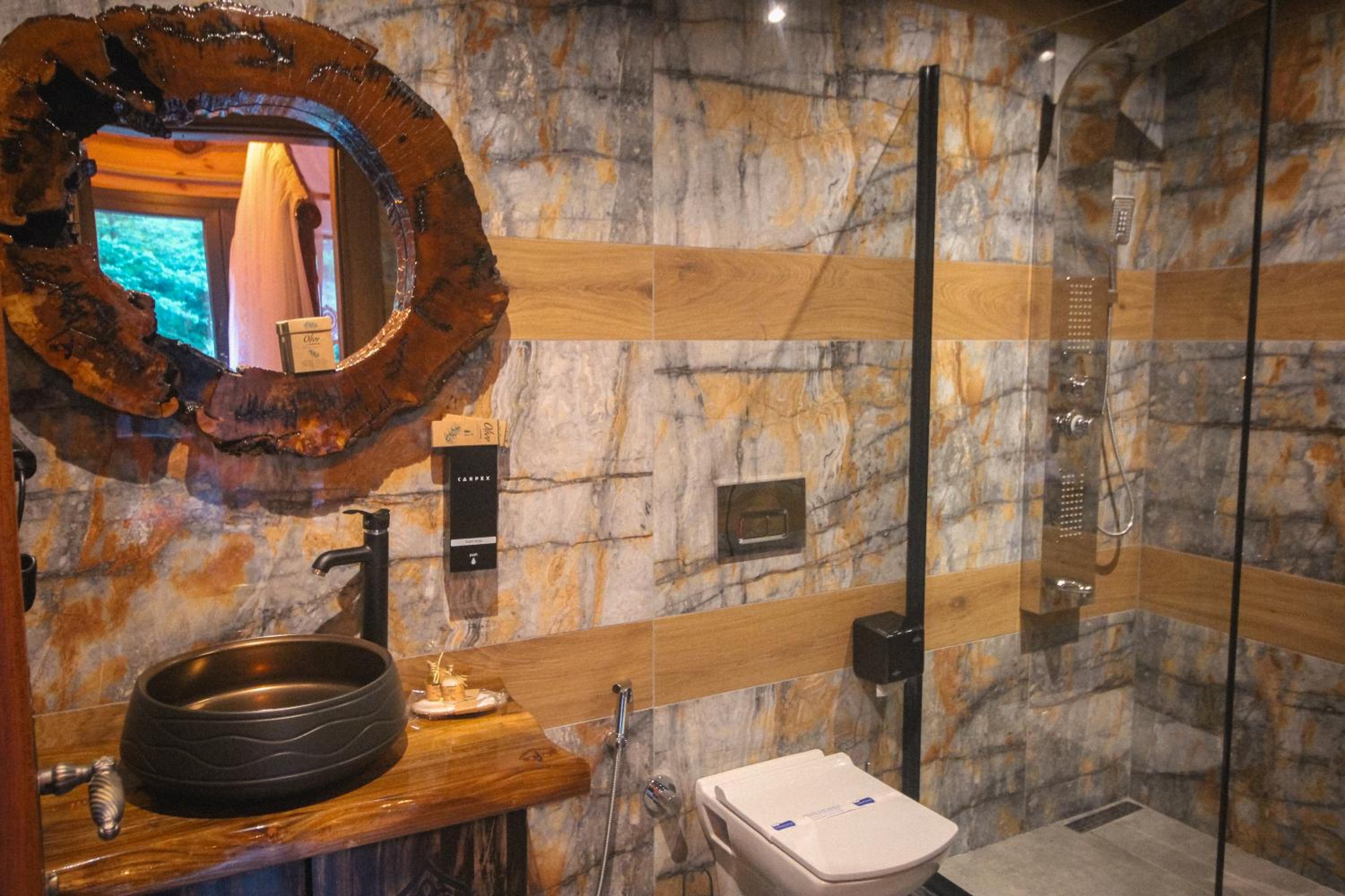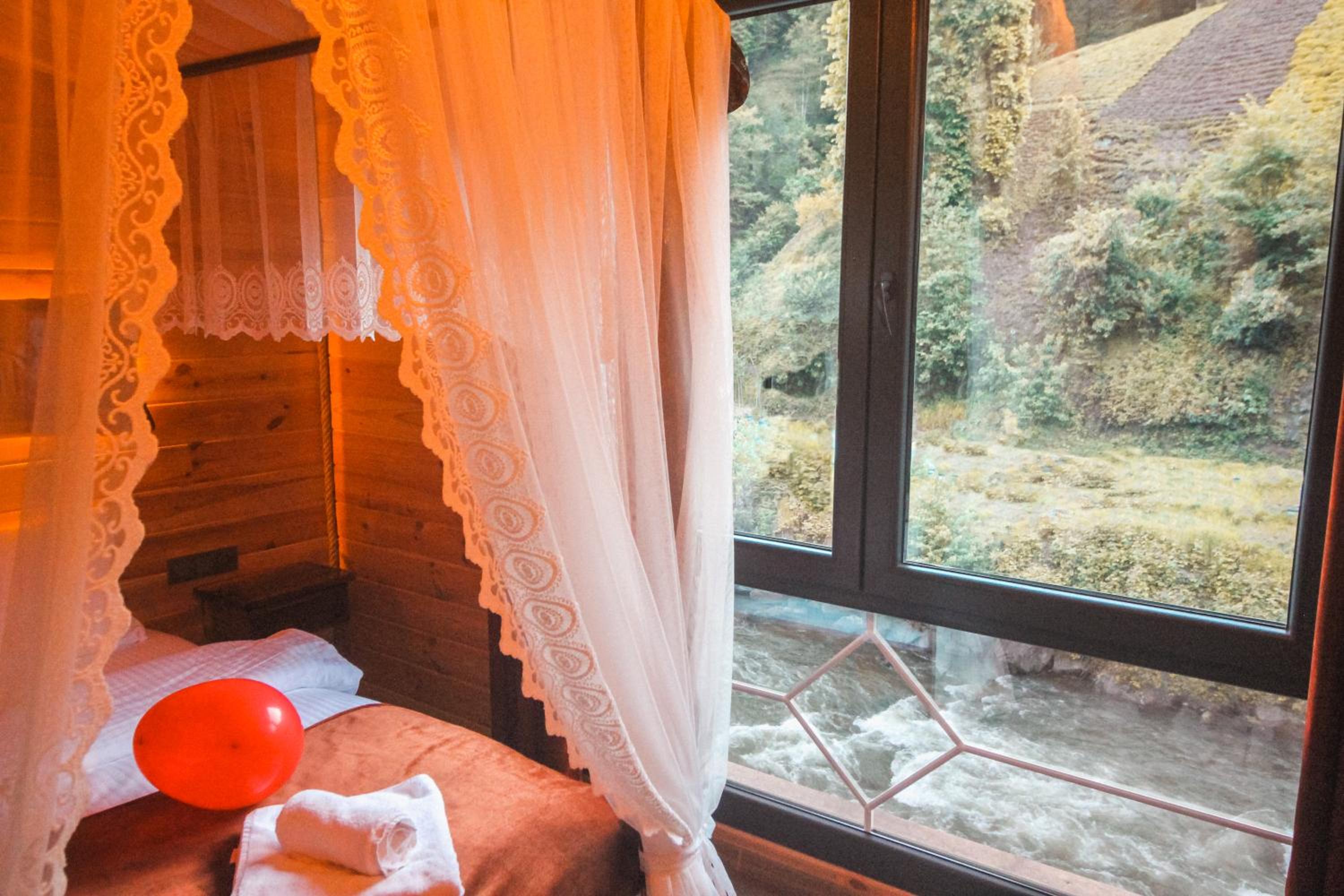 موقع الفندق جدا مميز ف جزء منه يطل ع النهر والاخر على الجبل والطبيعة الخضراء
