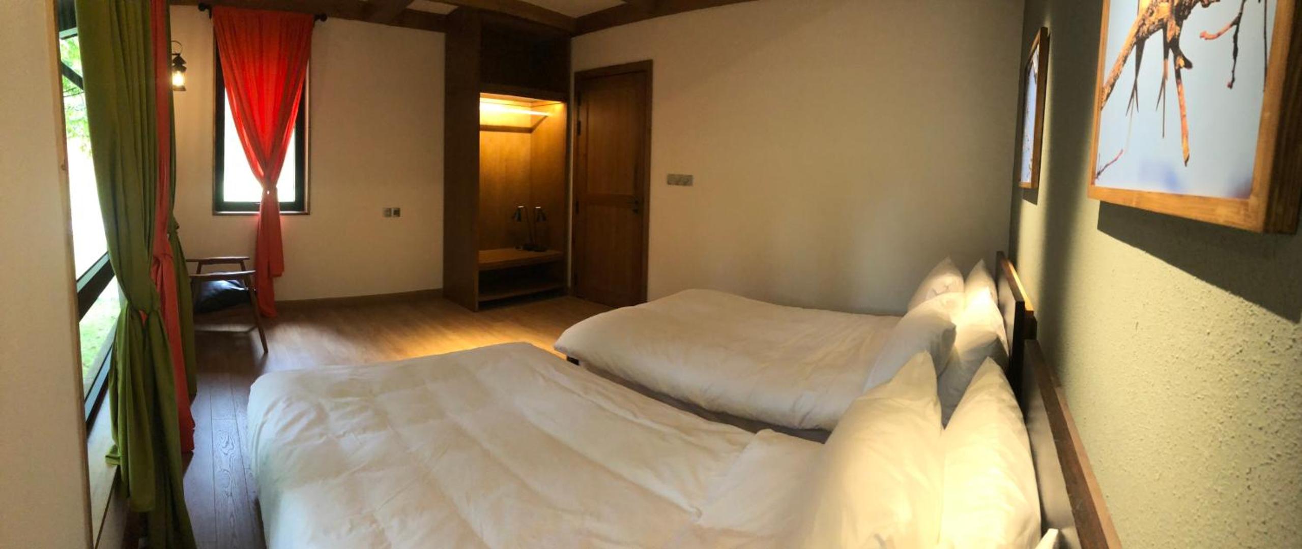 Some rooms offer balconies with mountain views, providing a serene escape. Unwind in our garden, shared lounge, or terrace for a truly relaxing stay.