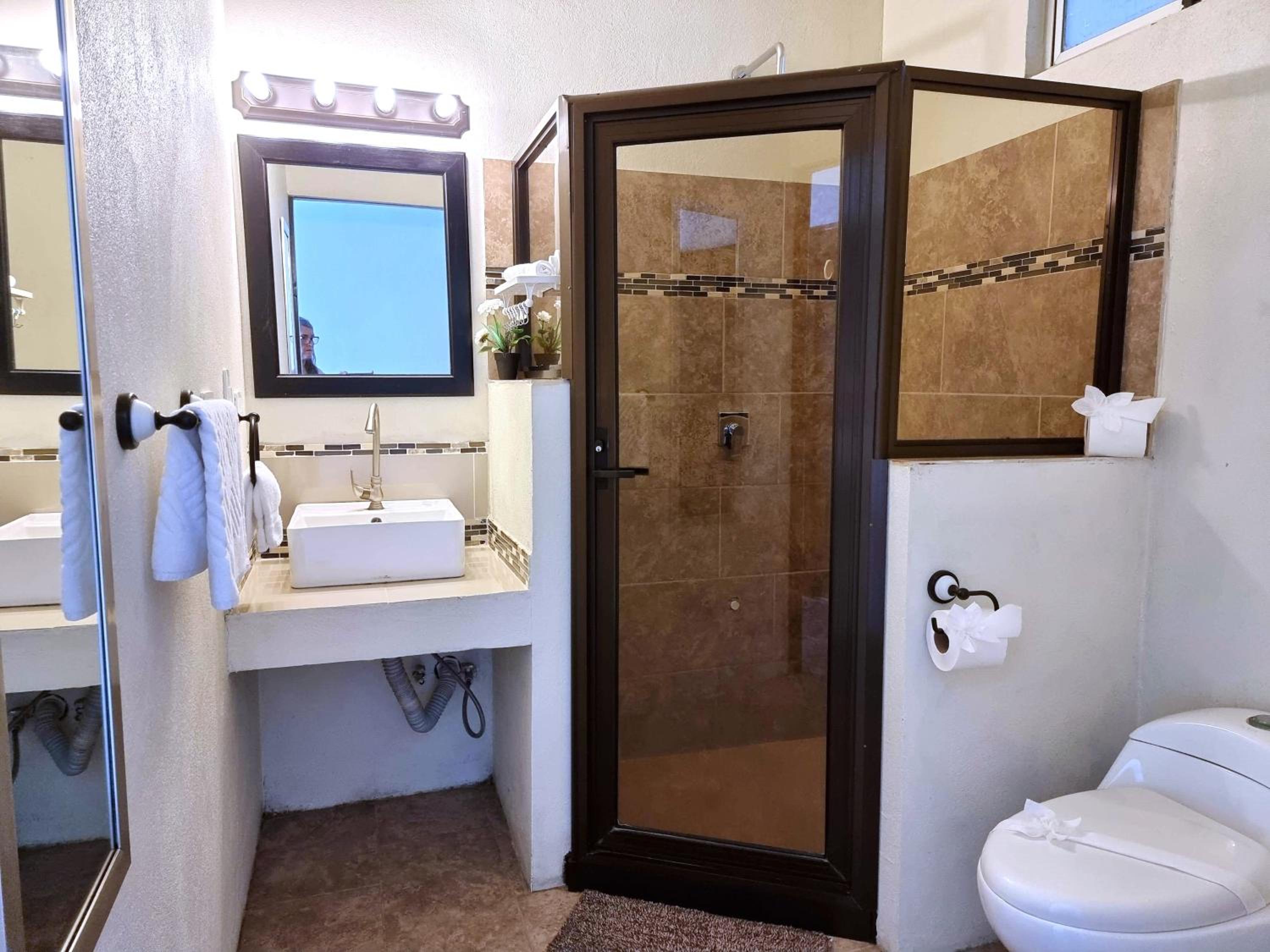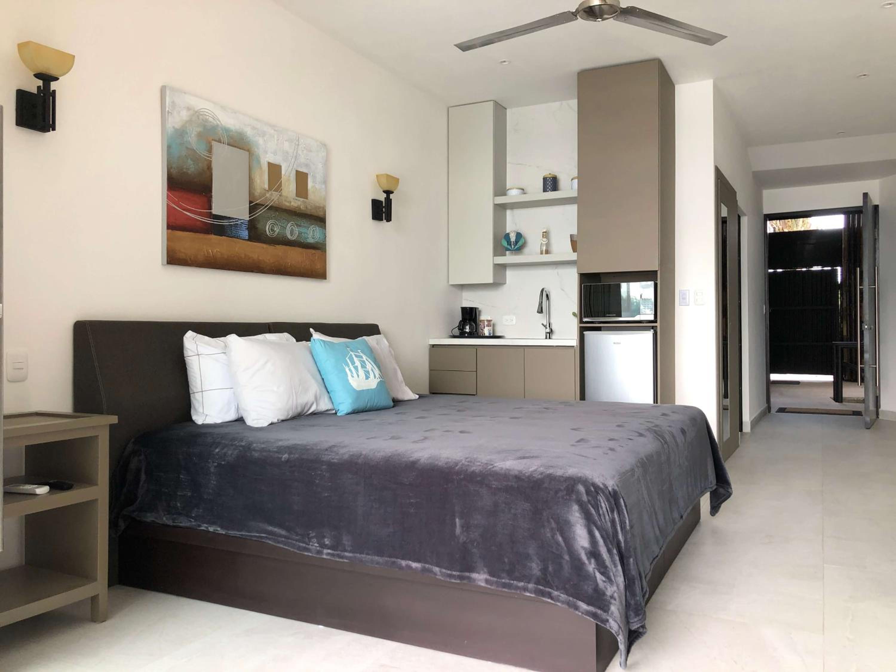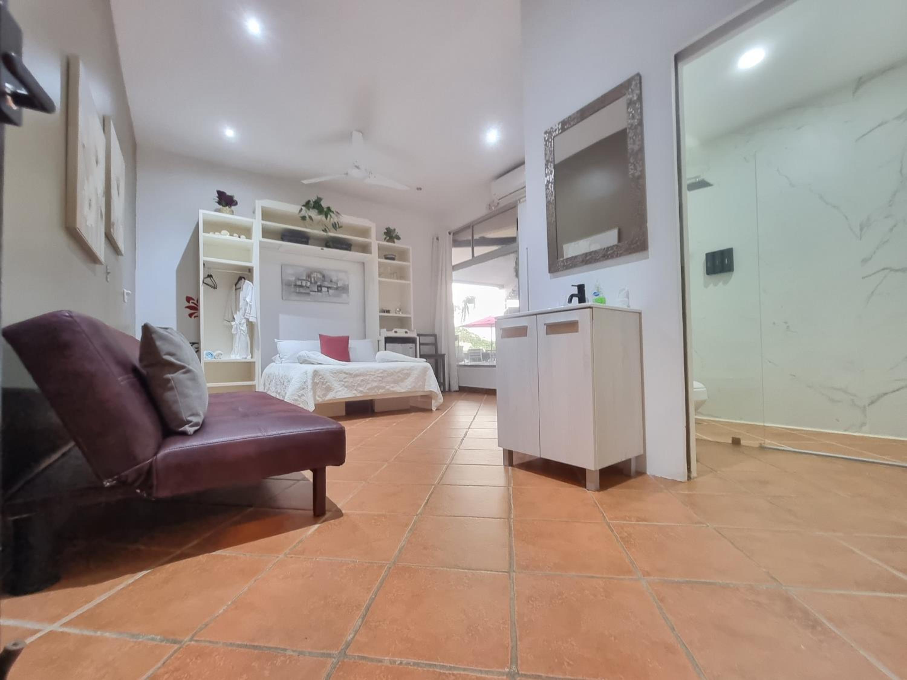 Upon arrival we were greeted with fresh squeezed juice and a snack. Our room was large with ceiling to floor glass doors and windows that allowed for a breathtaking view of the beach. The owners and small number of staff make this place a wonderfully charming place to stay. It’s in a great location and I would absolutely stay here again.
