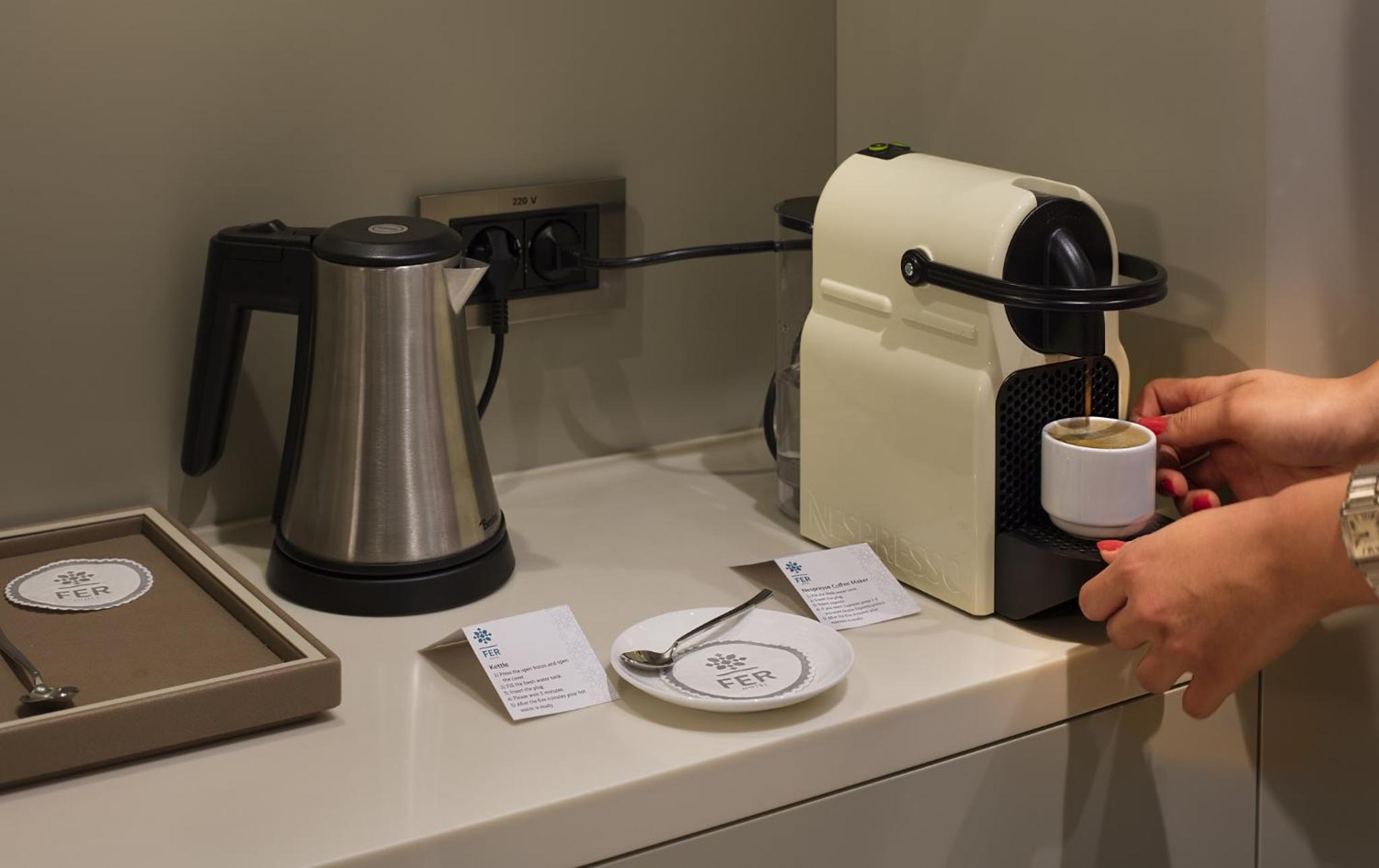 The contemporary rooms and suites at Fer Hotel feature air conditioning, LED TVs, and stylish decor. Guests can enjoy the convenience of a minibar, coffee machine, and work desk in each room, along with a private bathroom stocked with premium toiletries.