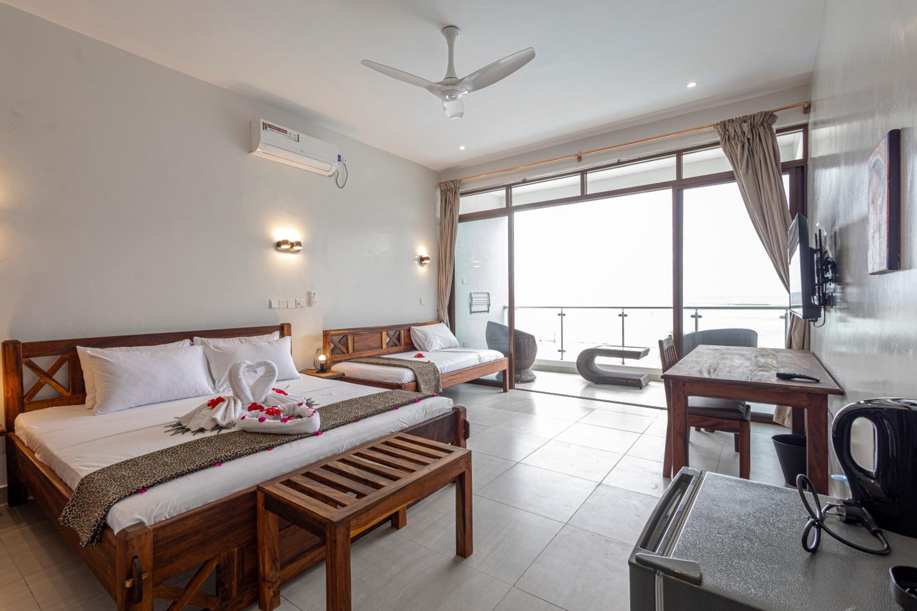 The hotel is modern and new, rooms are big and very clean, beds are comfortable ,A/C and fan were ok. The balcony was nice also. The staff are pleasant but inexperienced.