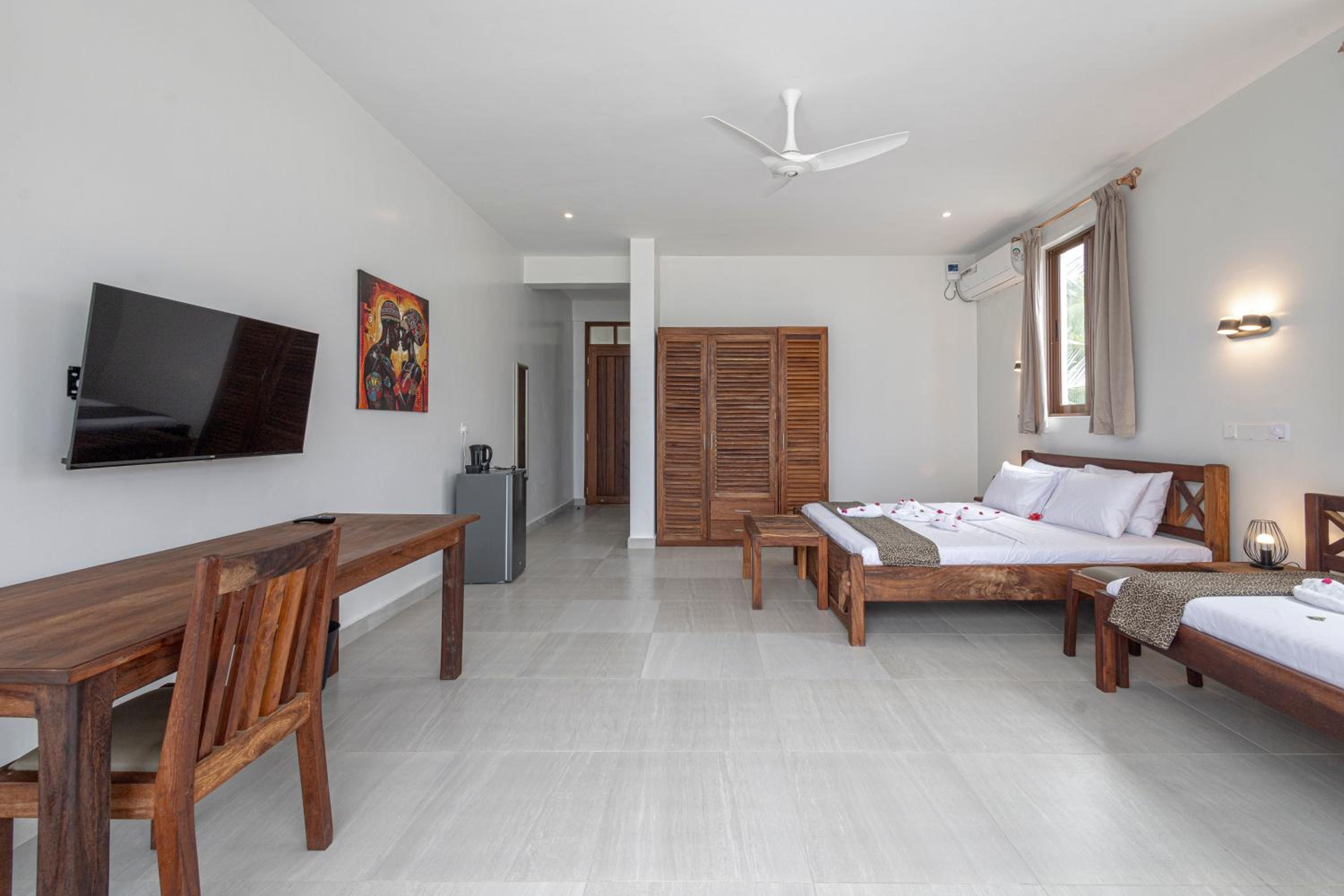 The food portions were small, buffet options minimal, african style of cooking, coffee was terrible although from the machine,power cuts were frequent, shortage of clean towels, beach in front of hotel wasn't clean. It seems like a hotel needs a good manager because everything seems a little chaotic.