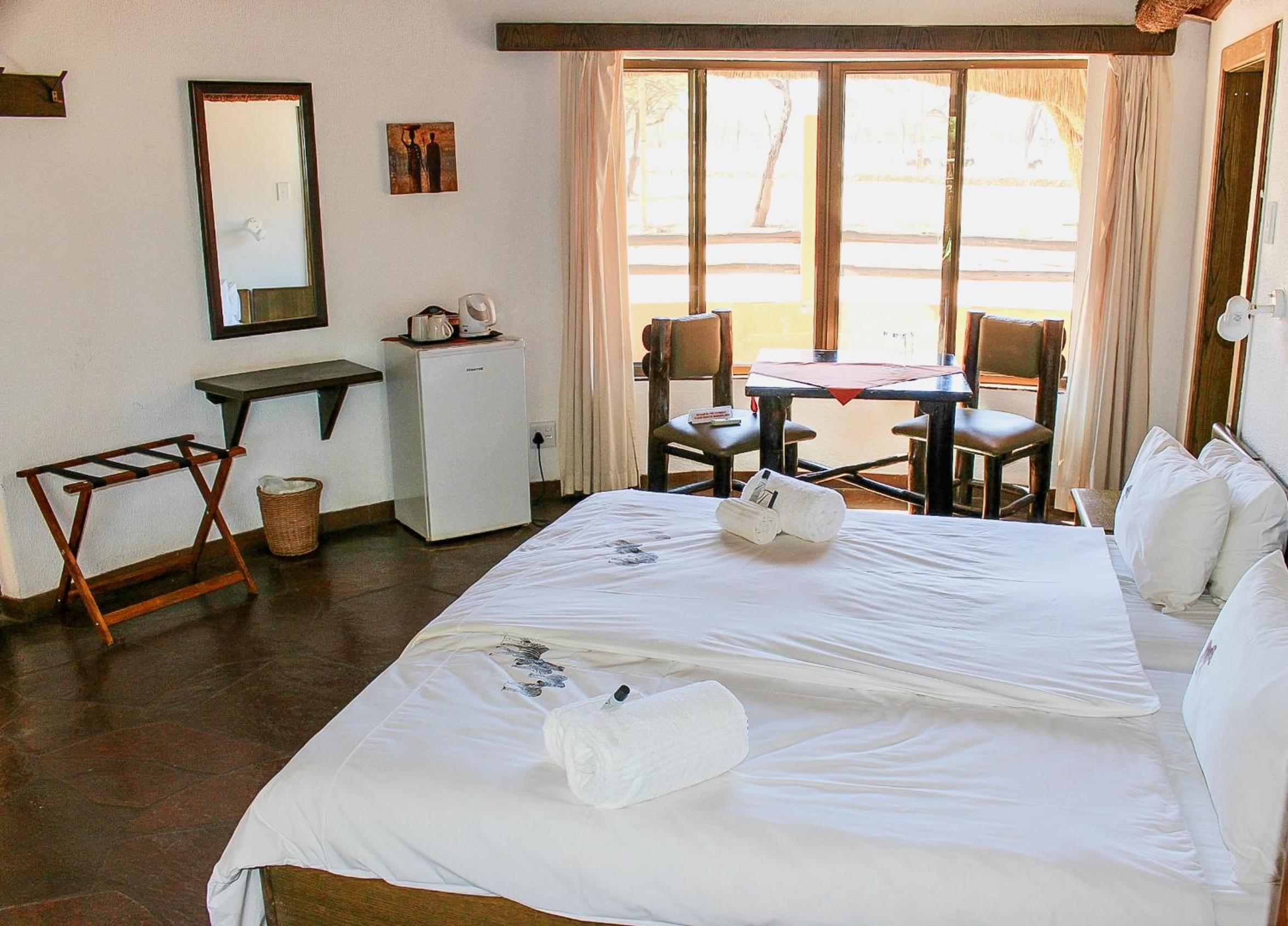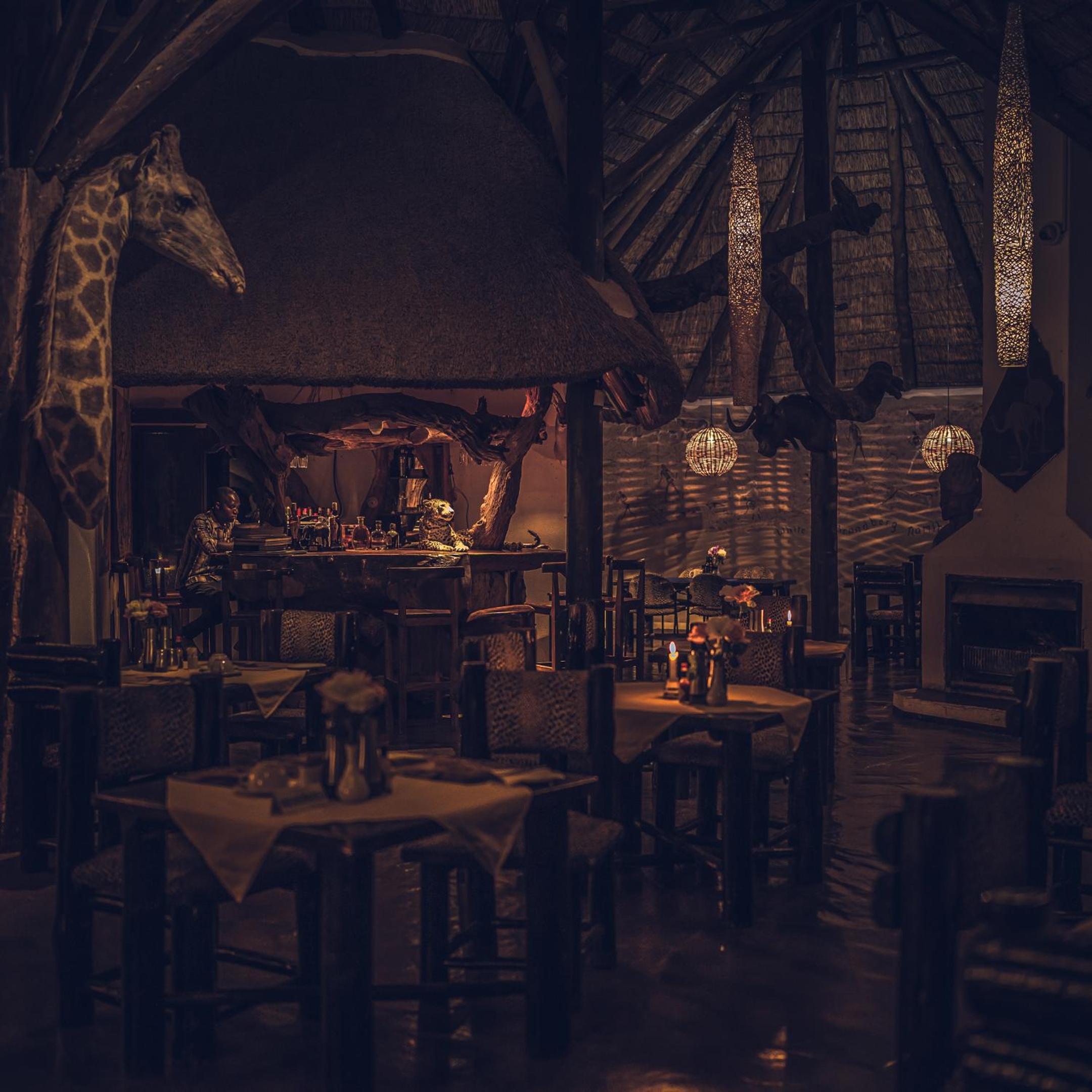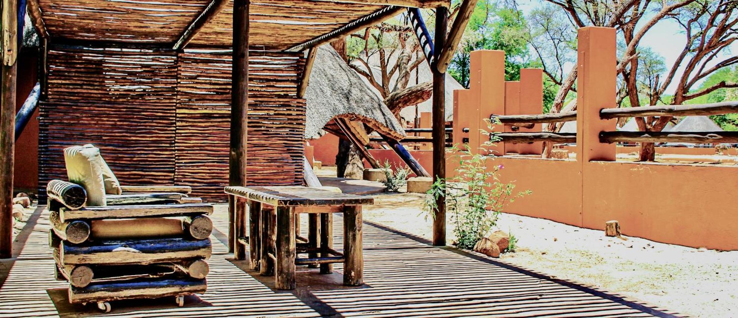 Schöne Chalets, direkt an einem Wasserloch. Sehr gutes Abendessen.