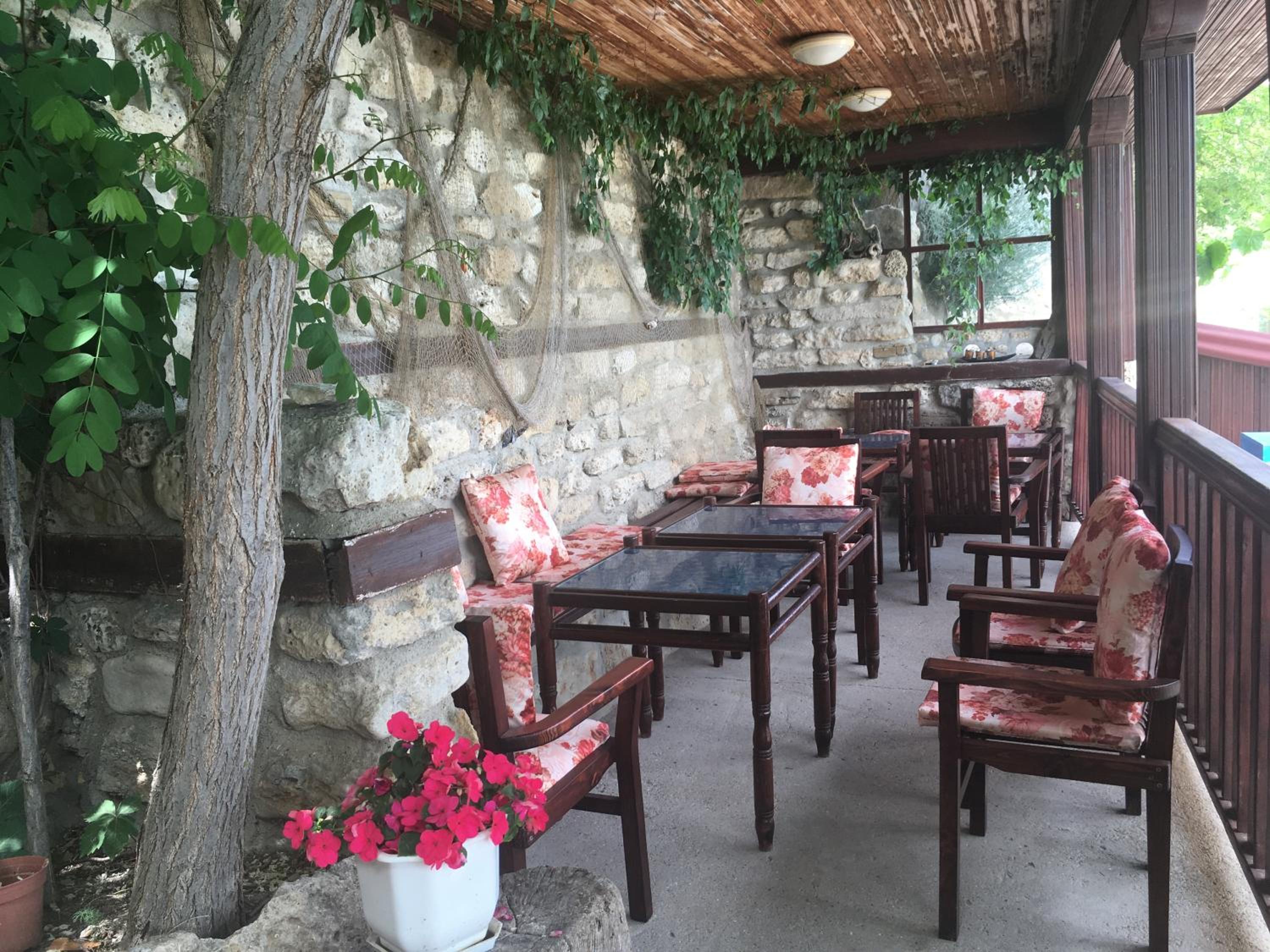 Вид.Шум моря.Очень уютное кафе.Красивые проходы к морю на территории,отделанные камнем и высаженными растениями.Место очень классное.