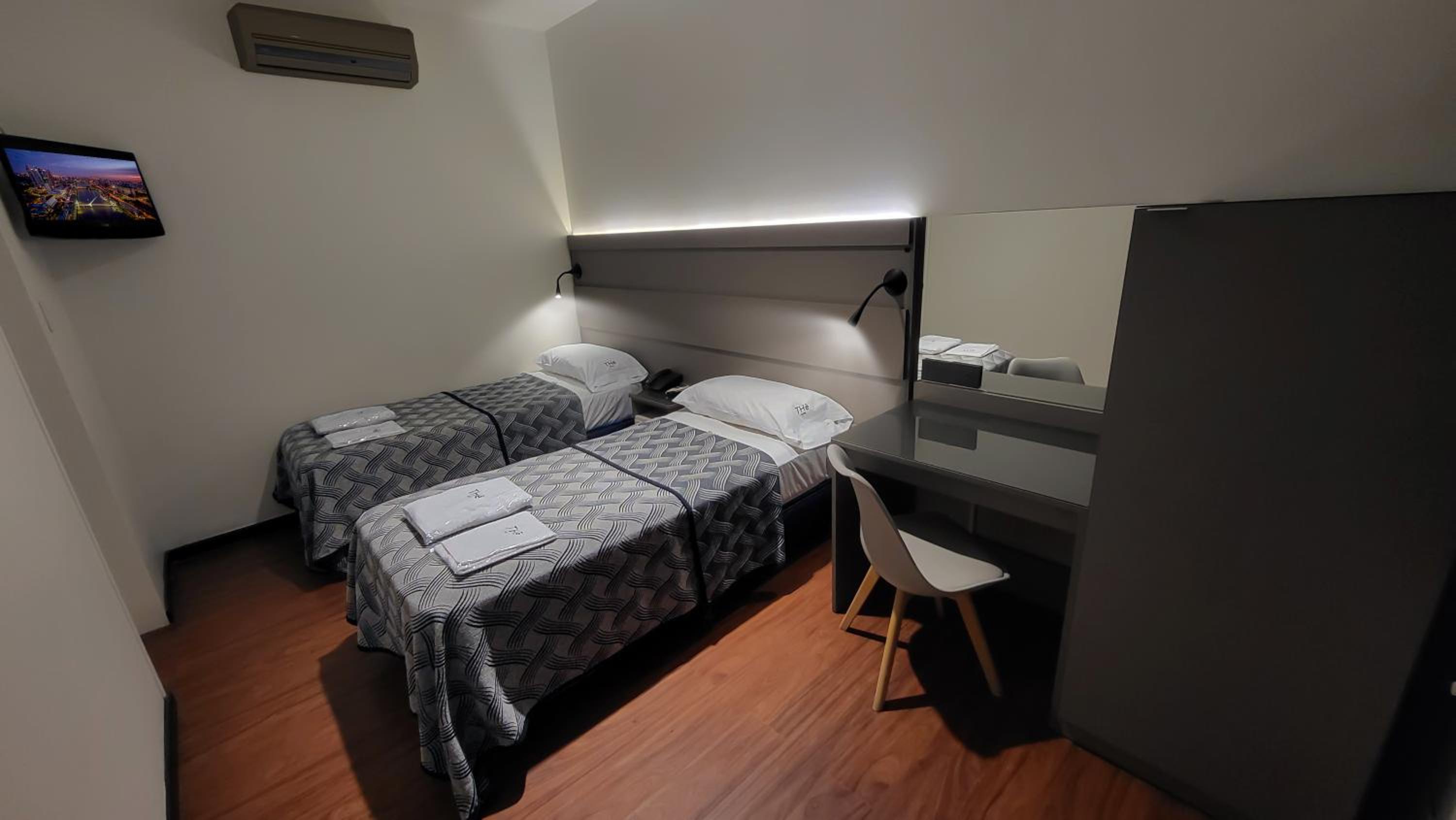 La habitacion era malisima. Solo cama, mesa de luz y un armario de madera aglomerada. Sin lugar para poner las maletas, solo una silla. Sin comodidad.