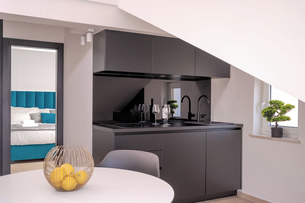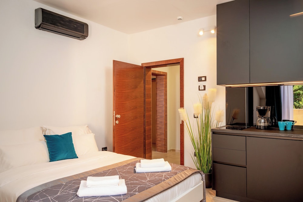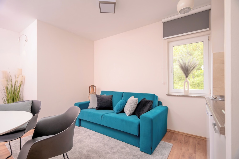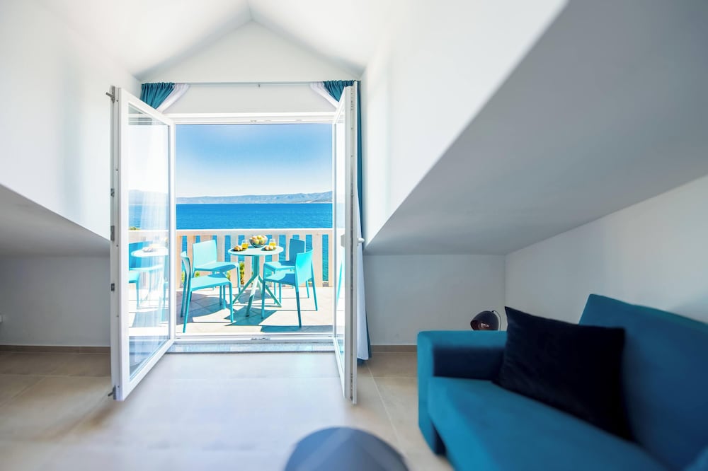 Bra beliggenhet rett ved strandpromenaden i Bol (var en bilvei i mellom). Jeg hadde stort fint rom med stue, kjøkken og soverom, og en liten balkong. Dette var noppusset og fint, men bad/WC var ikke nyoppusset.