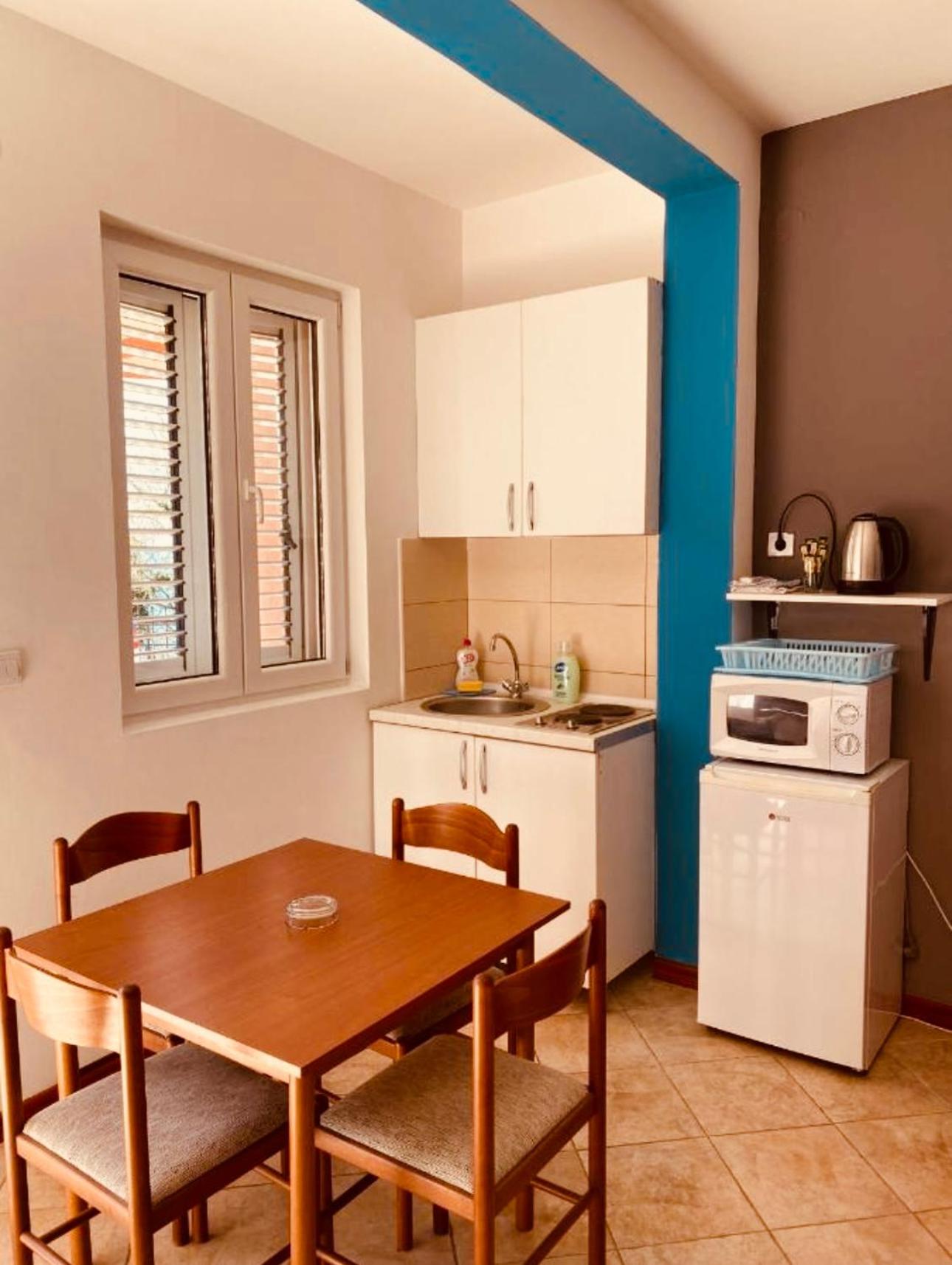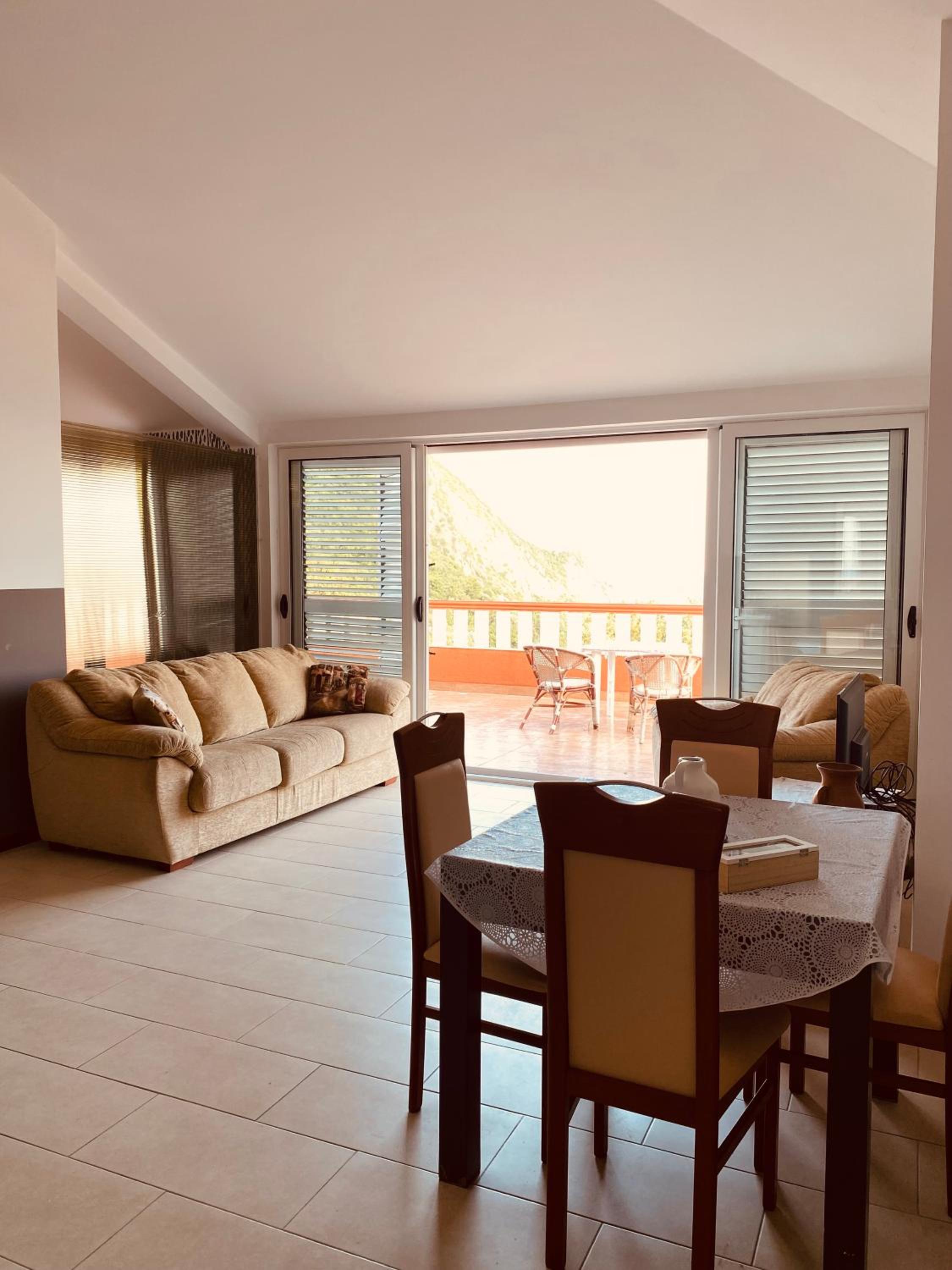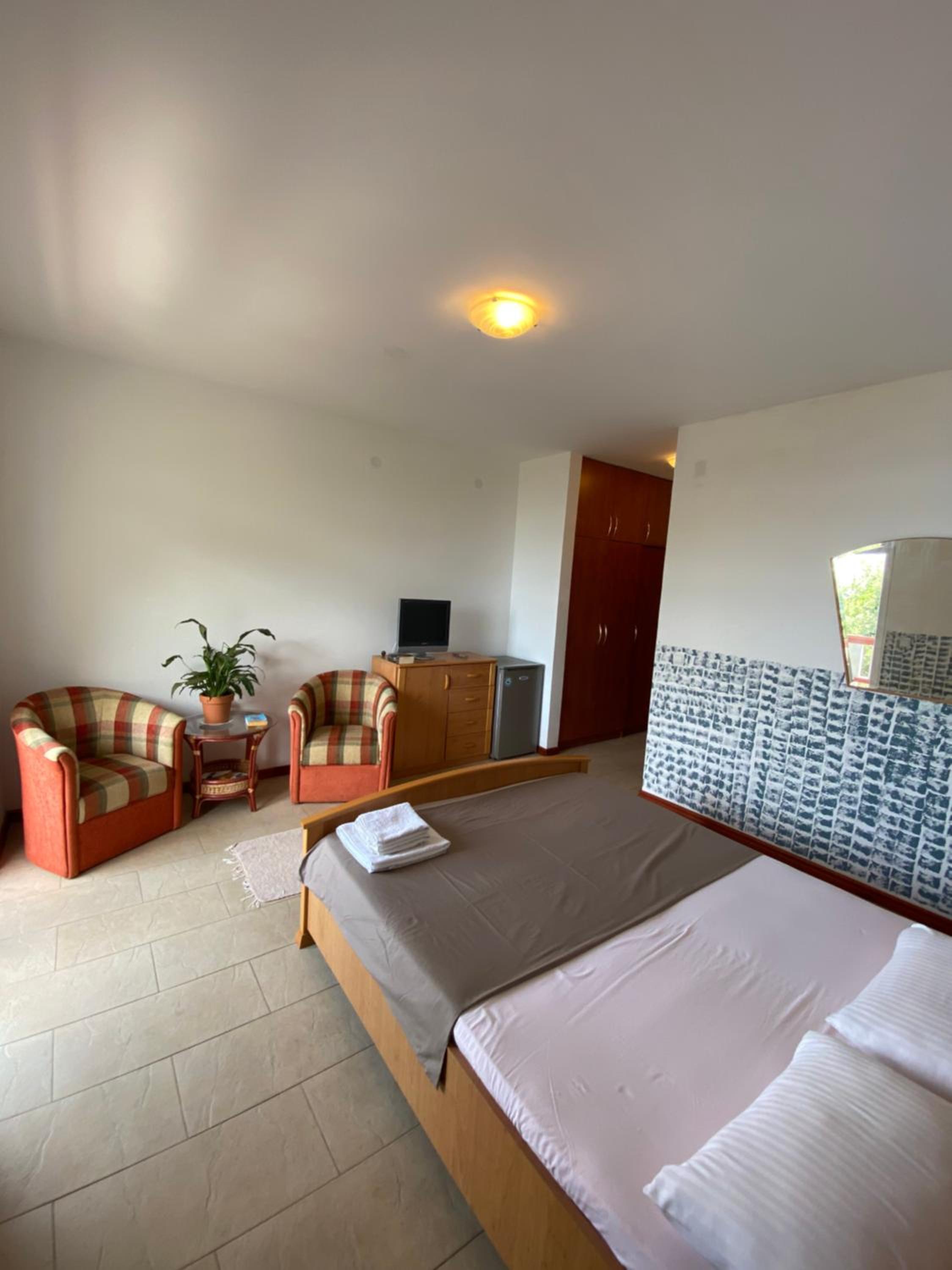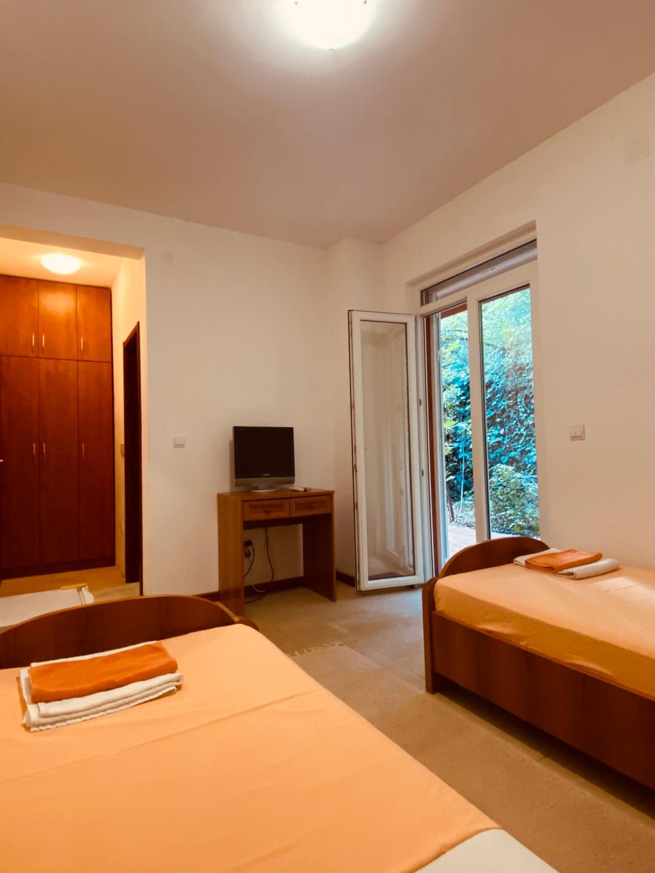 Grosses Zimmer mit Klima. Alles vorhanden. Simpel aber für den Preis gut. Gutes Frühstück. Schöne Aussicht auf das Meer. Grosse Gemeinschaftsküche falls jemand kochen will. Gutes Restaurant an der Hauptstraße Richtung Budva zu Fuß 300 Meter die Straße lang