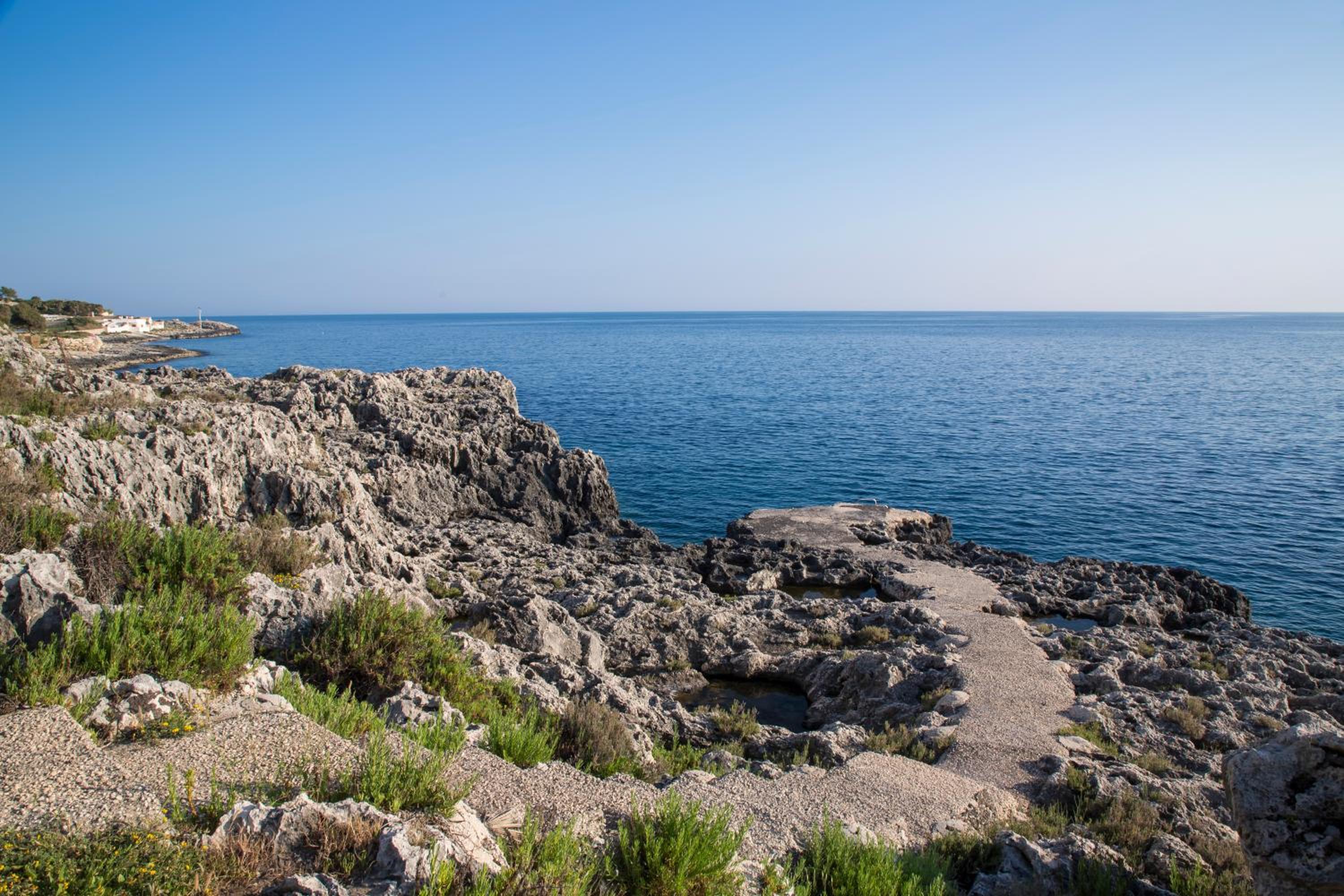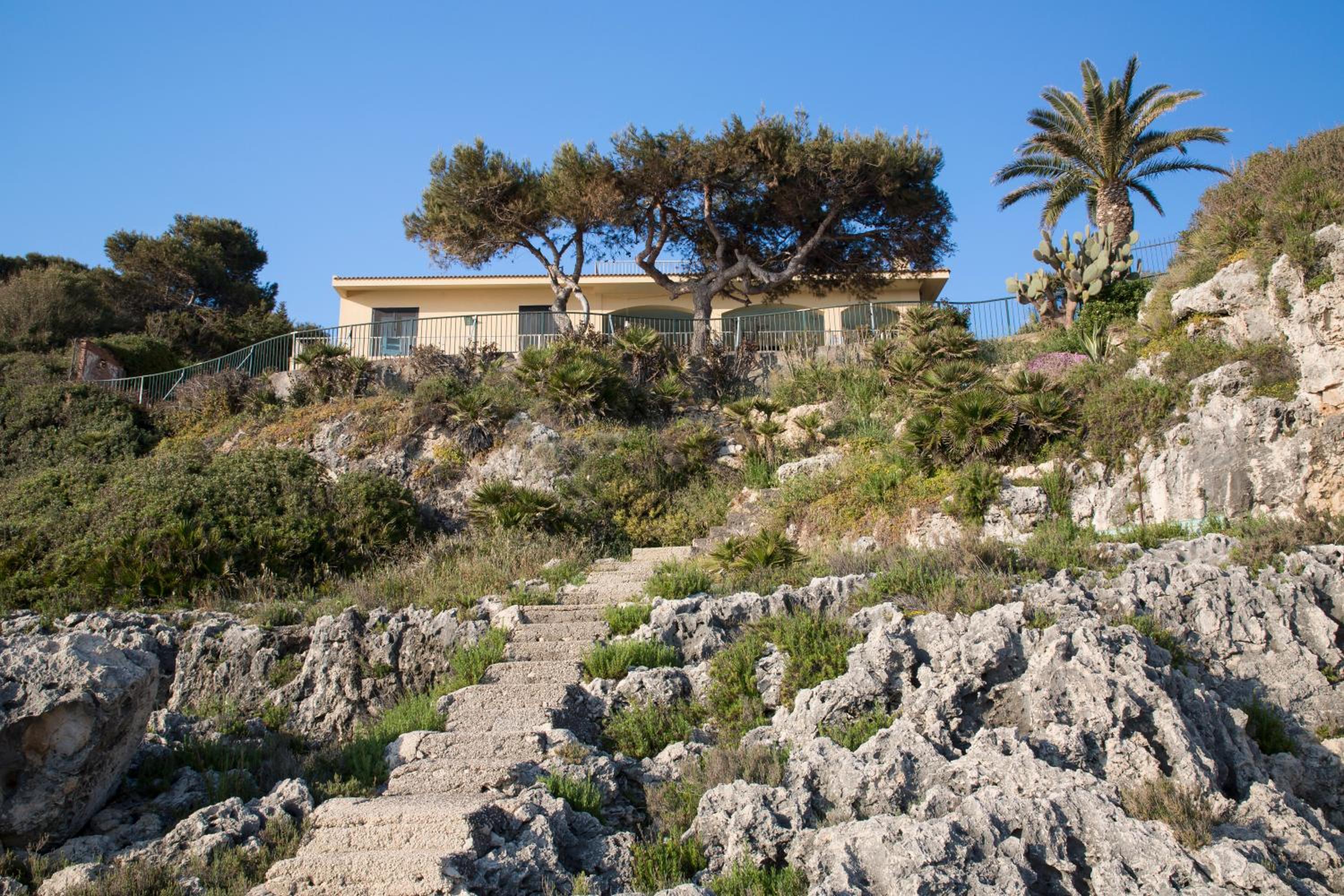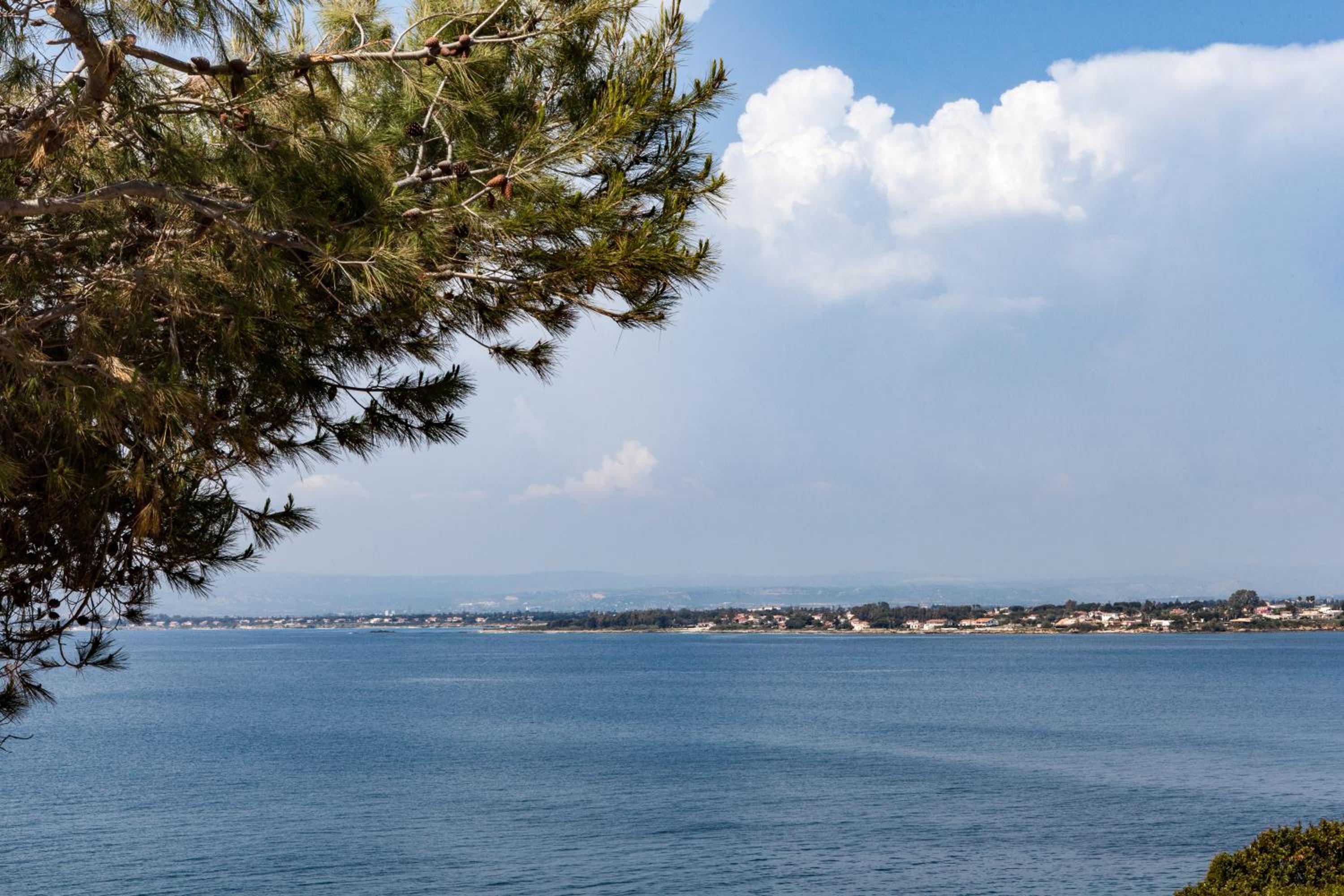 3. liegt das Haus in einer Naturschutzzone direkt am Golf von Syrakus im Ionischen Meer. Das Gebiet, welches sich über 14 Kilometer Küste erstreckt, ist für seine steilen Felsküsten, das kristallklare Wasser und die reiche Unterwasserwelt berühmt. Man hat also direkten und privaten Zugang zum Meer. Der Einstieg führt allerdings über steiniges Gelände, weshalb Wasserschuhe empfehlenswert sind.