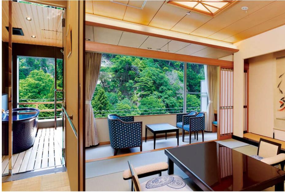 Choose from traditional Japanese rooms with futon bedding or classically furnished rooms with Western beds, each equipped with a refrigerator and a private bathroom featuring a bathtub. Experience comfort and authenticity during your stay.