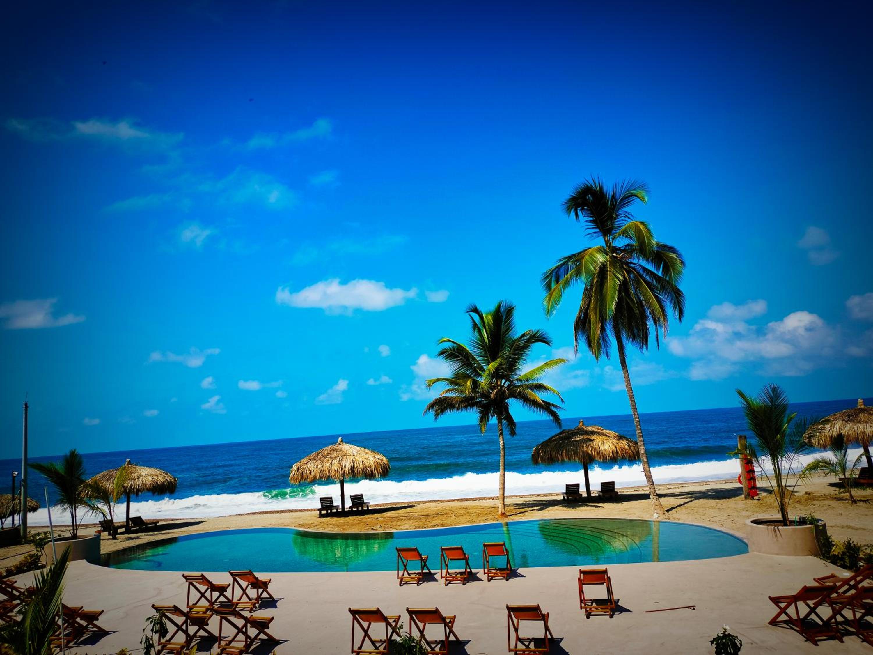 Der Pool ist richtig schön, wie das Restaurant direkt am Strand.