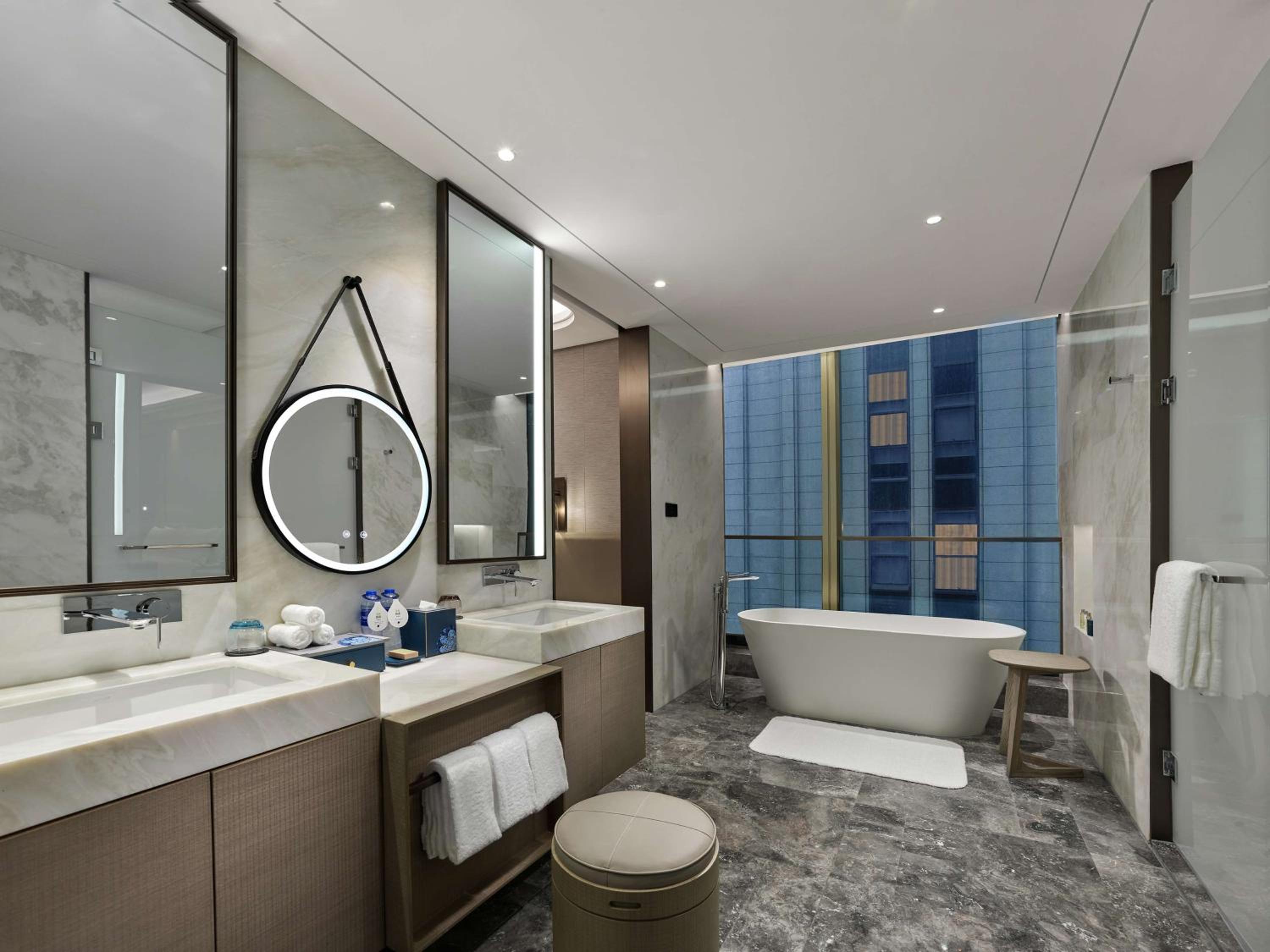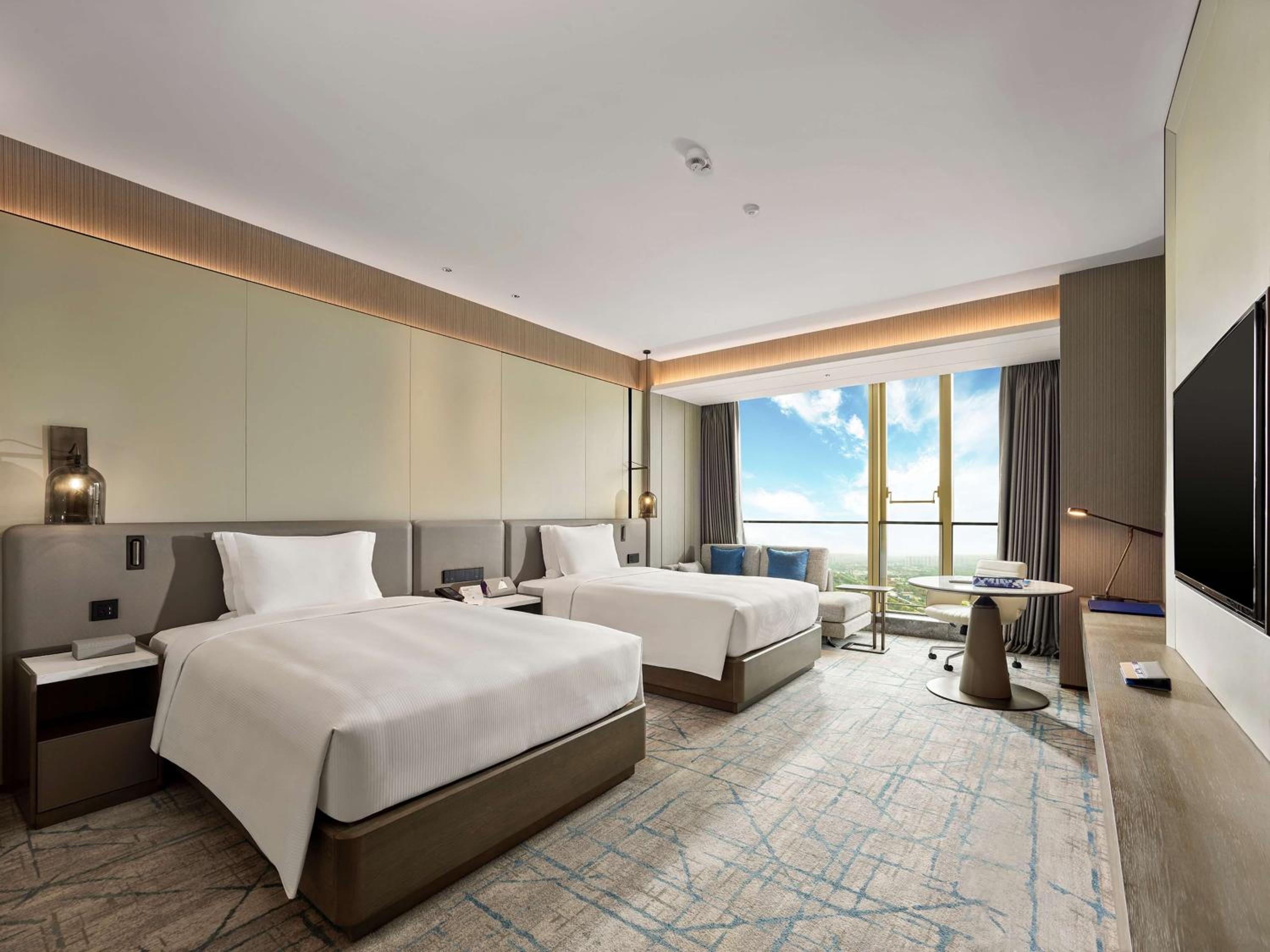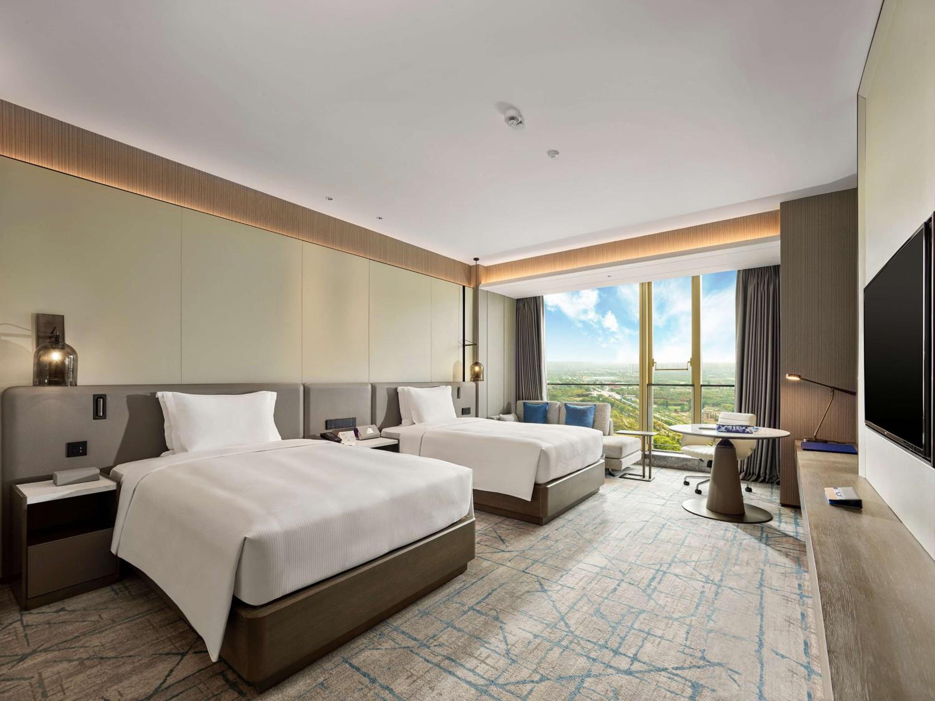 Luxurious Accommodation: Experience comfort and style at DoubleTree by Hilton Qidong with air-conditioned rooms featuring modern amenities like a minibar, safety deposit box, and a private bathroom.