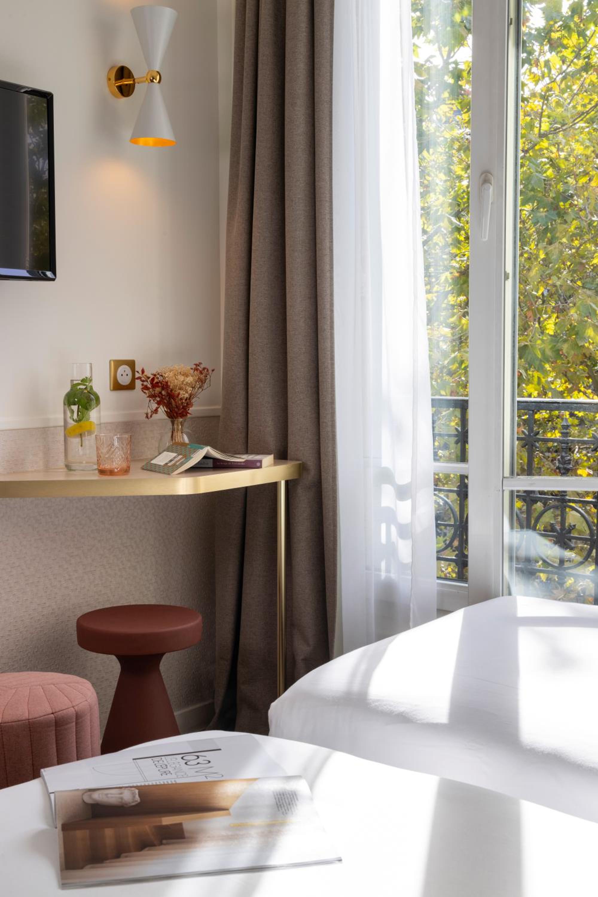 Experience the charm of our design hotel nestled in a quiet residential district, a short stroll away from the iconic Eiffel Tower. Each room is a vibrant canvas adorned with captivating photos of Paris, offering a unique and stylish stay.