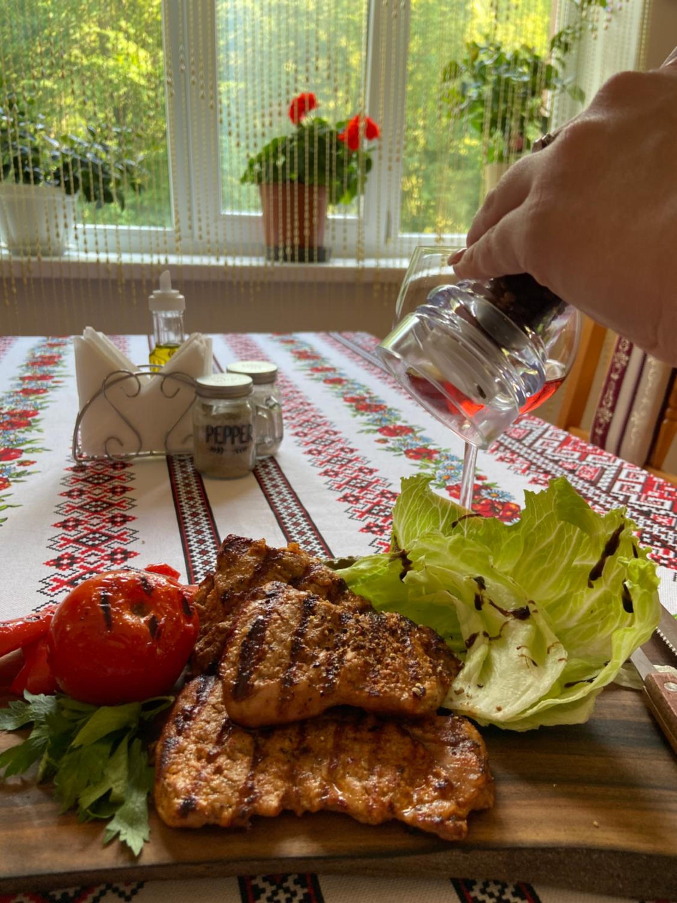 Не зважаючи на це пані Ольга нас поселила в підготовлений красивий номер і навіть покормила мене з дитиною гарячою вечерею, смачнім борщиком і голубцями, не зважаючи на пізню годину. Ми зовсім не очікували і не сподівалися на гарячу вечерю. Після складної дороги це було дуже доречно і приємно.