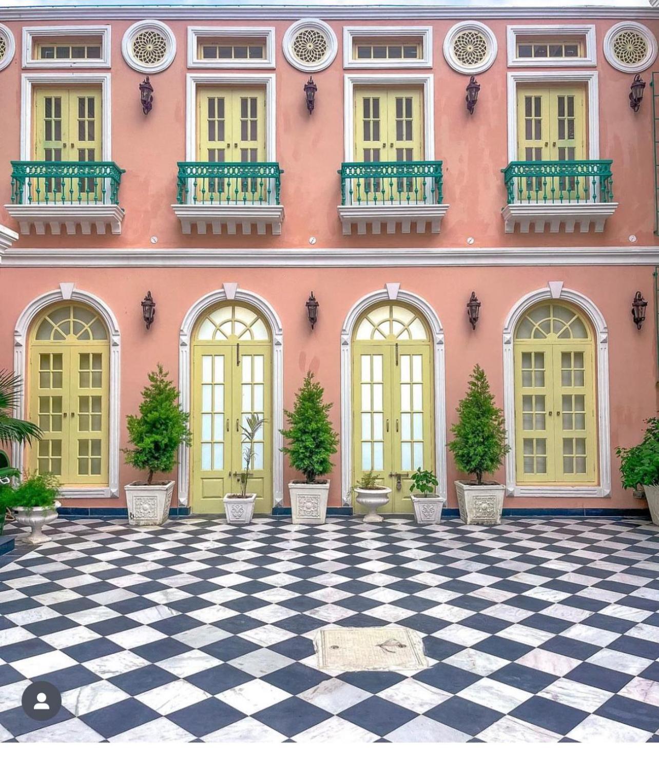 The public areas are adorned with plants and intriguing antiquities.