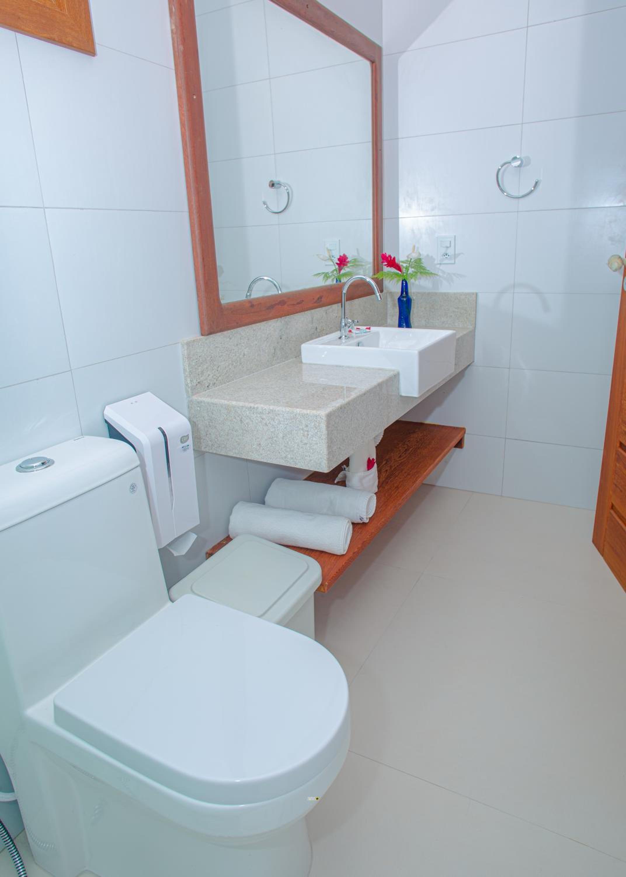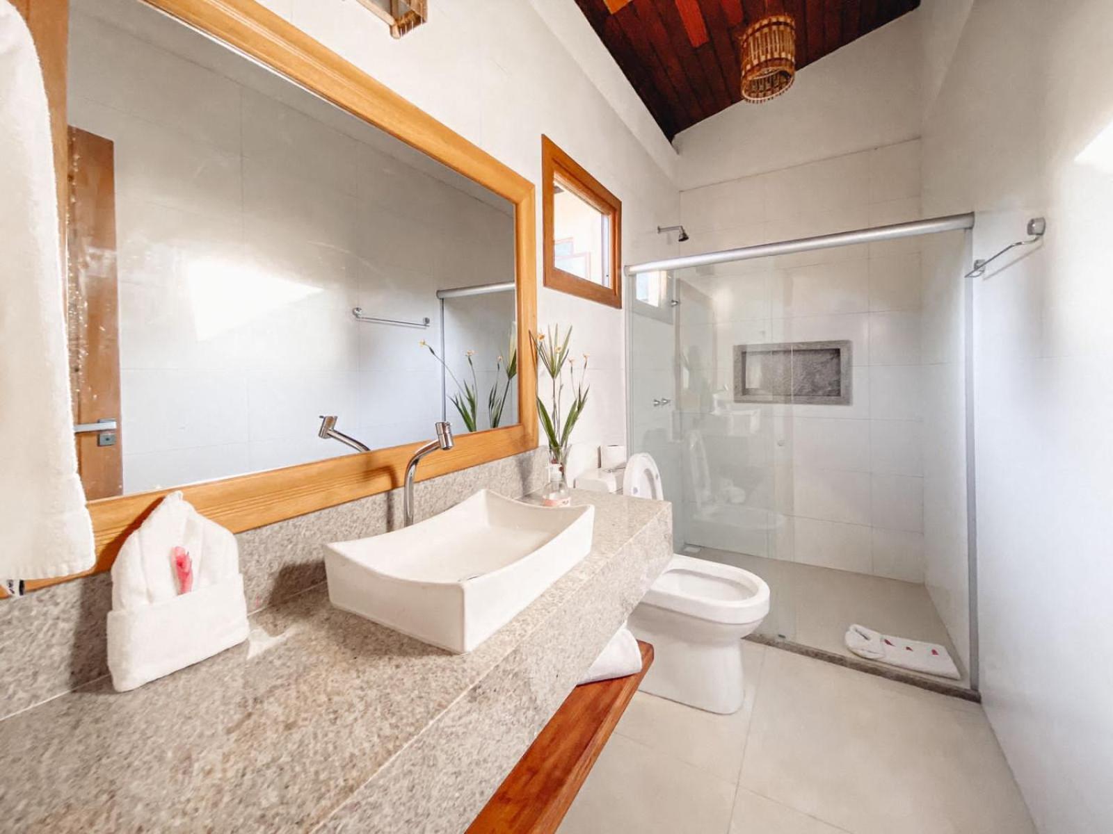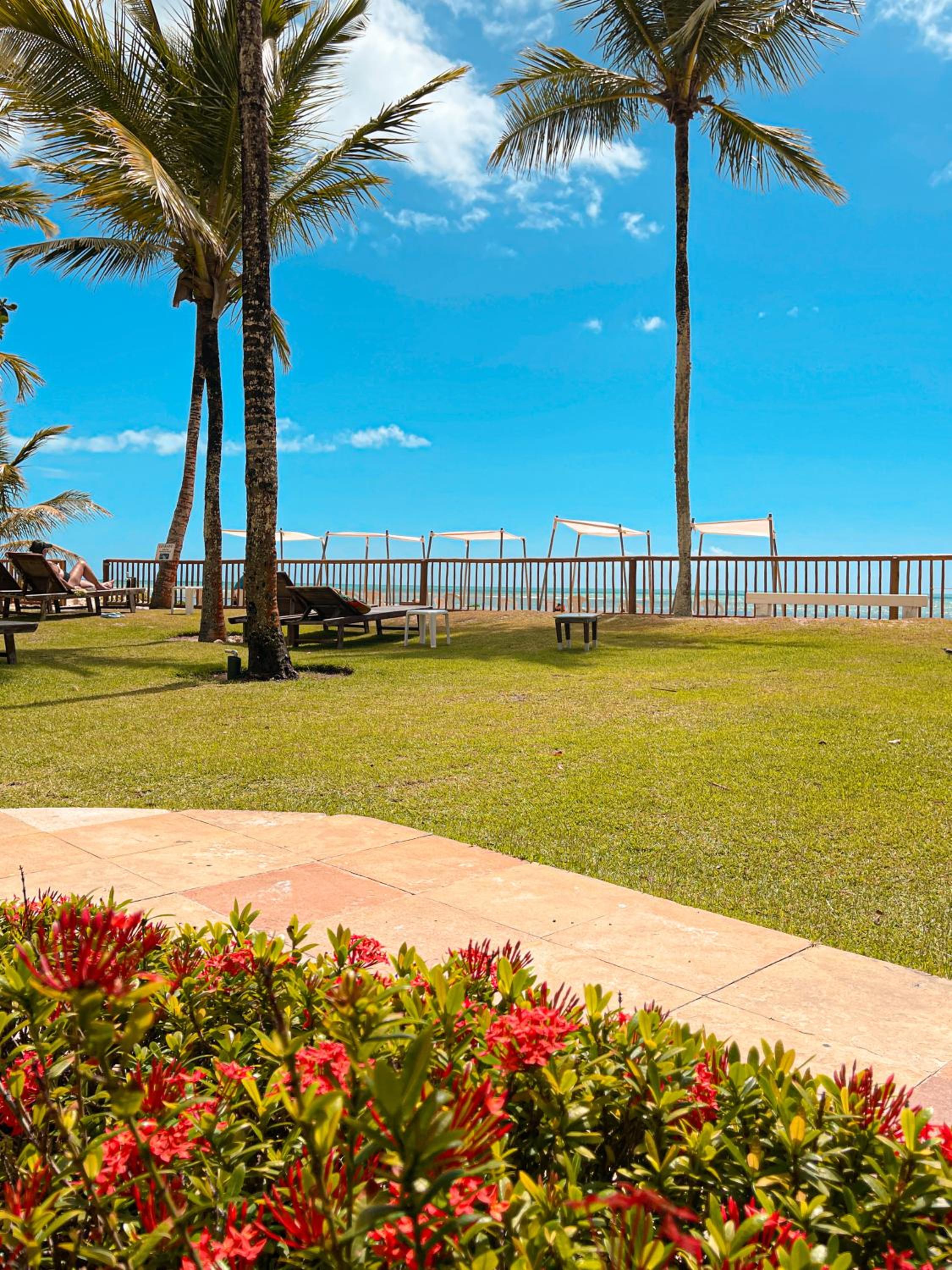 Gostamos de tudo....a localização, estrutura, quarto, banheiro, chuveiro, café da manhã (tapiocas feitas na hora, bolo sem lactose e glúten foi um diferencial), piscinas, atendimento na praia, almoço. Chegamos antes do horário do check in e eles permitiram o uso da estrutura do hotel....assim que liberaram o quarto nos mandaram mensagem informando.