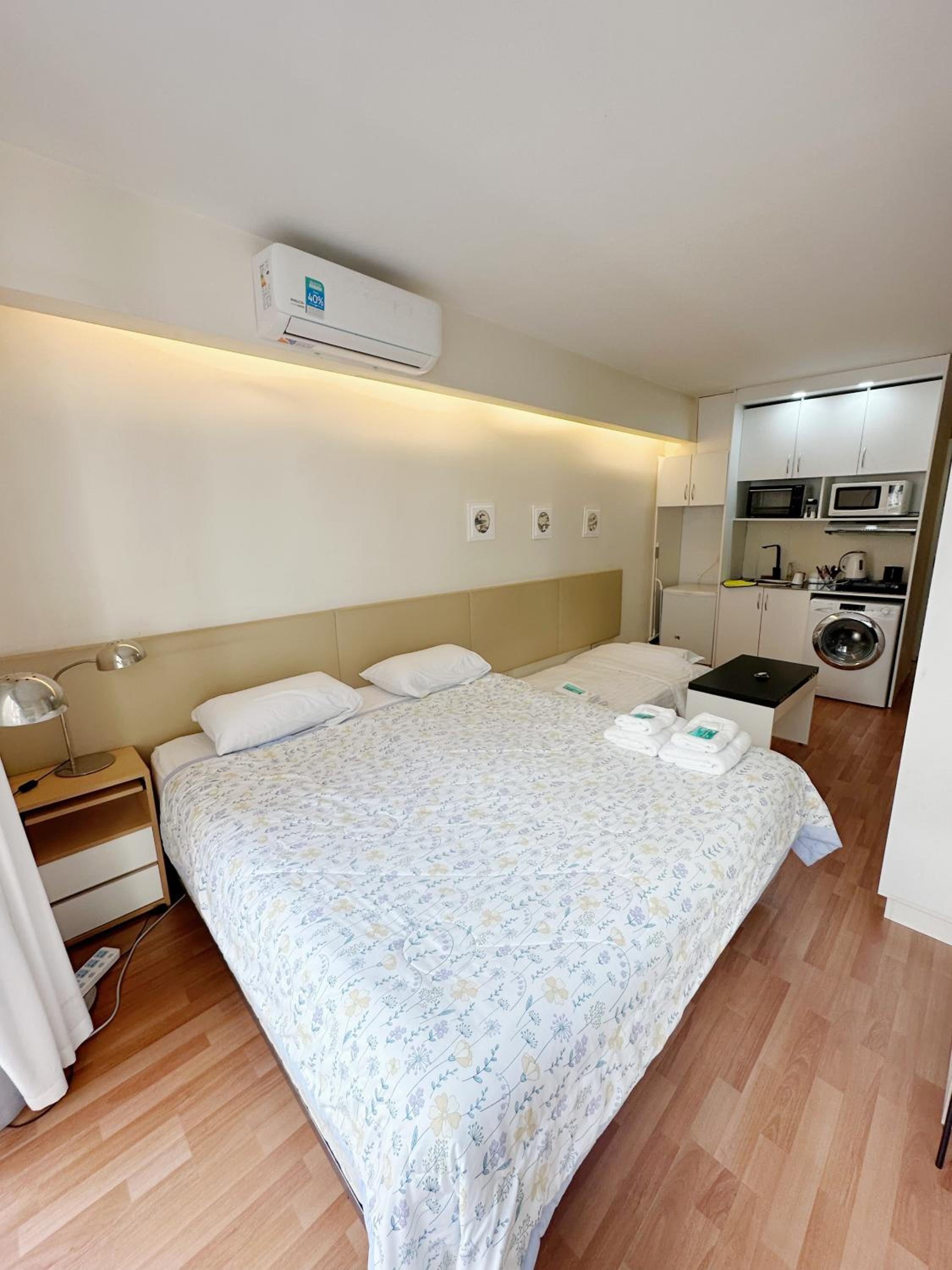 La cama muy cómoda, el espacio super práctico, la cocina tenía de todo horno, micro, anafe, pava.. heladera. Super amable quien nos atendió, ubicación excelente. Todo un 10.