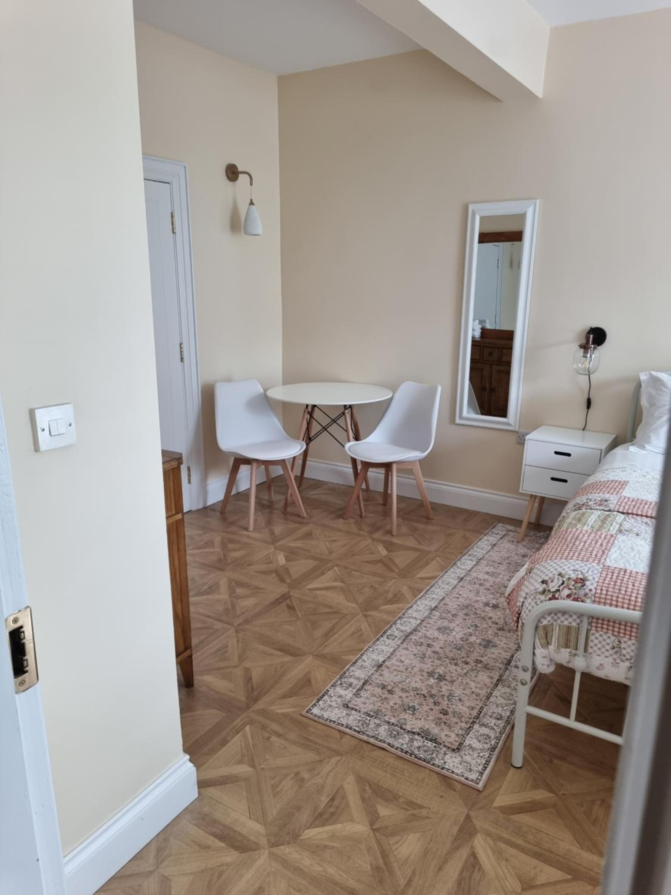 No kettle in room. No TV anywhere. Kitchen in a windowless basement on a different floor from our room. Ineffective soundproofing between floors. Four flats shared a front door key in a key box but am not convinced the front door was locked on every occasion in a less than salubrious area. The distance may be accurate to the city centre but there is a steep hill in between