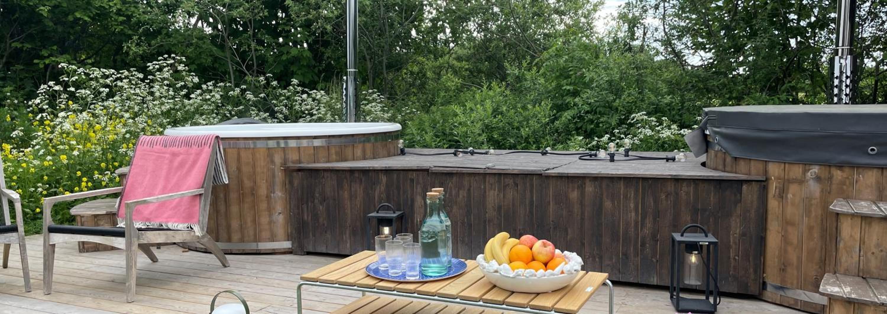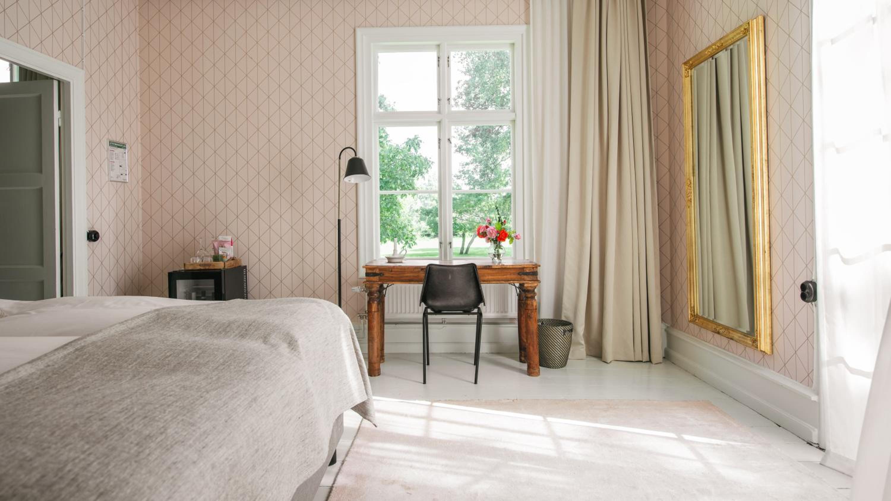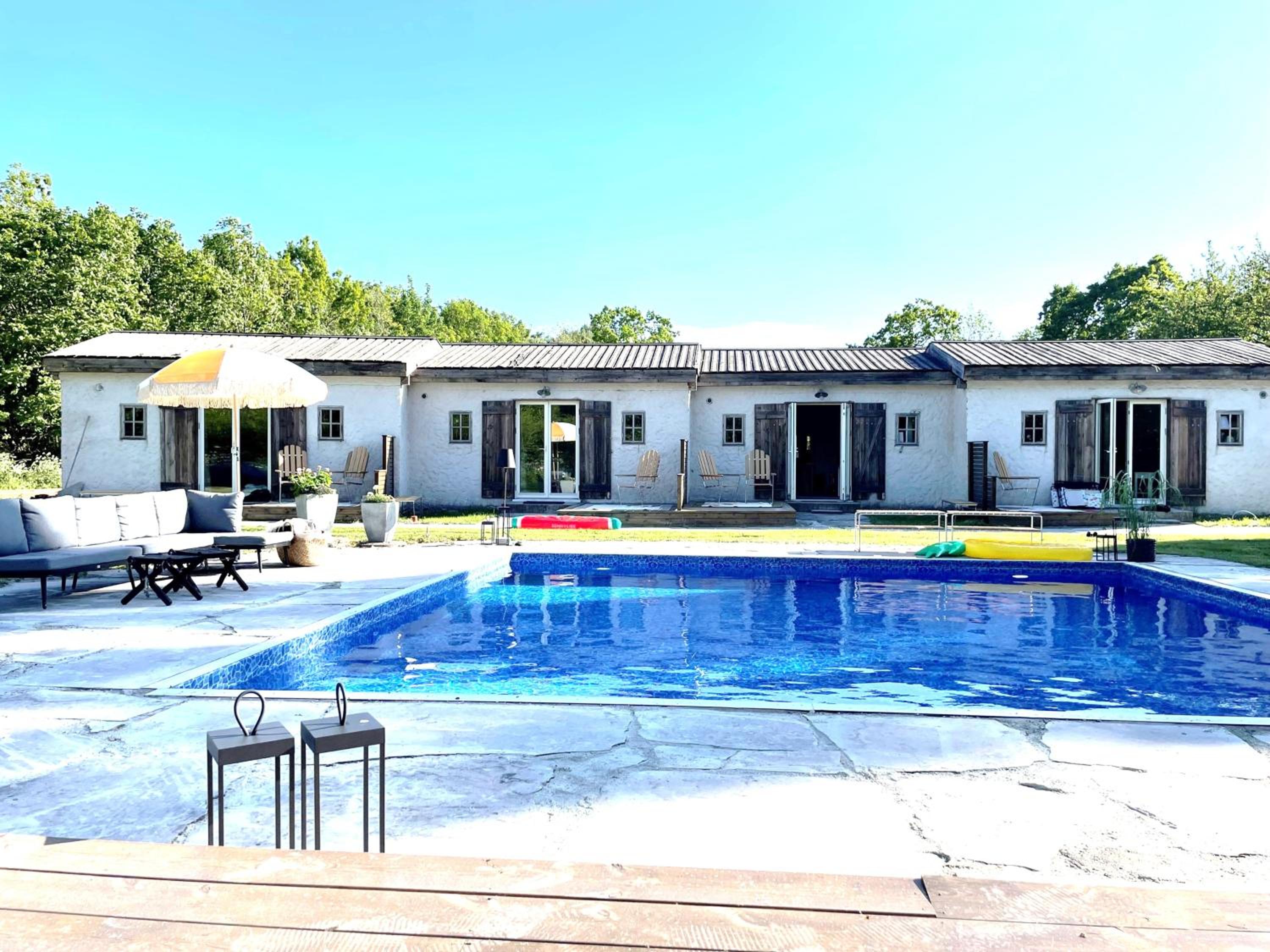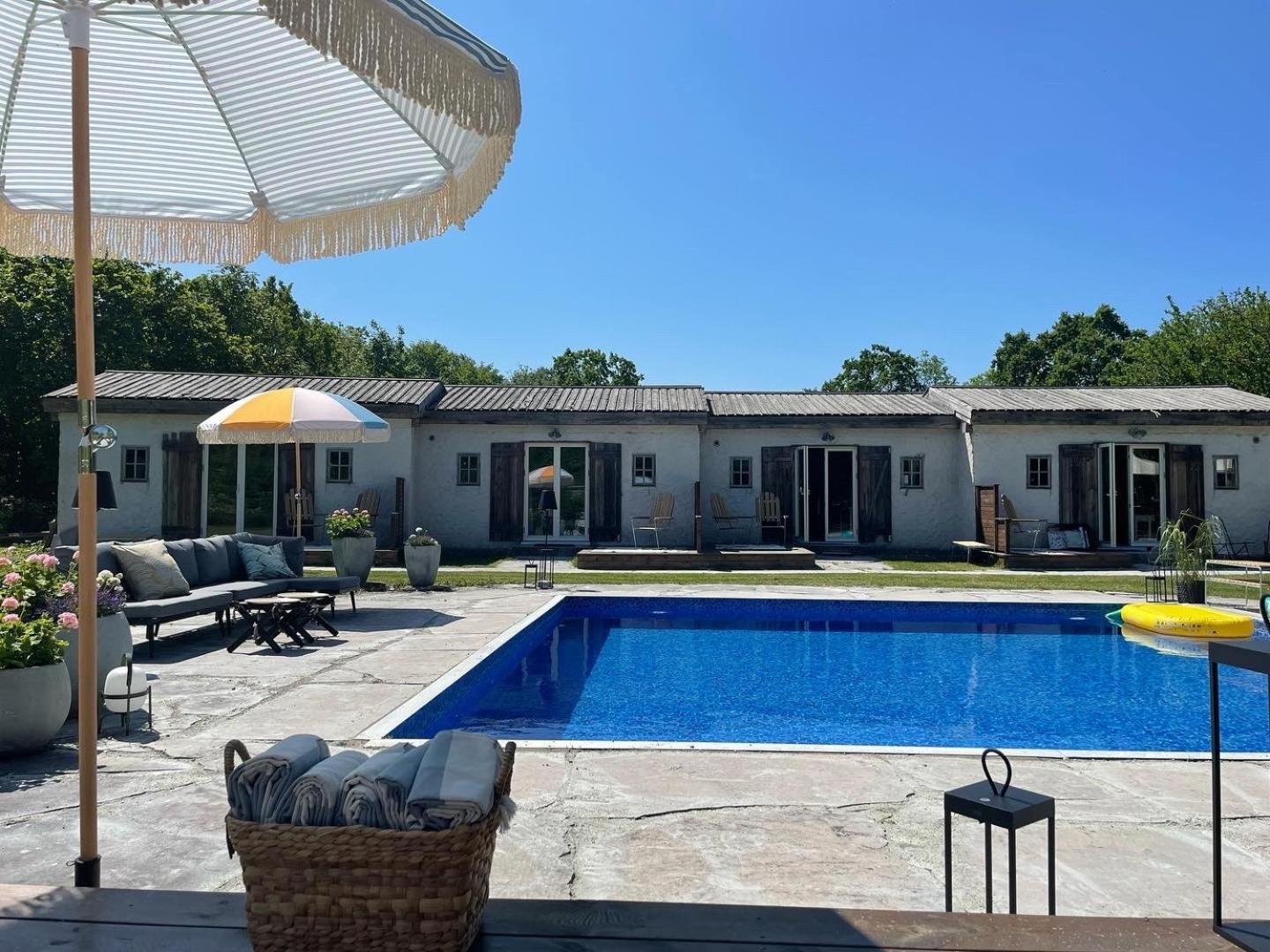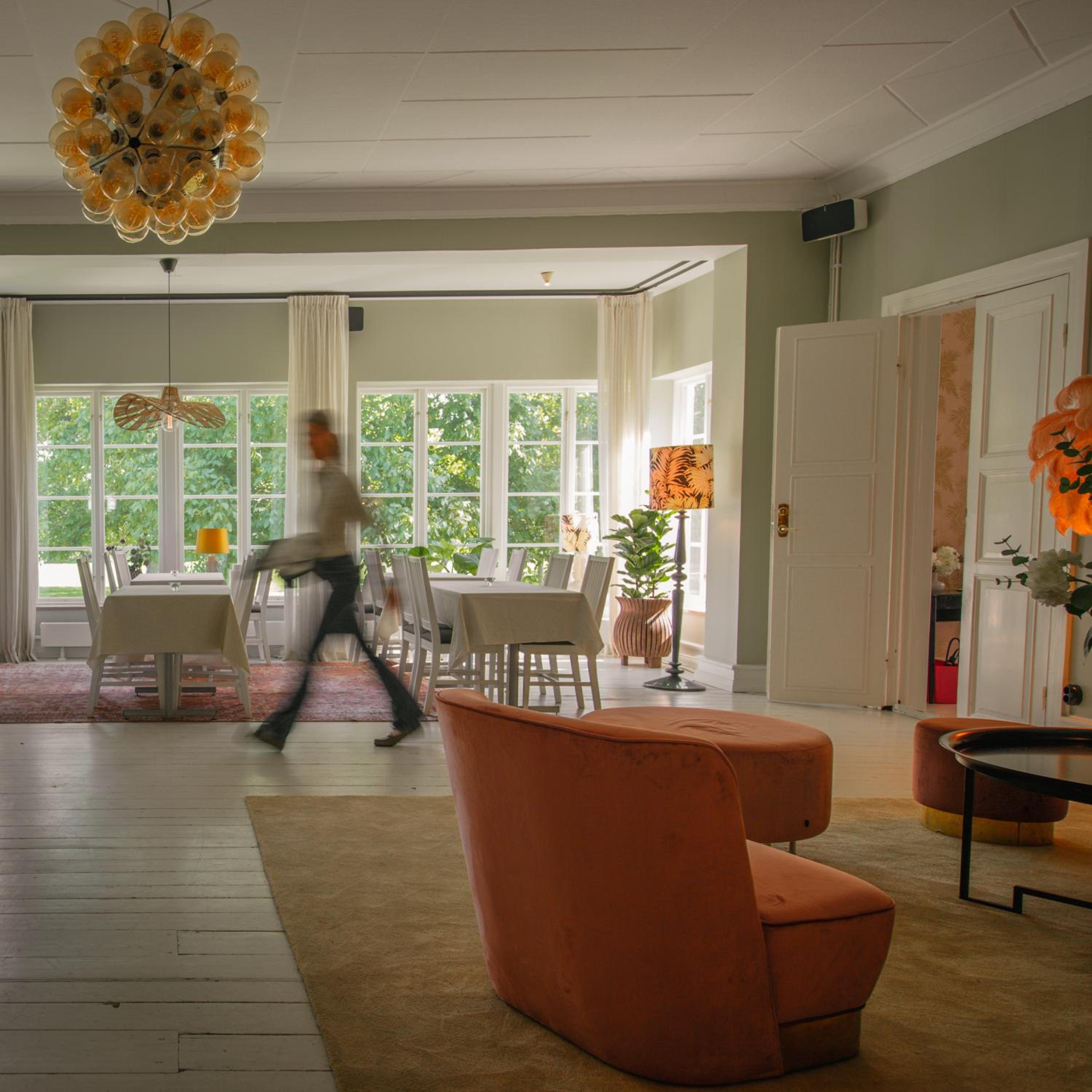Grå Gåsen offers a range of luxurious amenities for guests to enjoy, including a seasonal outdoor swimming pool, garden views, and access to a restaurant and bar.