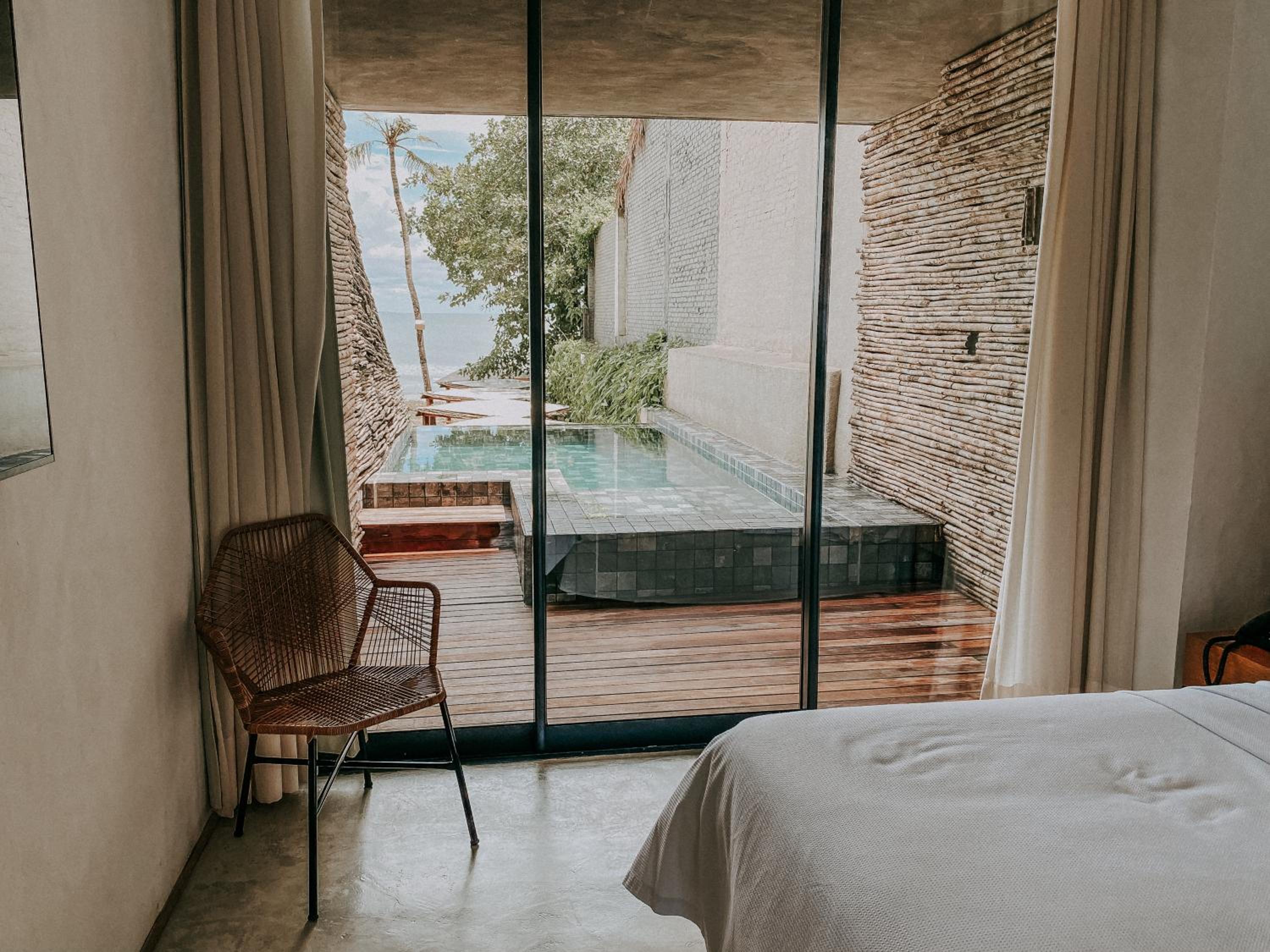 J'ai beaucoup aimé la décoration de l'hôtel, la chambre avec accès direct au jardin et piscine et le bar dans la piscine. De plus la géolocalisation avec la vue sur la plage et la mer est incroyable.