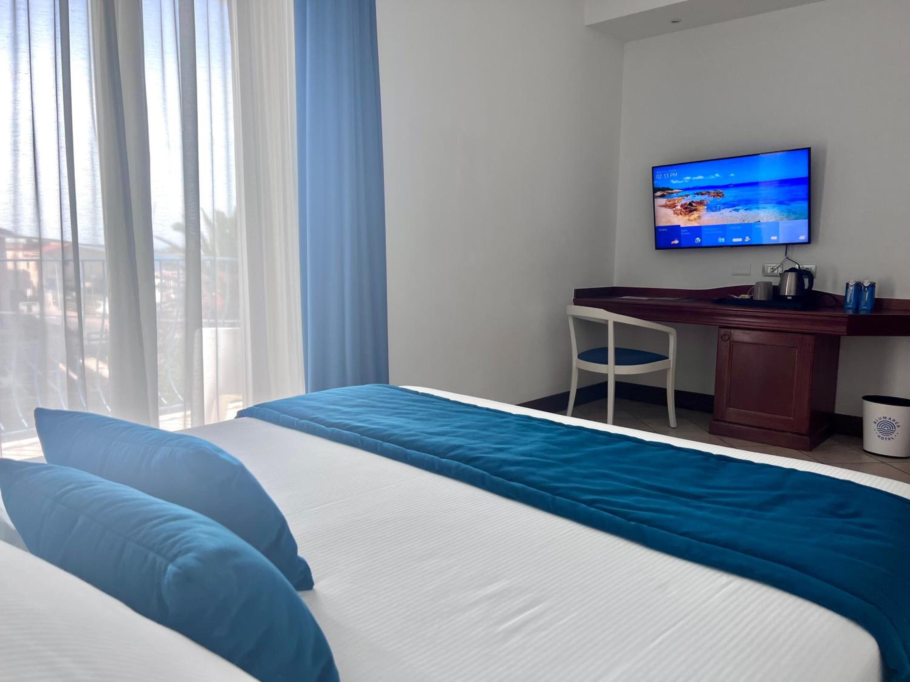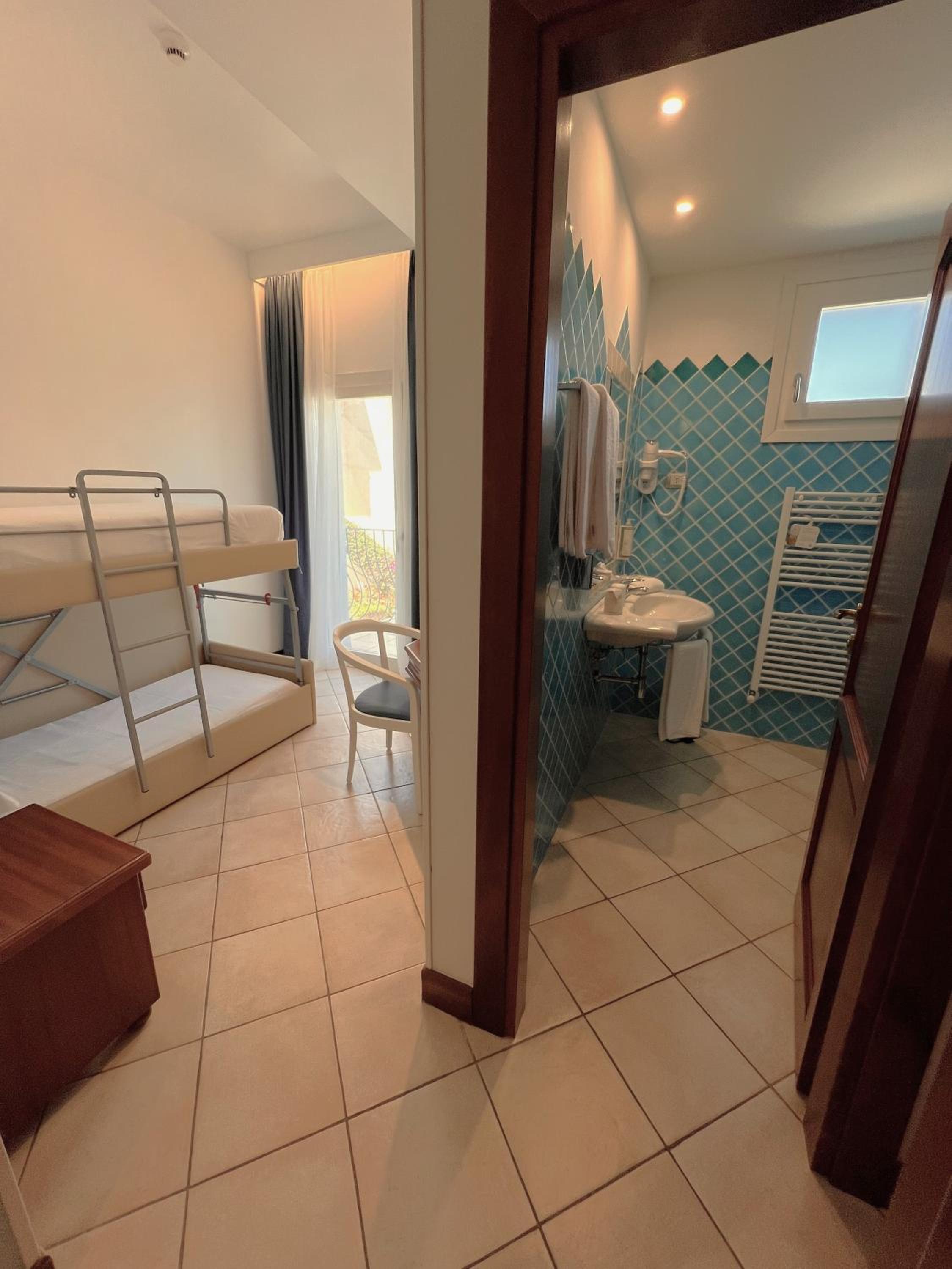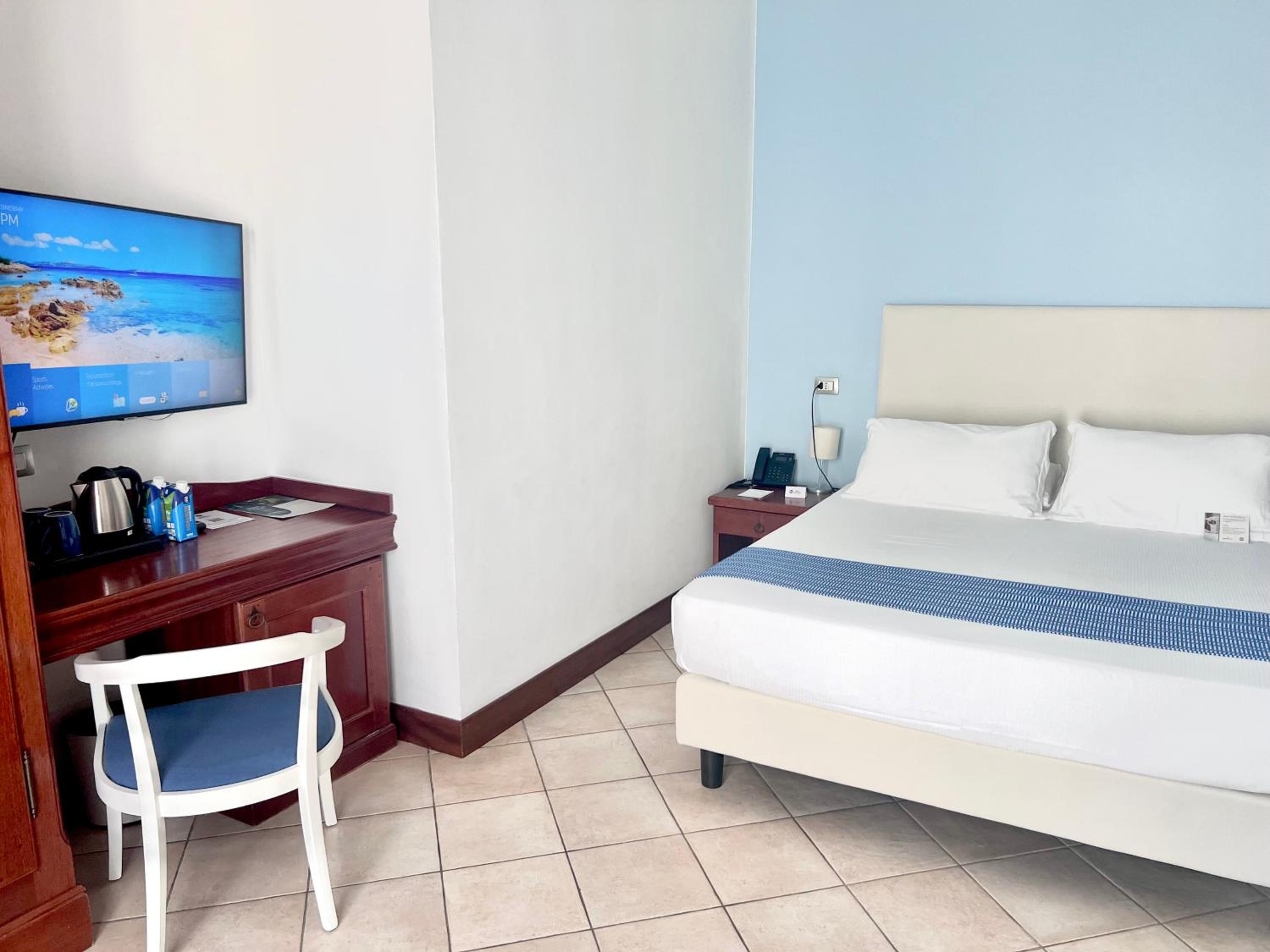 Indulge in the comfort of our air-conditioned rooms featuring satellite TV, a minibar, and a private bathroom. Upgrade to a room with a balcony for breathtaking views of the Sardinian Sea.